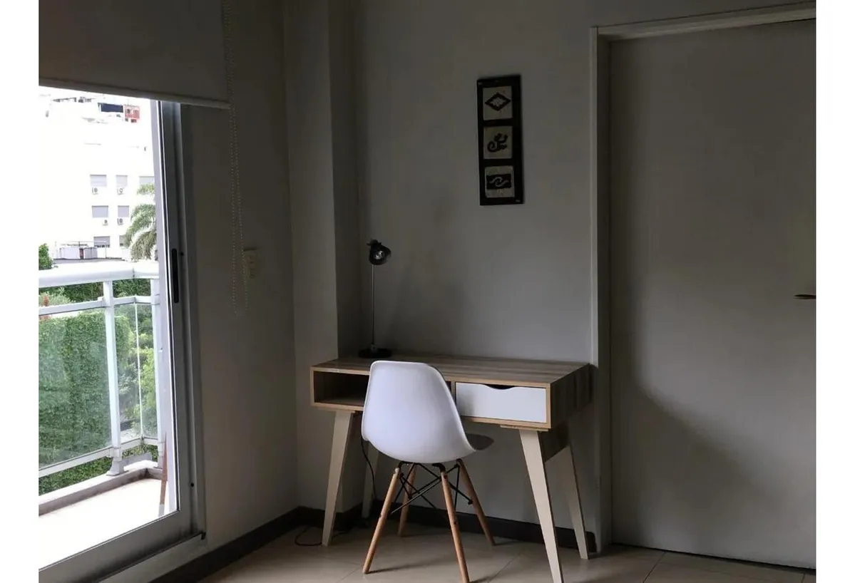 Equipped studio apartment in Núñez, available from 16 July 2026, approved for professional use for up to 2 people. Includes air conditioning (hot and cold), a 32-inch LCD TV, electric oven, and WiFi internet. Building amenities include a jacuzzi, gym, sauna, and laundry. Rent excludes building fees and utilities, with building fees of around 150,000 ARS, internet of around 40,000 ARS, and insurance of around 20,000 ARS. Children are accepted; pets are not allowed.
