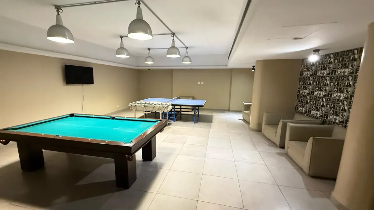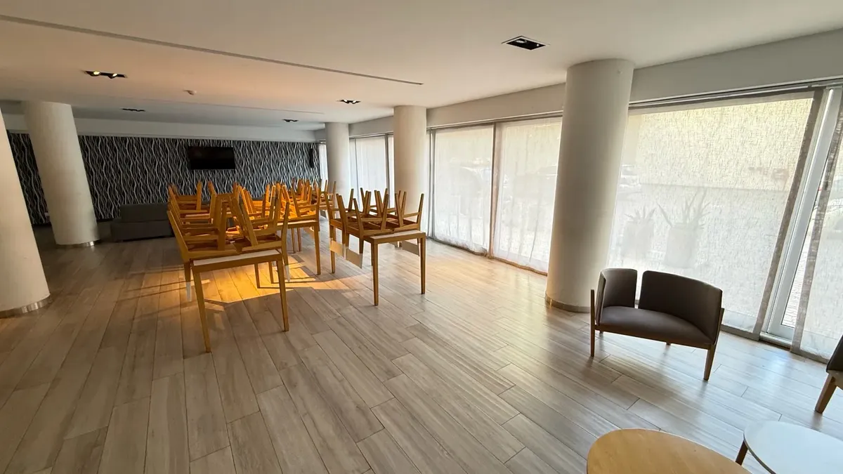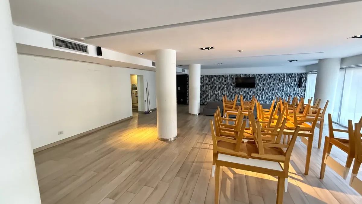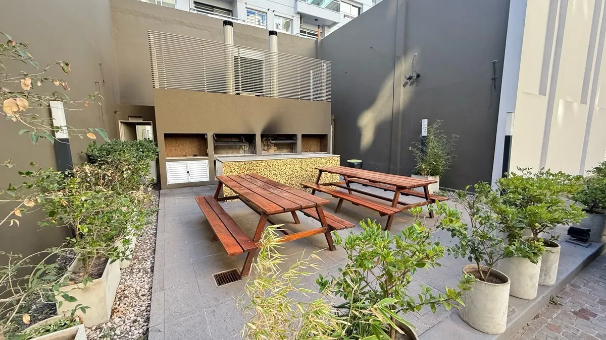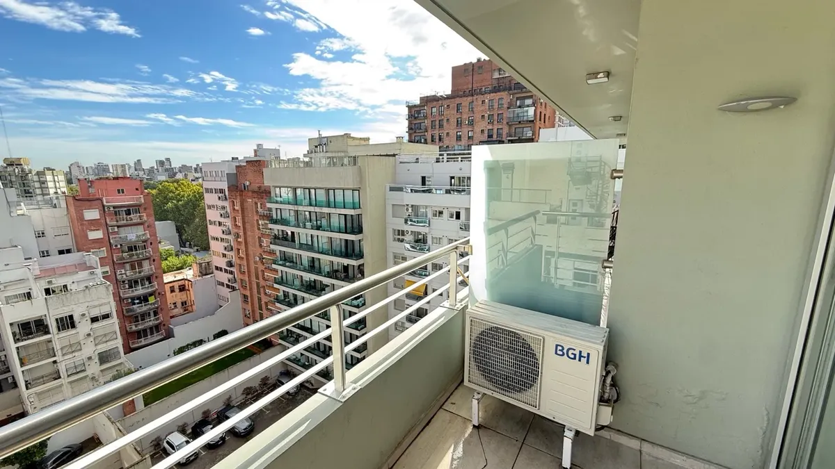 Studio apartment on the 10th floor in Núñez, courtyard-facing with an open view over the interior block courtyard. Includes a full bathroom and an integrated kitchen. Furnished with installed lights and a mirrored divider wardrobe; additional reception closet. Building has 24-hour security and residents’ amenities including a large communal room (SUM), games room, indoor-outdoor pool, wet and dry sauna, gym, and changing rooms. Building fees are ARS 284,000 per month and ABL is ARS 35,000; the u