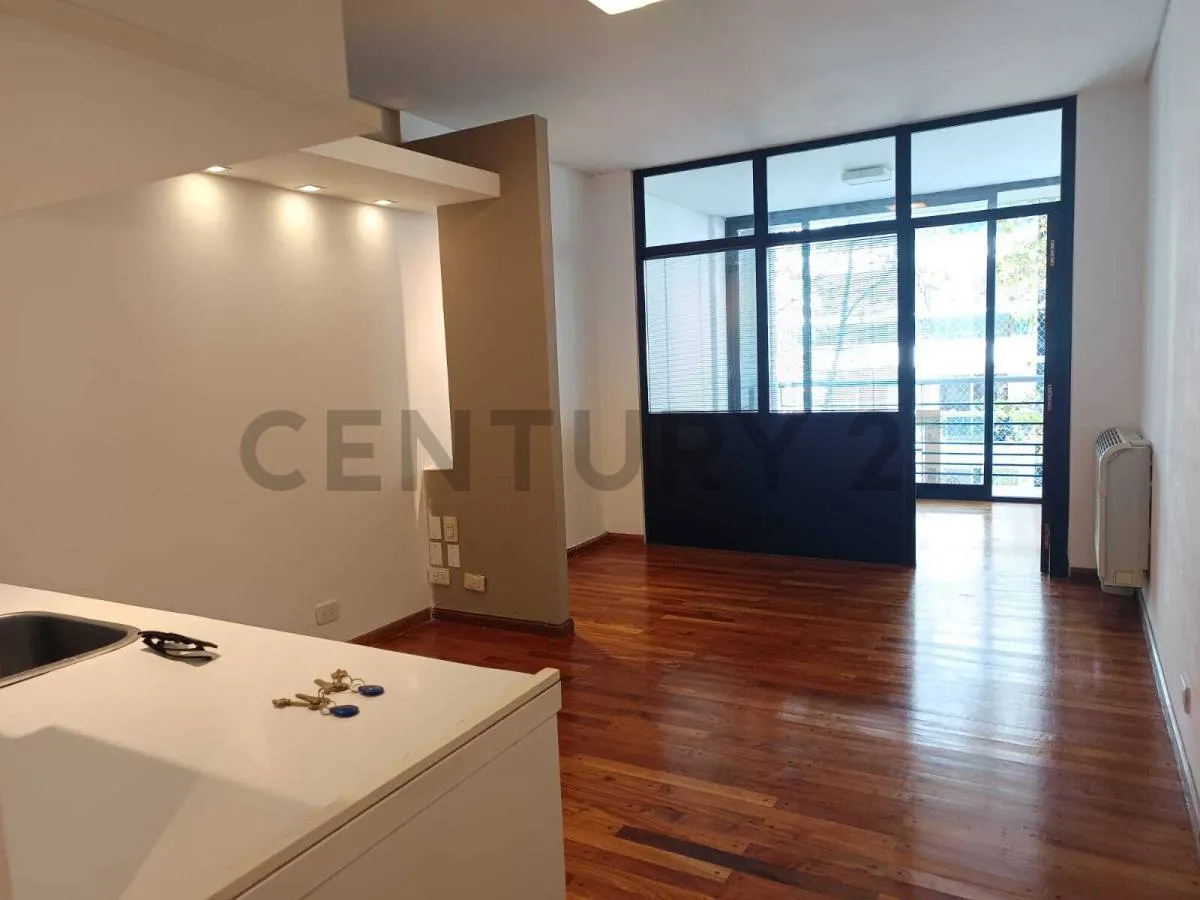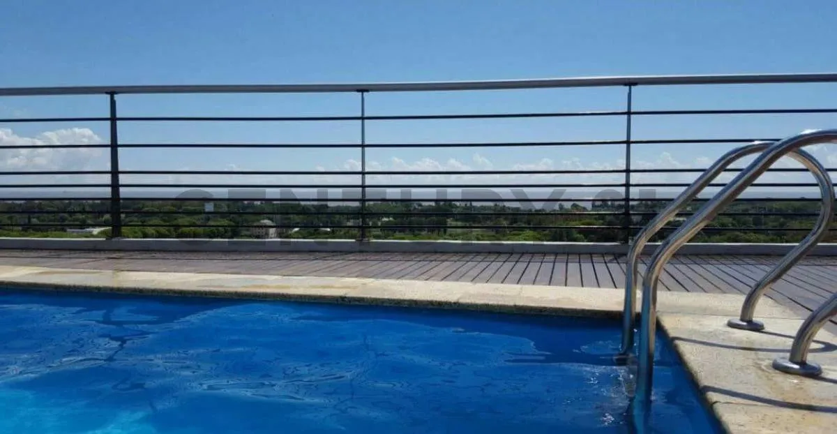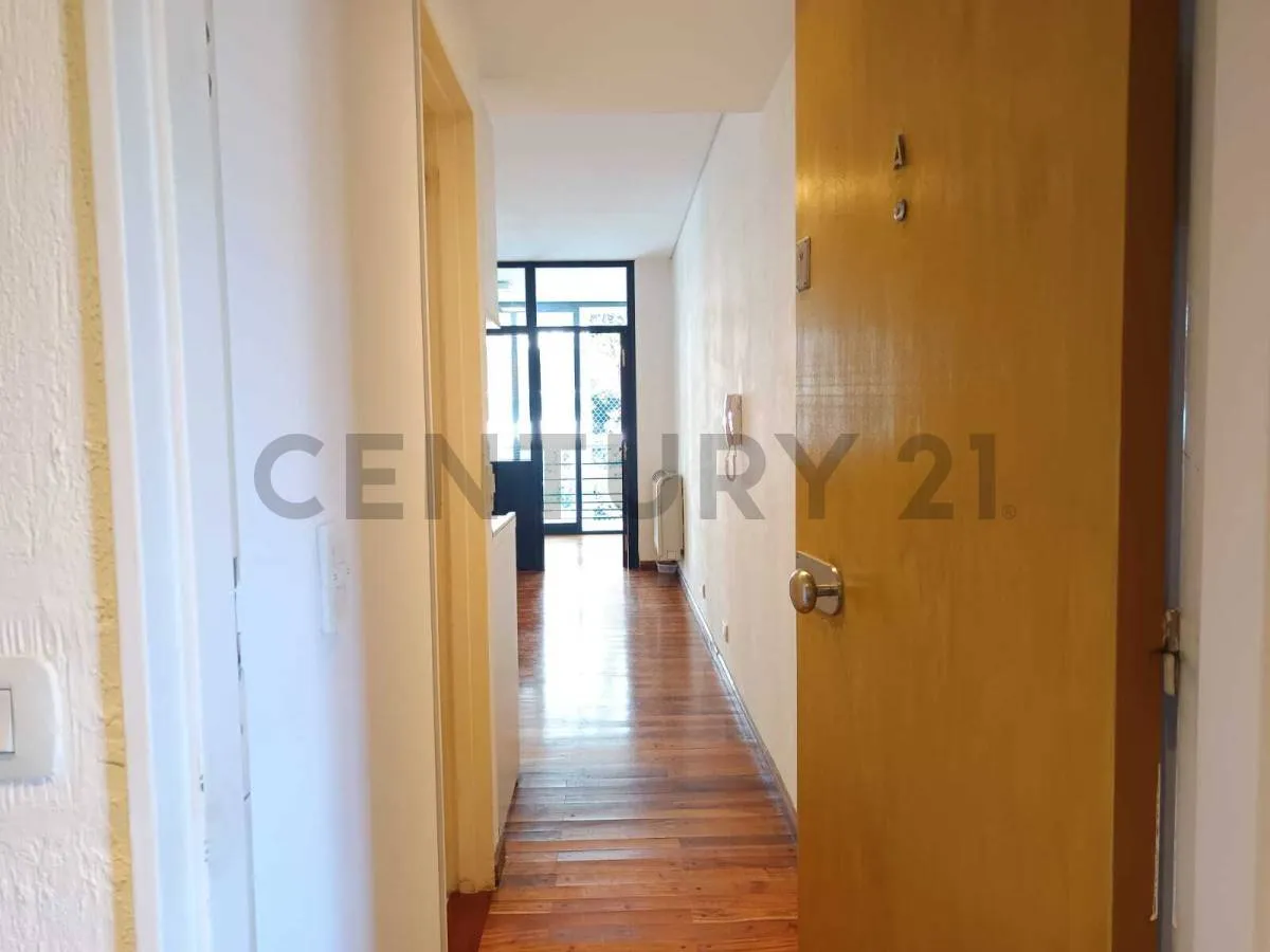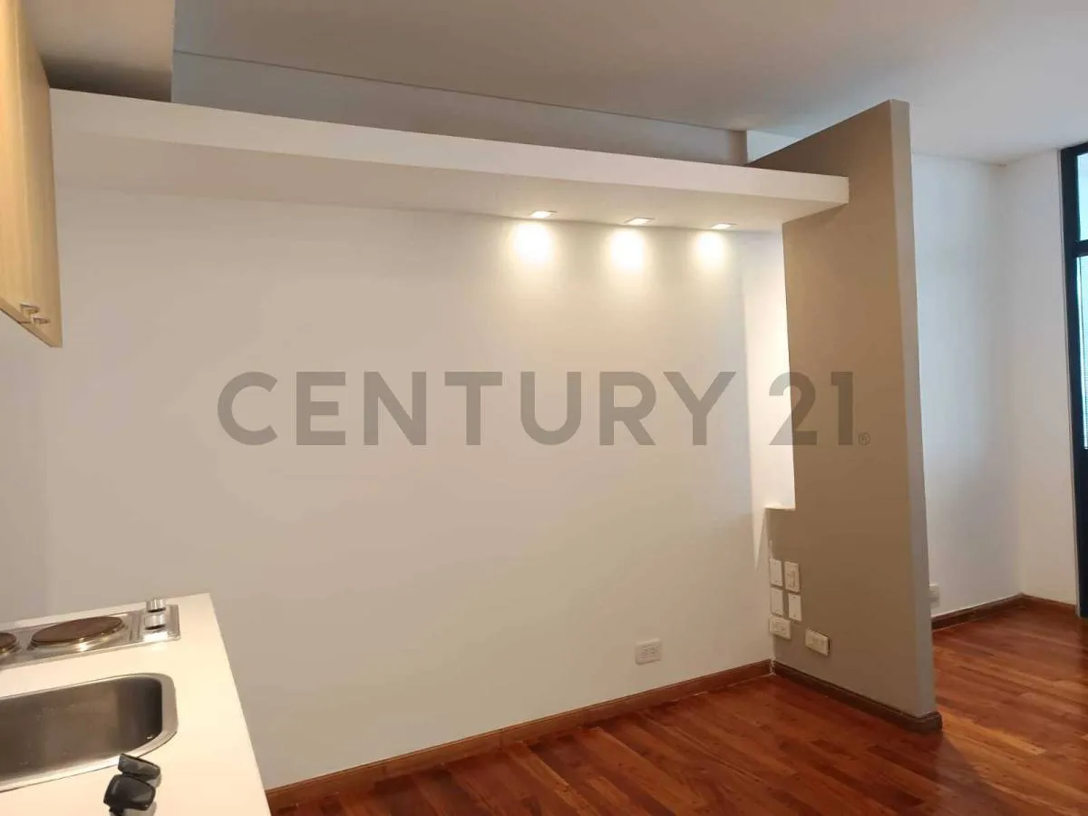 Studio apartment of 44 m² on the 4th floor in Núñez. The unit has a private balcony and a full bathroom, as well as two electric hot plates and space for a refrigerator and a washing machine. The kitchen includes upper and lower cabinets; the bedroom area has room for a double bed or two single beds. The building has a caretaker, building fees are low, and includes a pool.