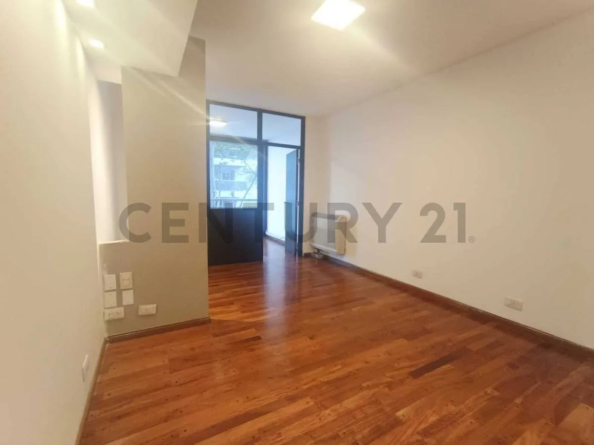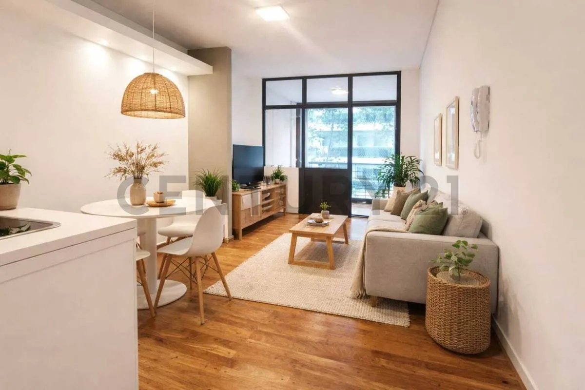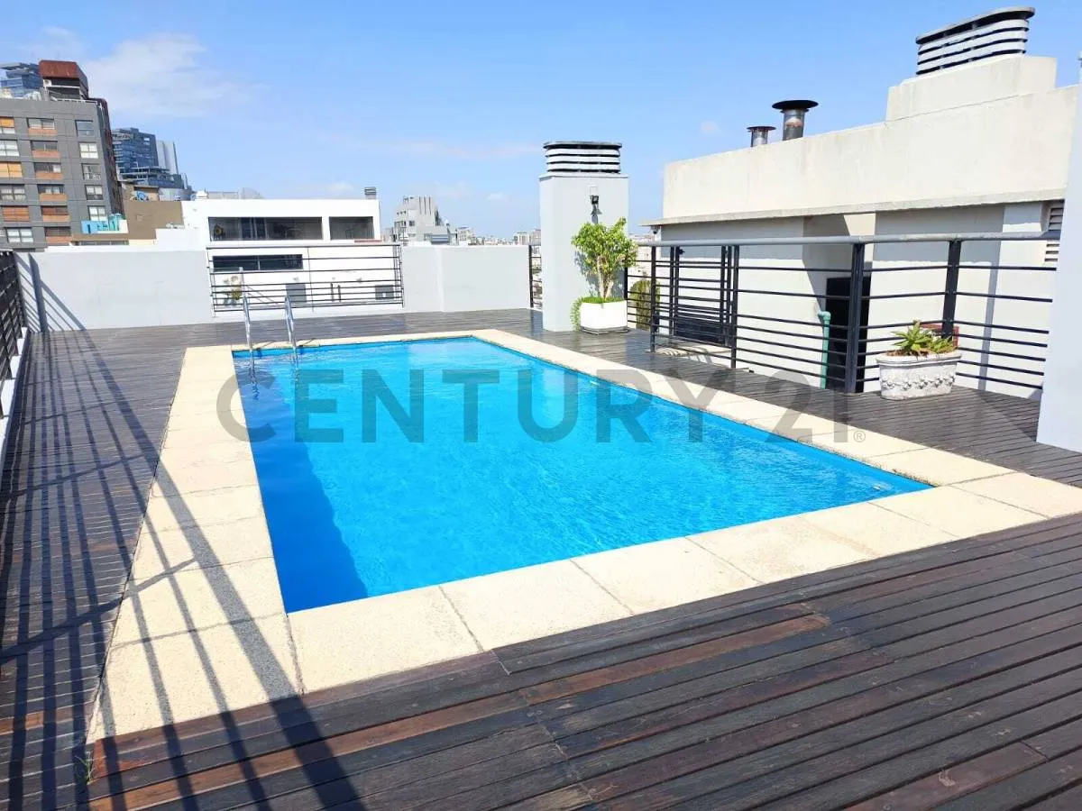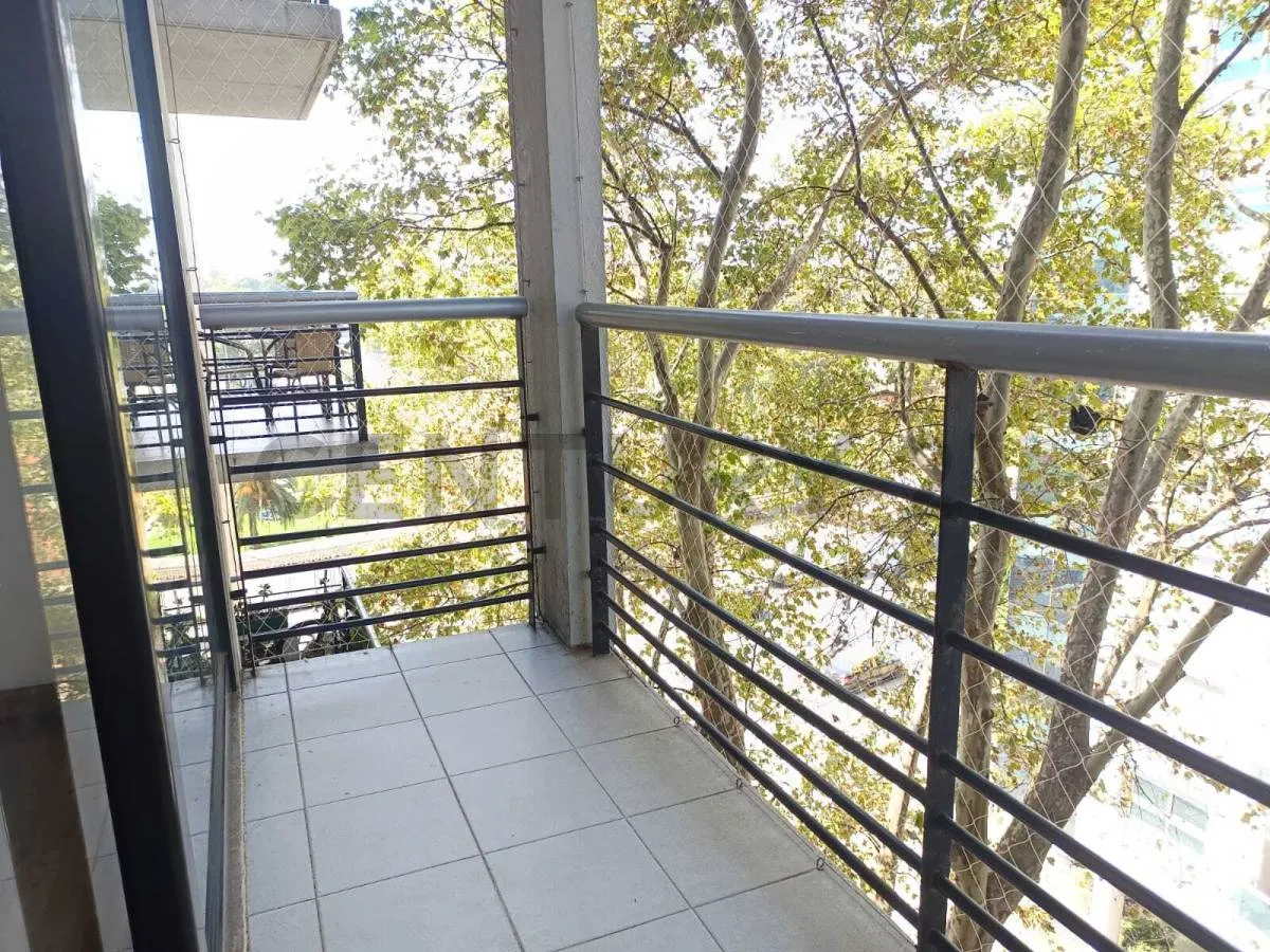 Studio apartment of 44 m² on the 4th floor in Núñez. The unit has a private balcony and a full bathroom, as well as two electric hot plates and space for a refrigerator and a washing machine. The kitchen includes upper and lower cabinets; the bedroom area has room for a double bed or two single beds. The building has a caretaker, building fees are low, and includes a pool.