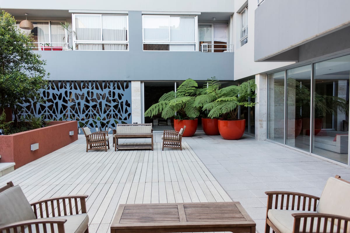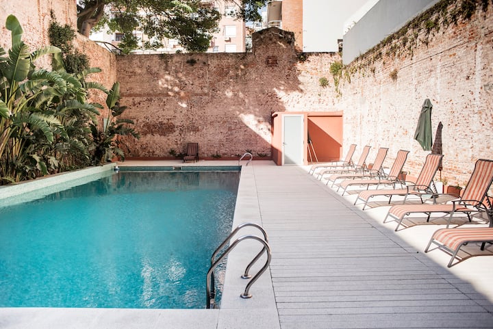 Studio apartment in Núñez. The unit has an integrated kitchen. The building offers private parking, 24-hour security, a sauna and a pool, and free Wi-Fi throughout the property.