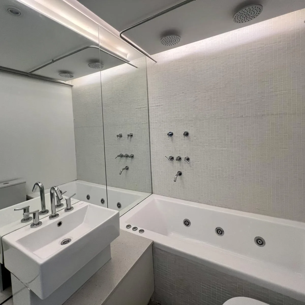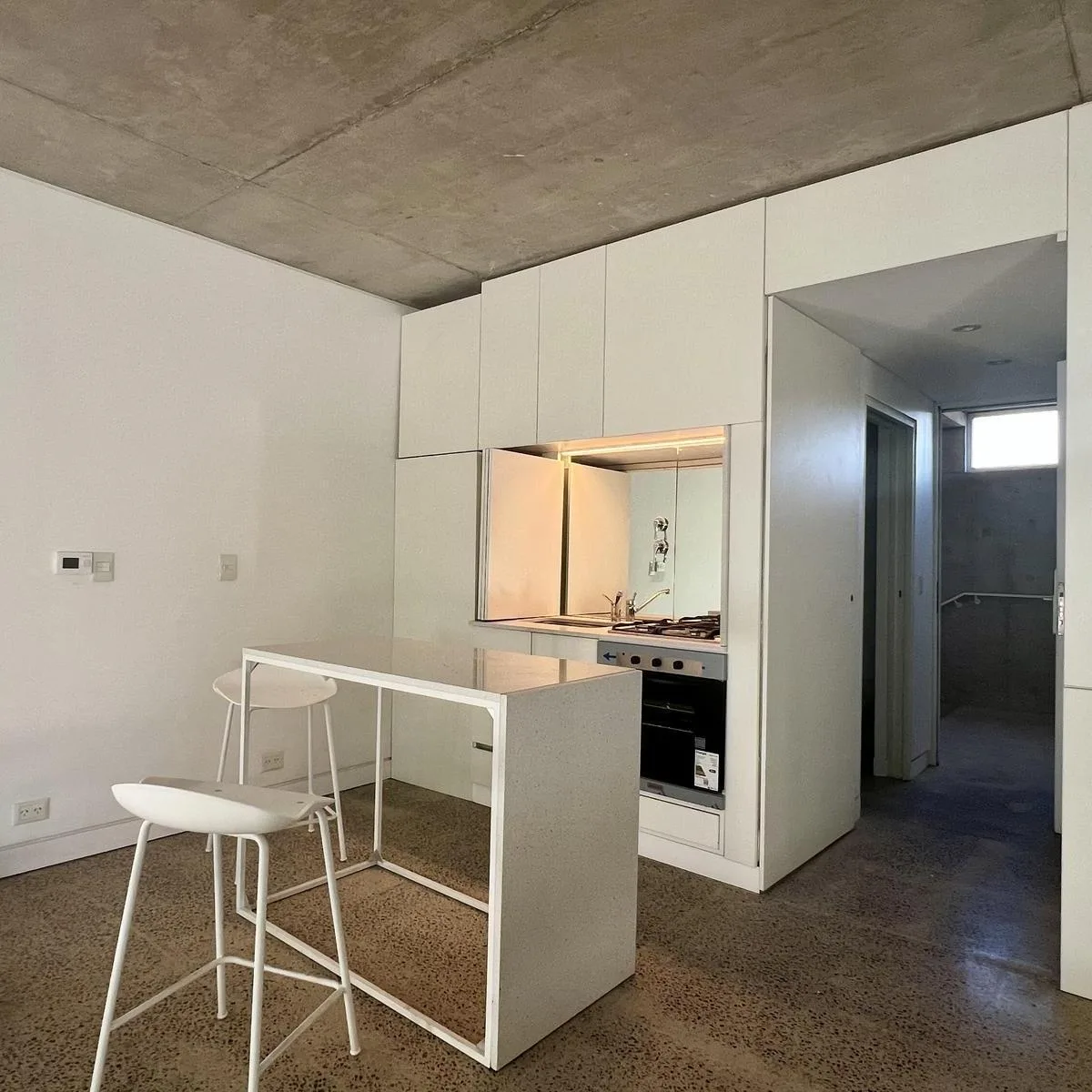 New studio apartment for rent in Núñez, 42 m² on the 3rd floor. Includes a modern bathroom with bathtub and dual shower, an open-plan kitchen with breakfast bar, and a 6 m² terrace balcony with a green floor planted with native species. The unit has radiant floor heating, dual-gas boiler for hot water and heating, double-glazed aluminium windows, a built-in gas oven and 4-burner cooktop, kitchen extraction hood, electronic lock, jacuzzi and a double shower with separate controls, and pre-install