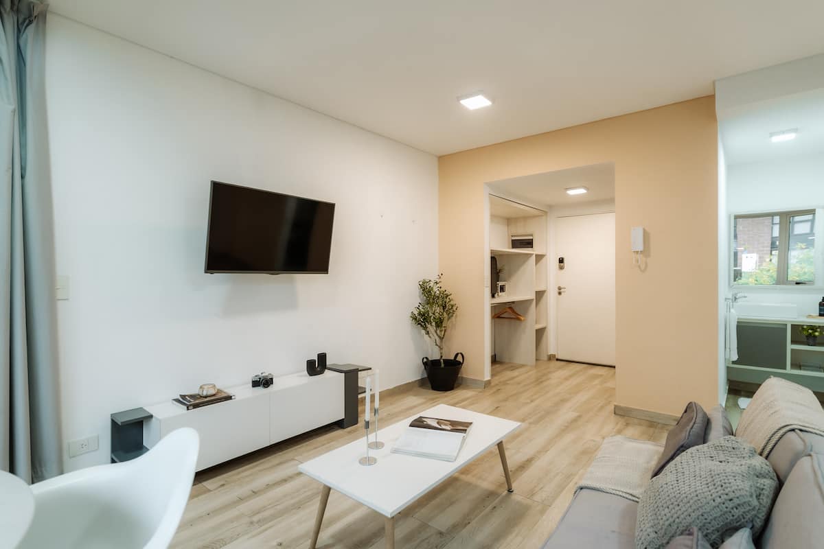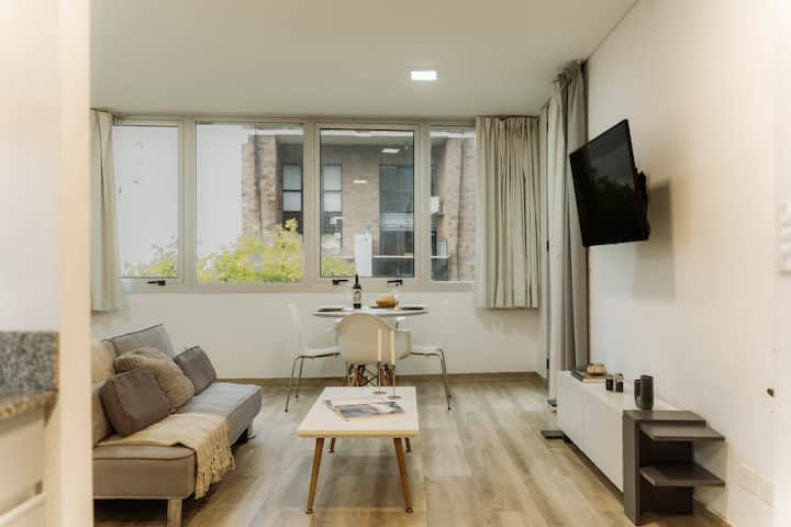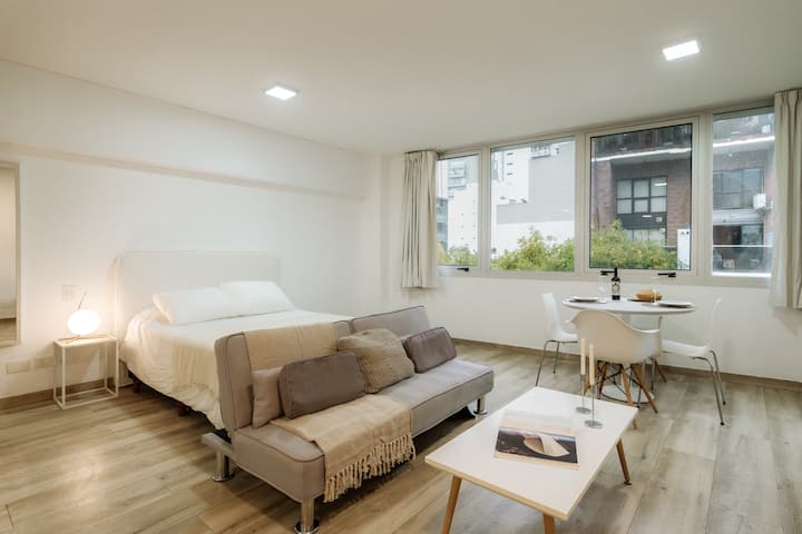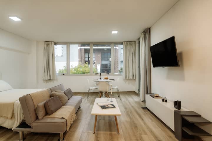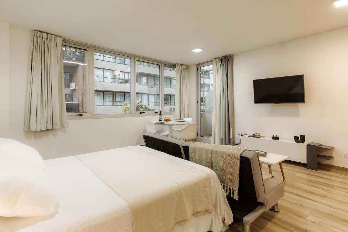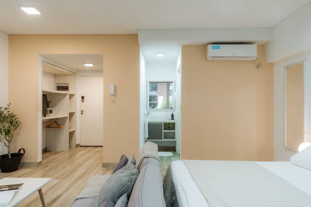 Studio apartment in Núñez. Located in a residential area and described as bright, with a functional layout. The listing states it is a few minutes from Estadio River Plate, nearby parks and the riverfront, with easy access to public transport.