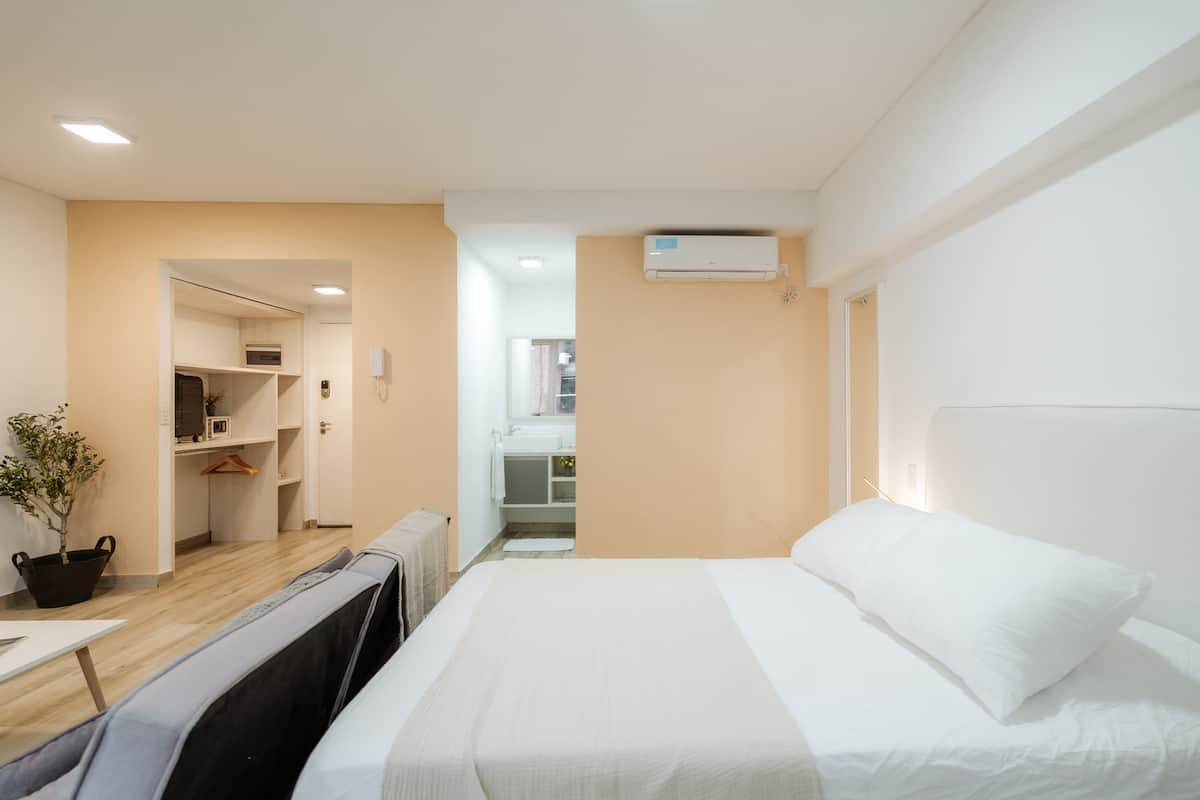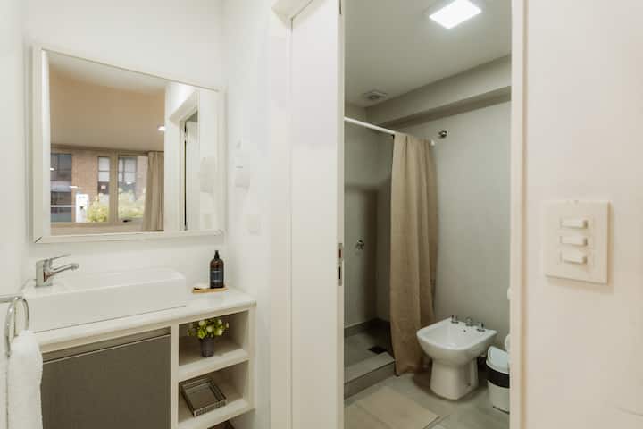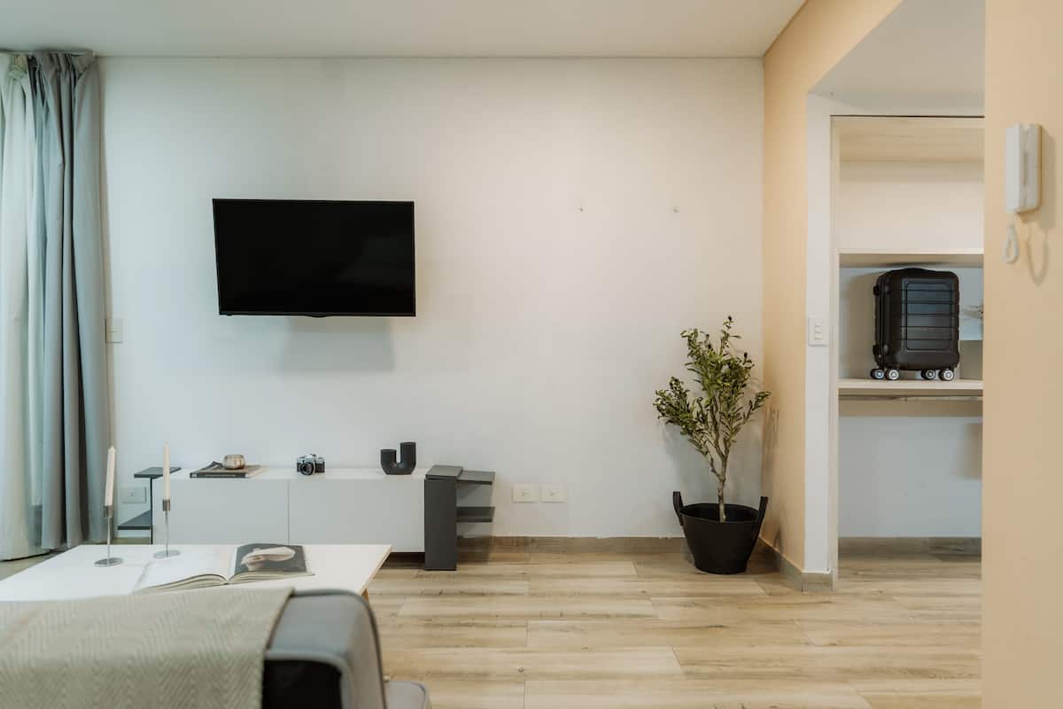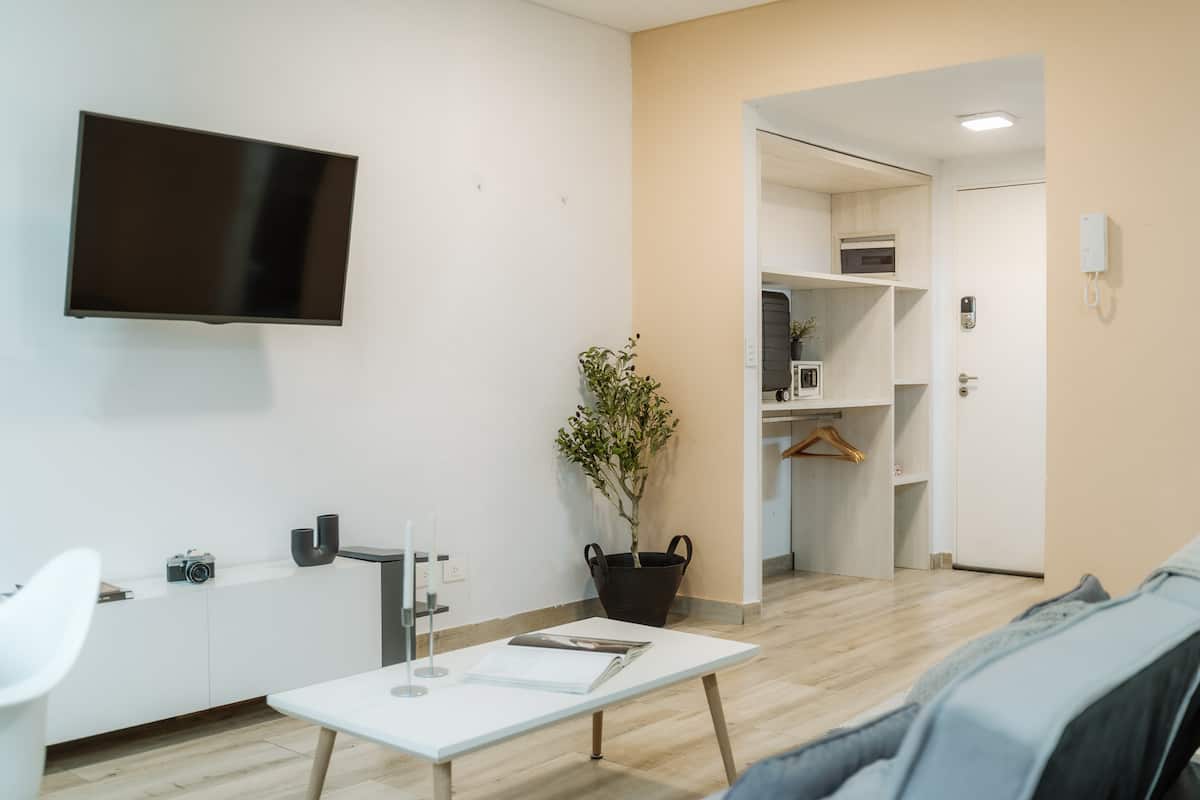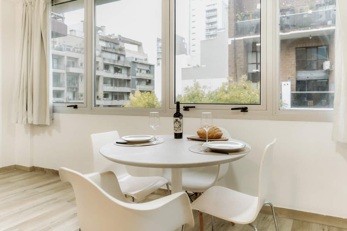 Studio apartment in Núñez. Located in a residential area and described as bright, with a functional layout. The listing states it is a few minutes from Estadio River Plate, nearby parks and the riverfront, with easy access to public transport.