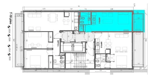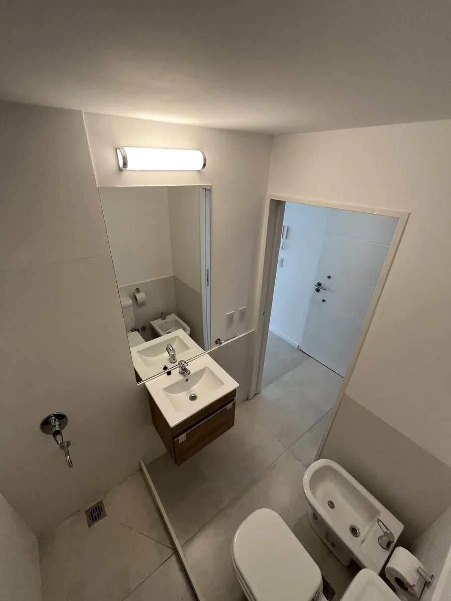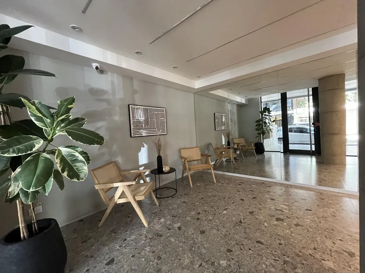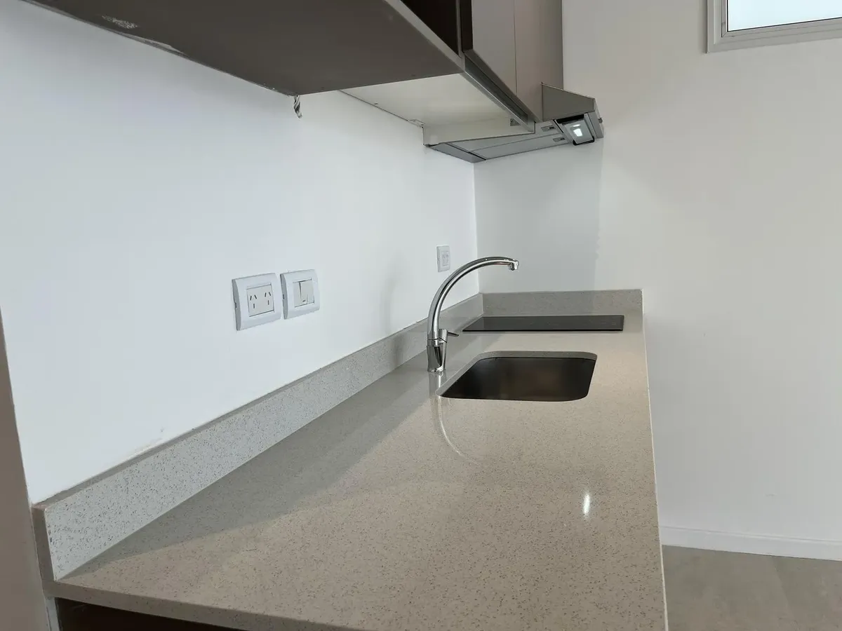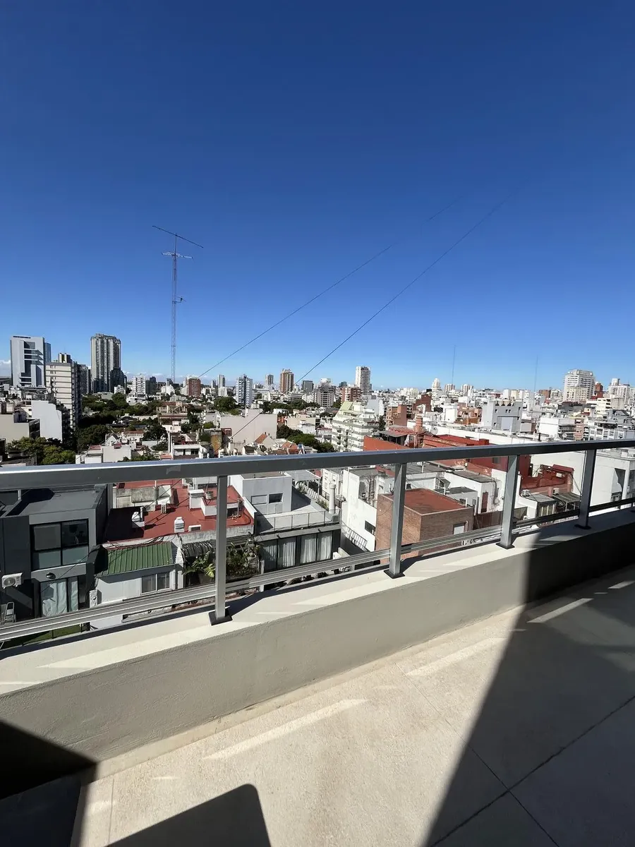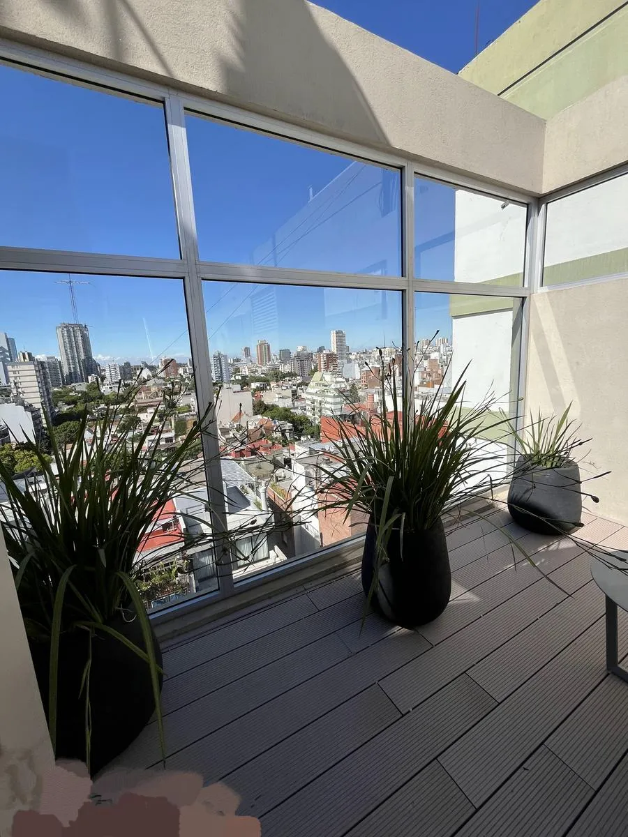 Studio apartment for rent in Núñez, at Av. Cabildo and close to the head of Línea D of the Buenos Aires Underground. The unit has reverse-cycle air conditioning (cold/hot), full-height closet, and double-glazed windows (DVH), with finishes described as ready to move in. The building has a roof terrace with a grill, laundry facilities, solarium, a pool, plus a bicycle storage area and a storage room (baulera). Building fees, taxes and utilities are approximate.