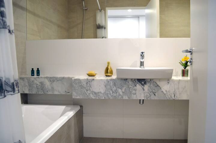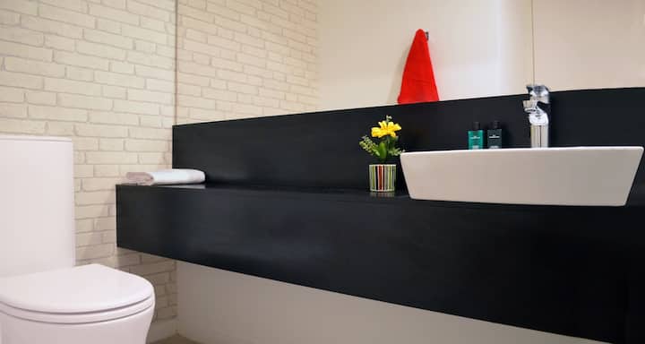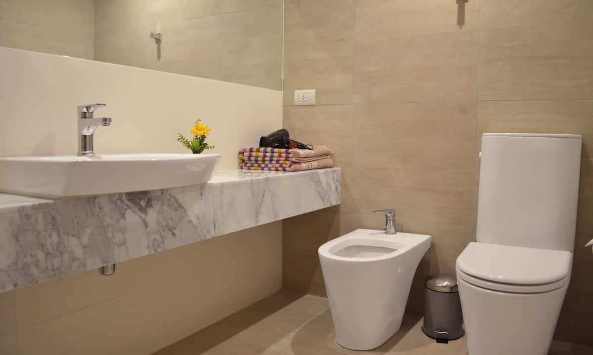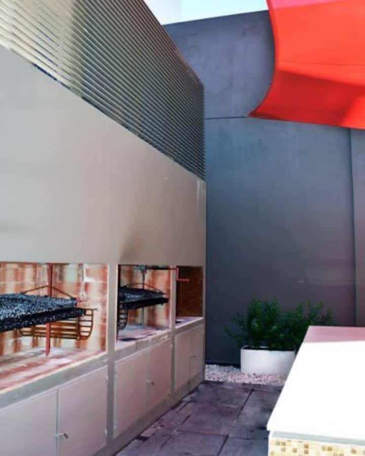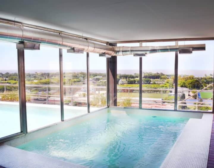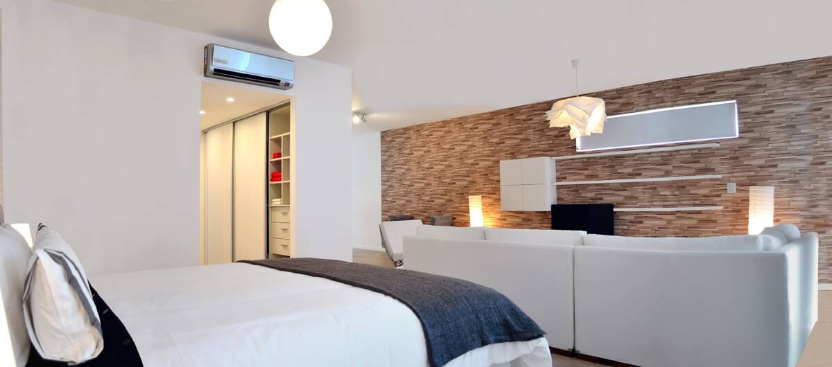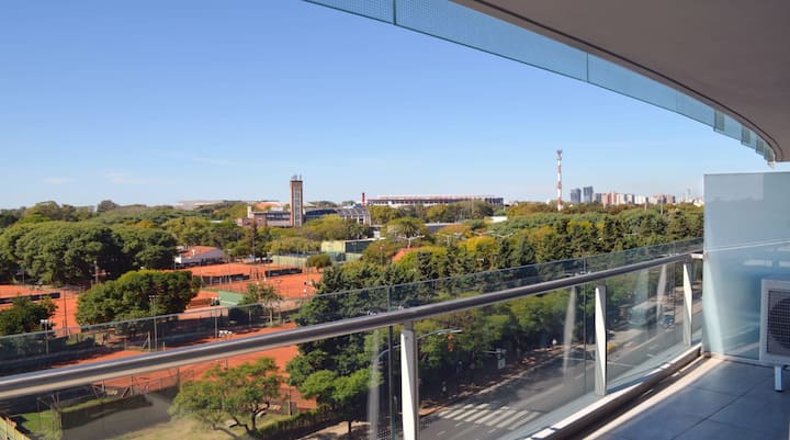 Studio apartment of 89 m² in a newly built building designed by local architect Sergio Smolkin. Open-plan unit with large windows, a balcony, a fully equipped kitchen with a marble countertop, and a king-size bed. The building has two rooftop pools, a gym, laundry facilities, and a BBQ grill.