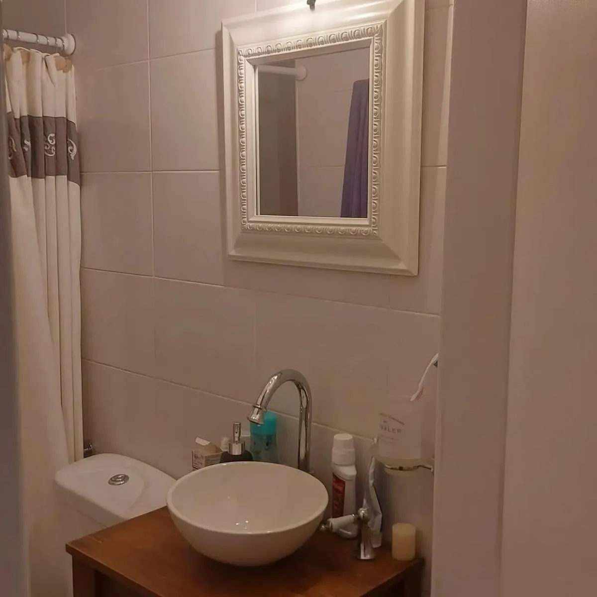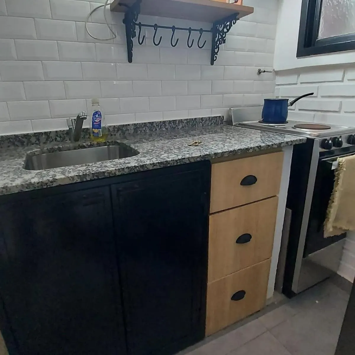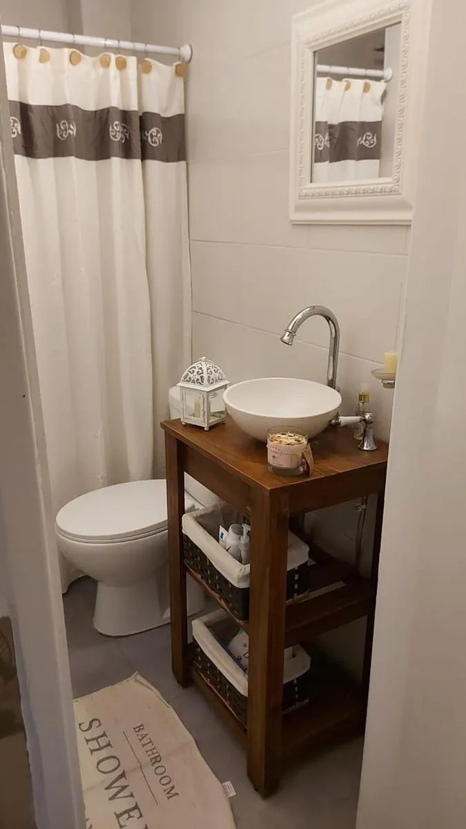 Furnished studio apartment in Olivos, delivered furnished with the items shown in the photographs. The unit has a double bed, full wardrobe, curtains, a dining set with table and chairs, air conditioning, a refrigerator and an electric kitchen. No building fees (sin expensas). Located one block from Av. Libertador, about 5 blocks from the Olivos port and the waterfront promenade, and about 3 blocks from the Olivos train station.