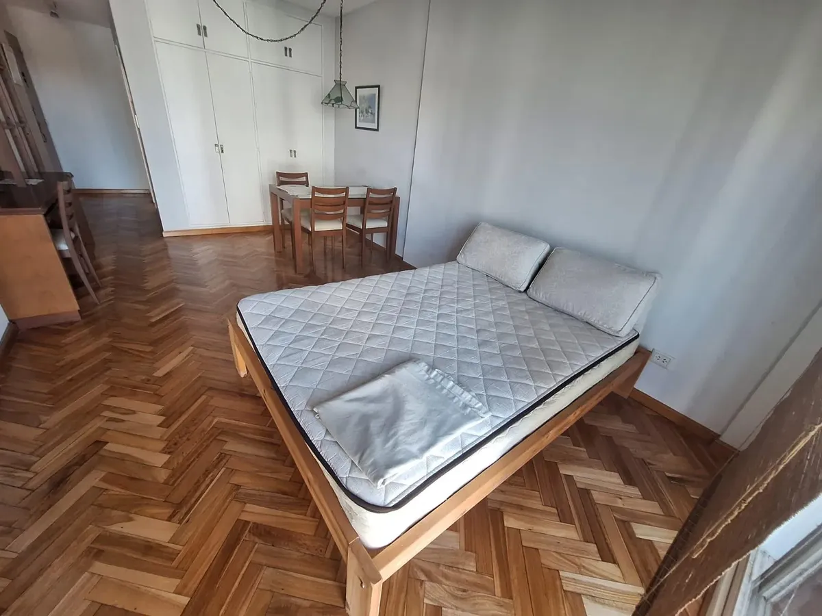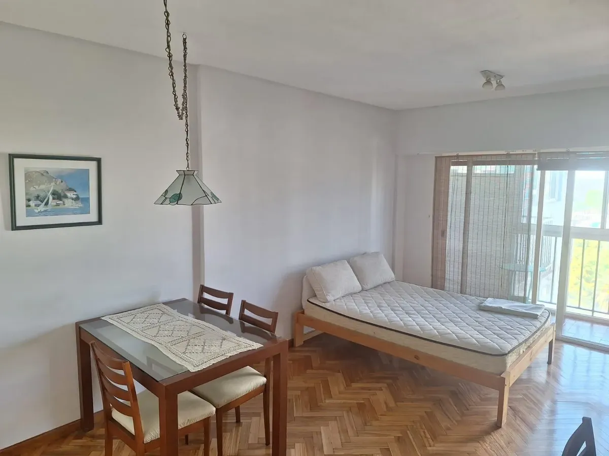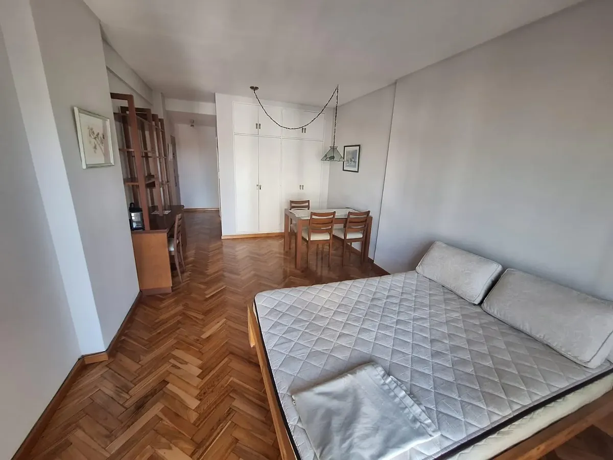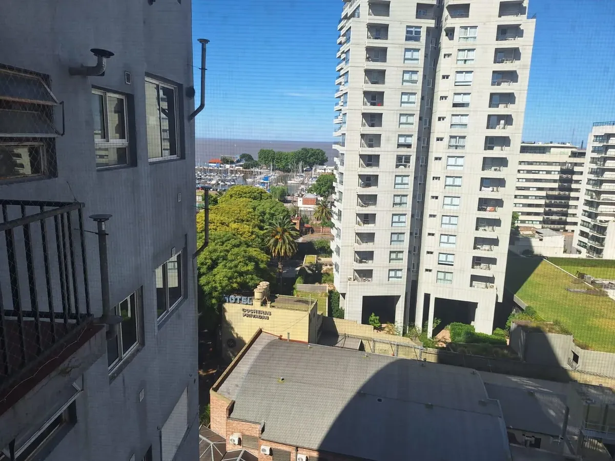 Studio apartment in Olivos with views of the port. Courtyard-facing (contrafrente), with a separate kitchen and a built-in closet. The building is about 30 years old and has utilities including running water, drainage (cloacas) and electricity. Monthly building fees (expensas) are approximately $150,000.