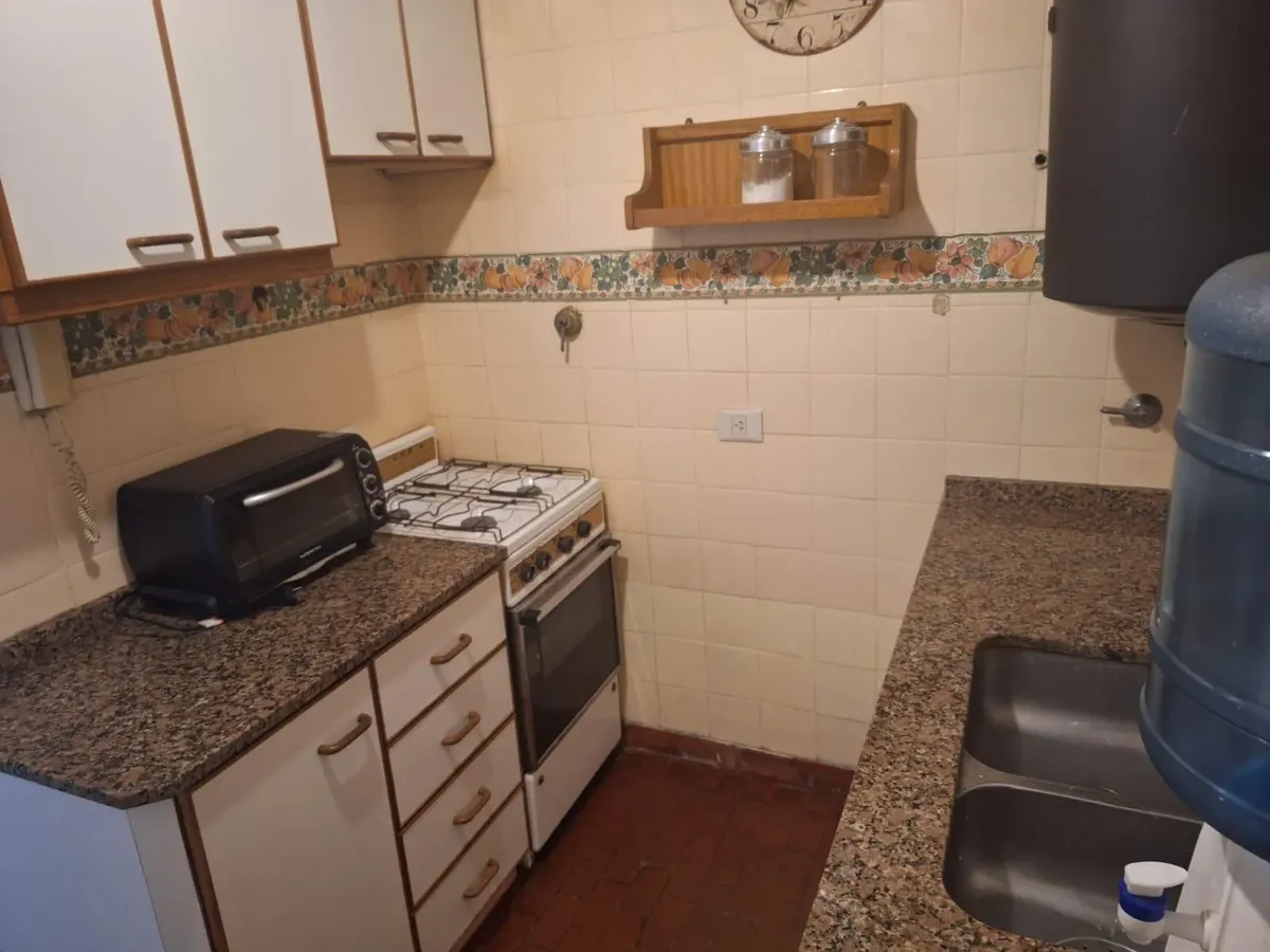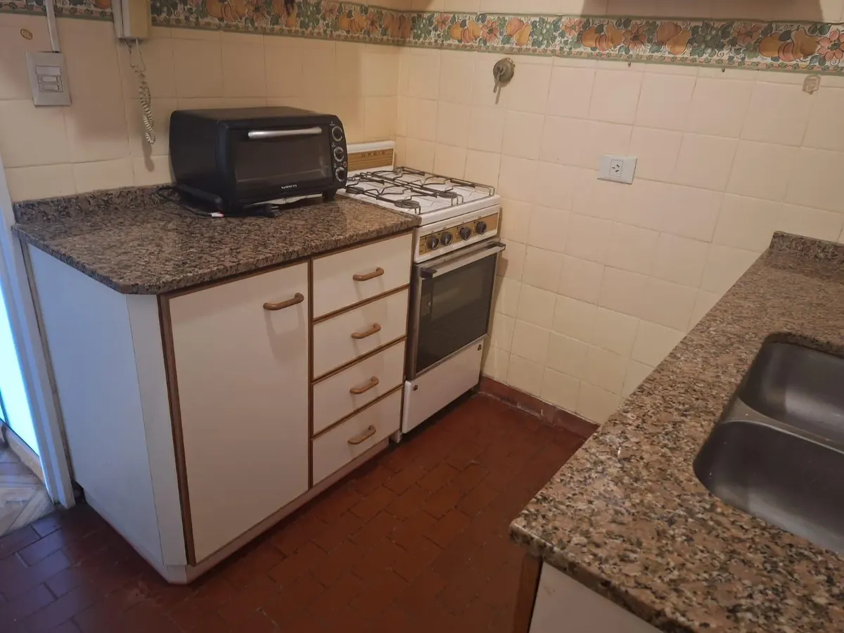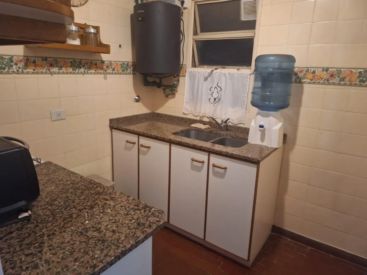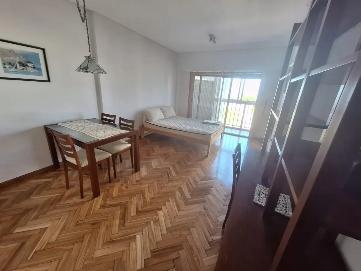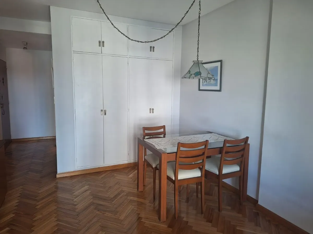 Studio apartment in Olivos with views of the port. Courtyard-facing (contrafrente), with a separate kitchen and a built-in closet. The building is about 30 years old and has utilities including running water, drainage (cloacas) and electricity. Monthly building fees (expensas) are approximately $150,000.