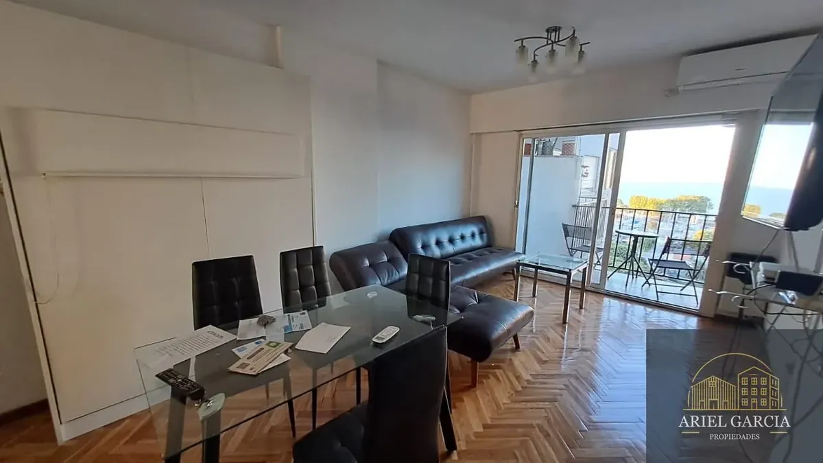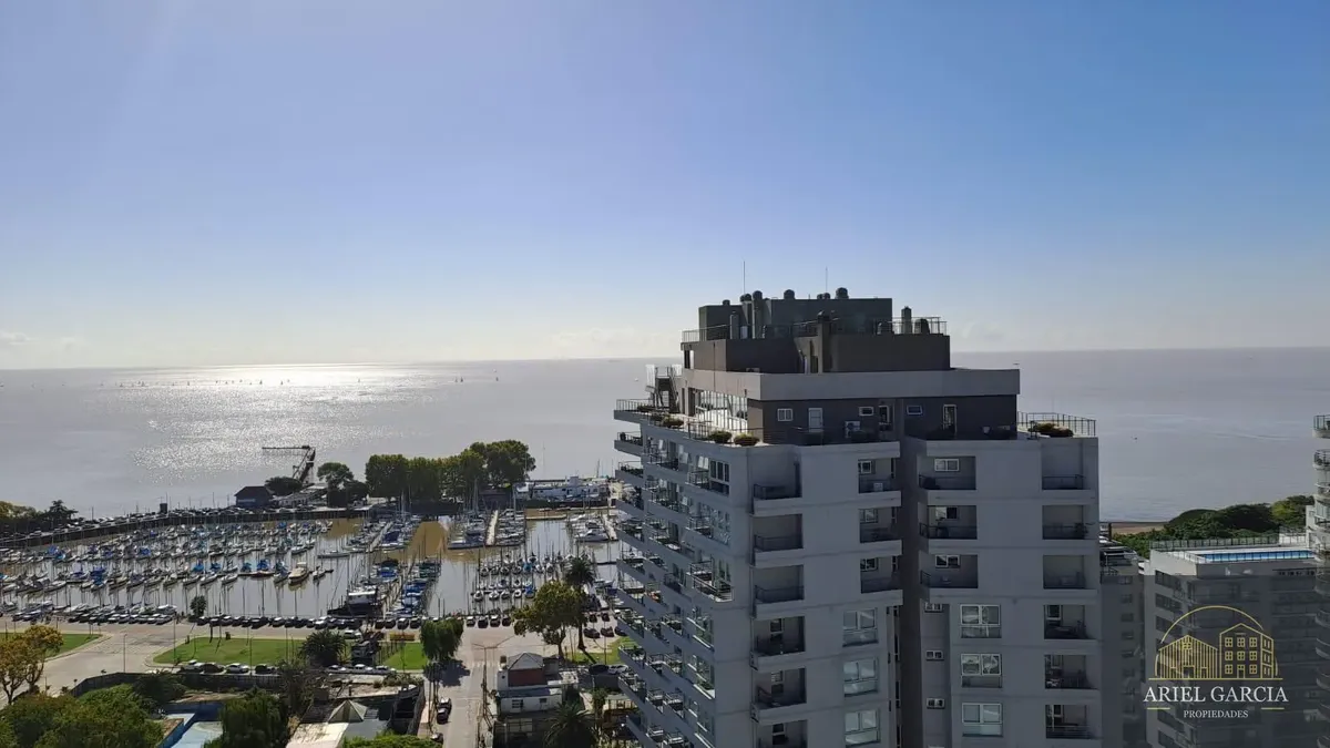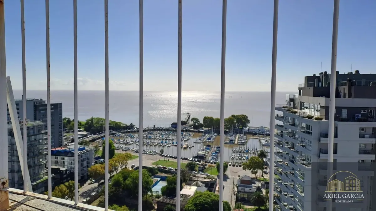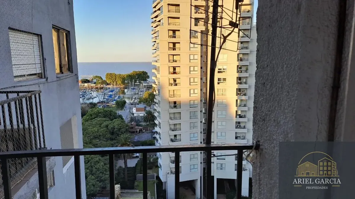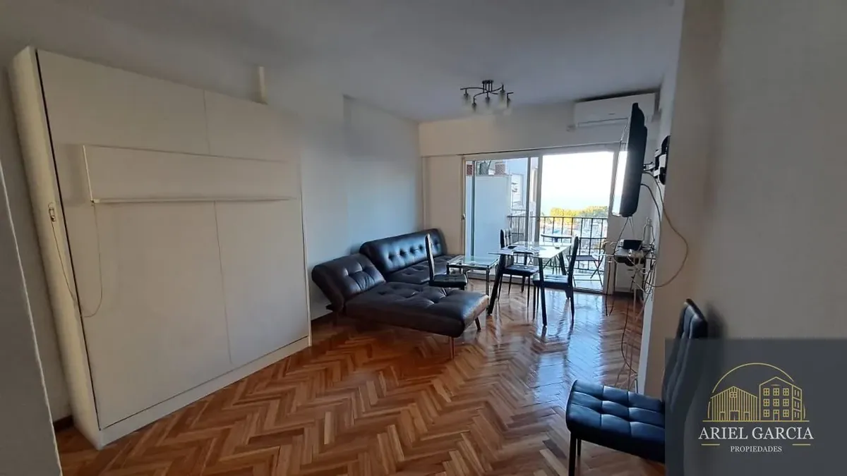 Studio apartment with a river view in Olivos, Buenos Aires. Includes a fold-down bed and a full bathroom. Features 24-hour building security and a lift, and it allows pets.
