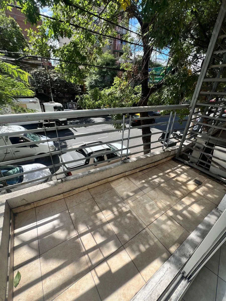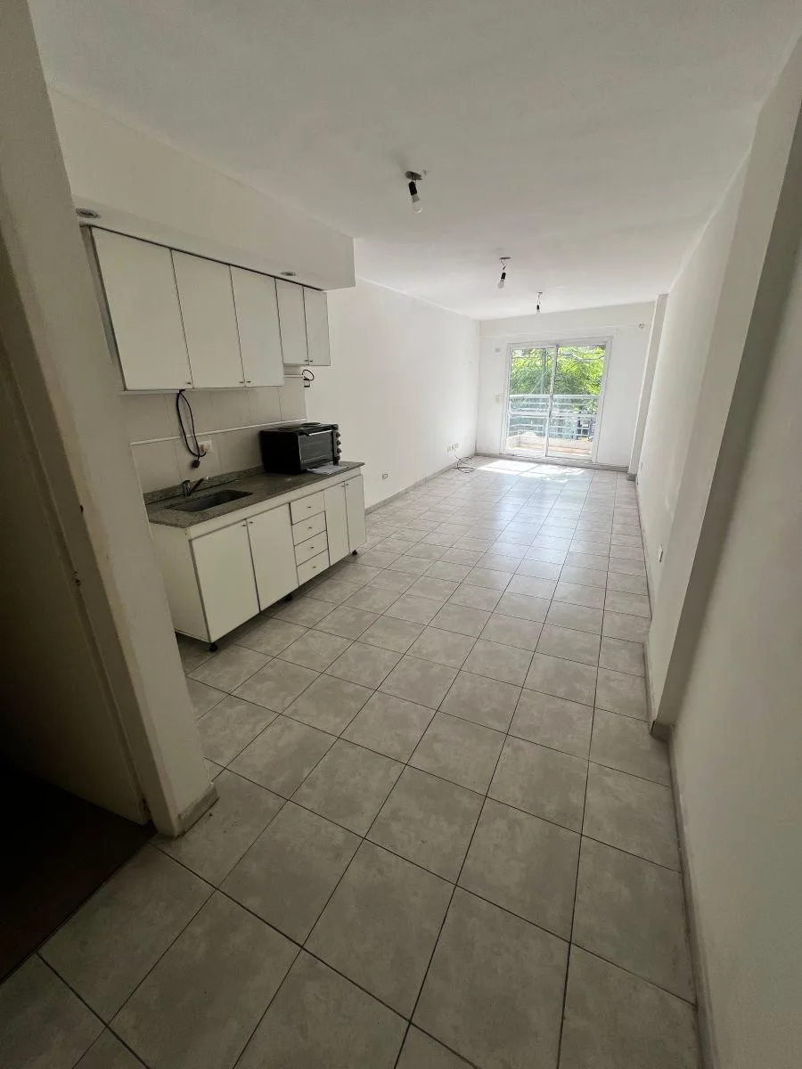 Studio apartment in Caballito, 386 Directorio. Close to Parque Chacabuco, about 200 metres from Av. Pedro Goyena and its dining area. The unit includes a bathroom, a kitchenette with storage capacity and a tiled terrace balcony. Subte Line E access is indicated. Rental term is 24 months with quarterly rent adjustments by IPC. Suitable for 1 person and pets (cats). Rental guarantee bond required (Finaer, Premium, Respaldar or property guarantee in CABA) and proof of income such as a payslip.