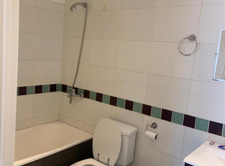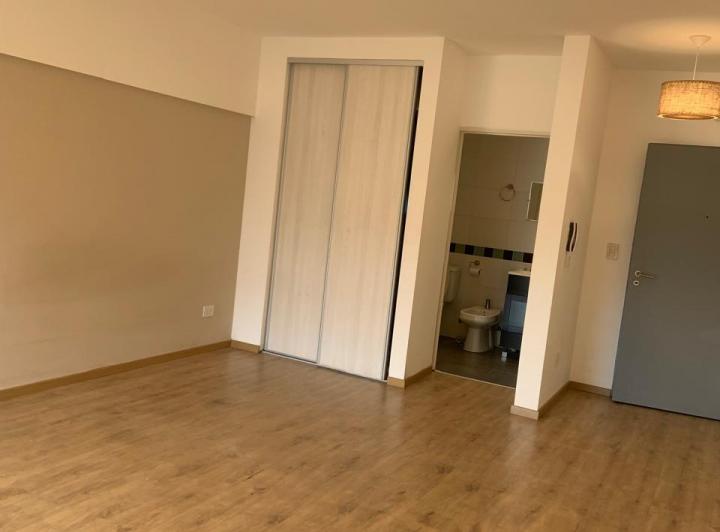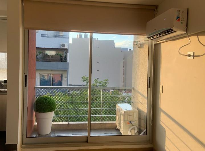 Studio apartment with a street-facing balcony. Kitchen is separate and has a window; there is built-in closet storage, electric cooktop, and central hot and cold water. Other features include air conditioning, parquet flooring, and electric heating via the central water system. The building is owned directly by the proprietor, one block from the Subte and the shopping area, and near Hospital Tornú.