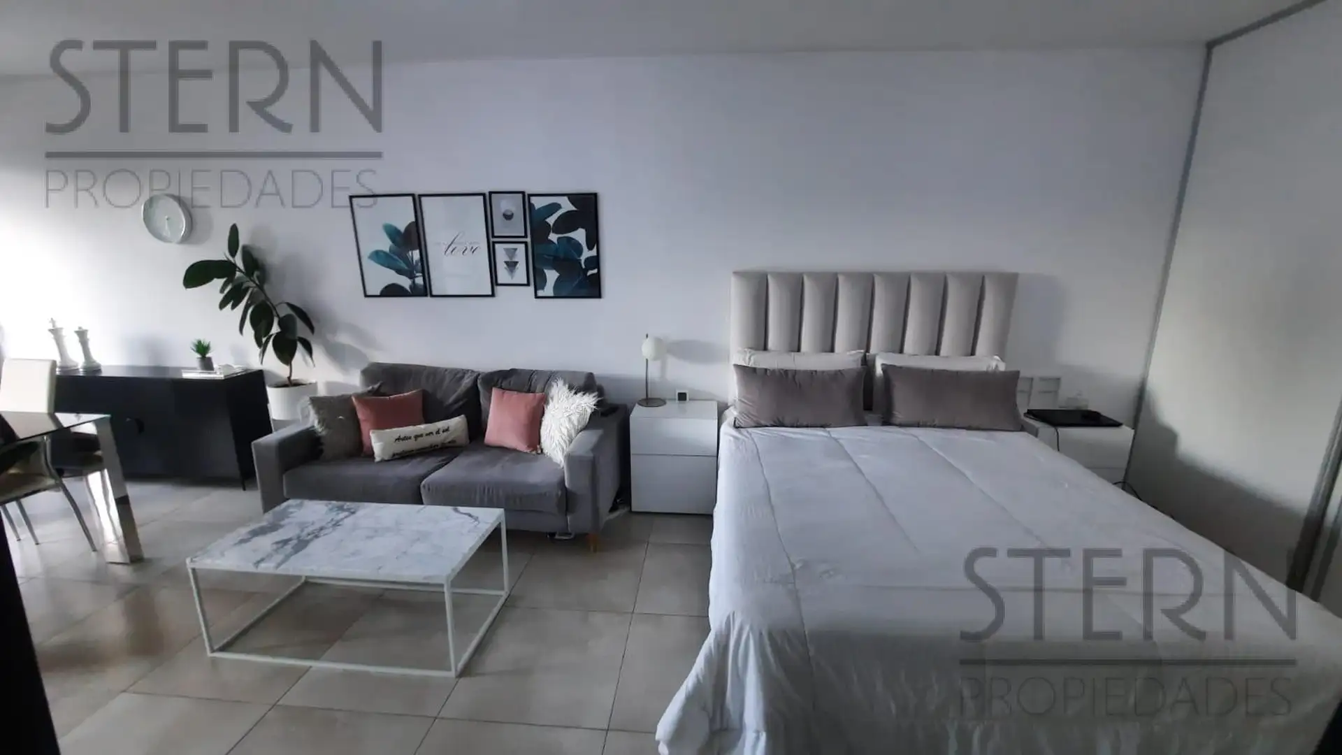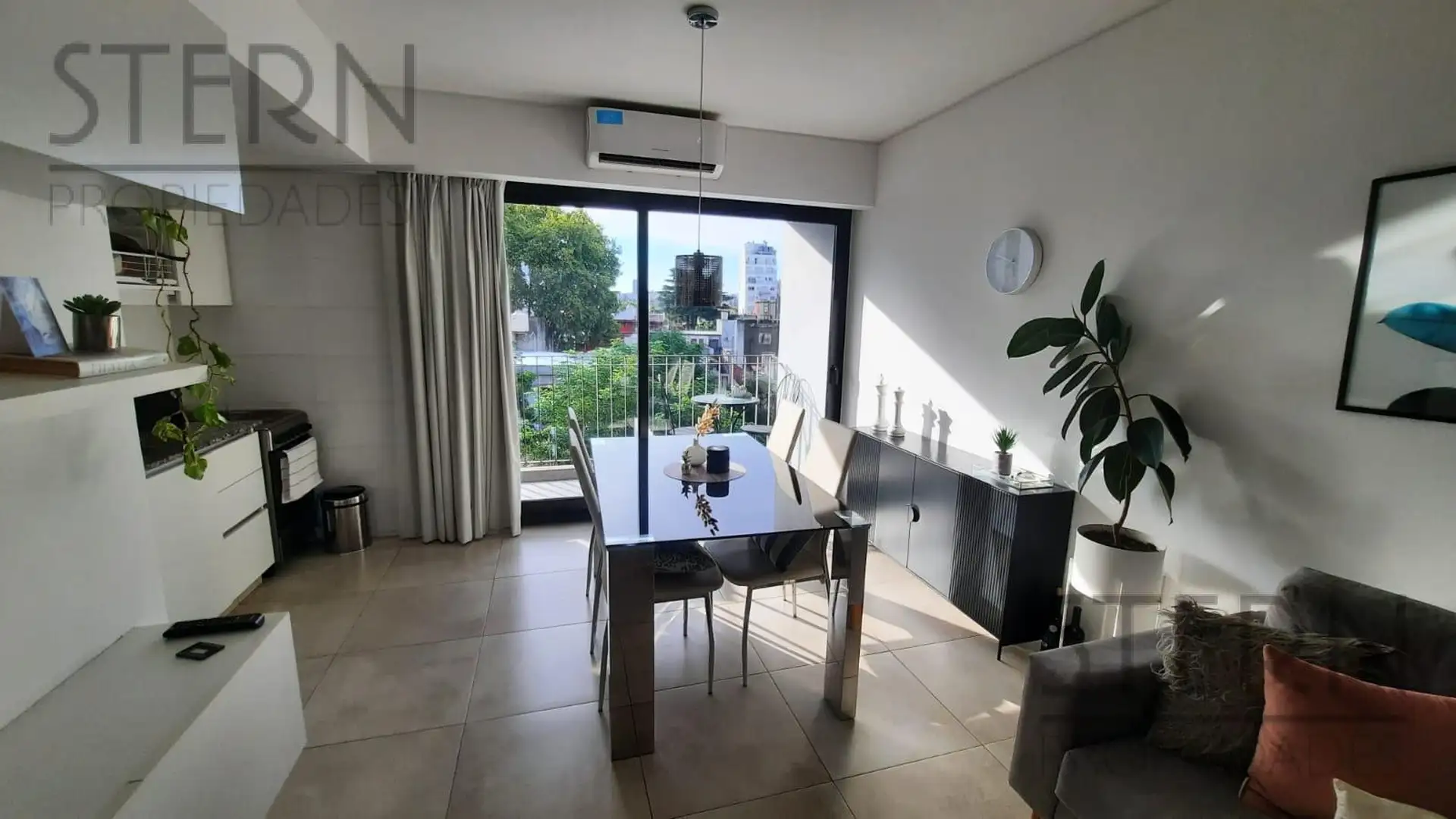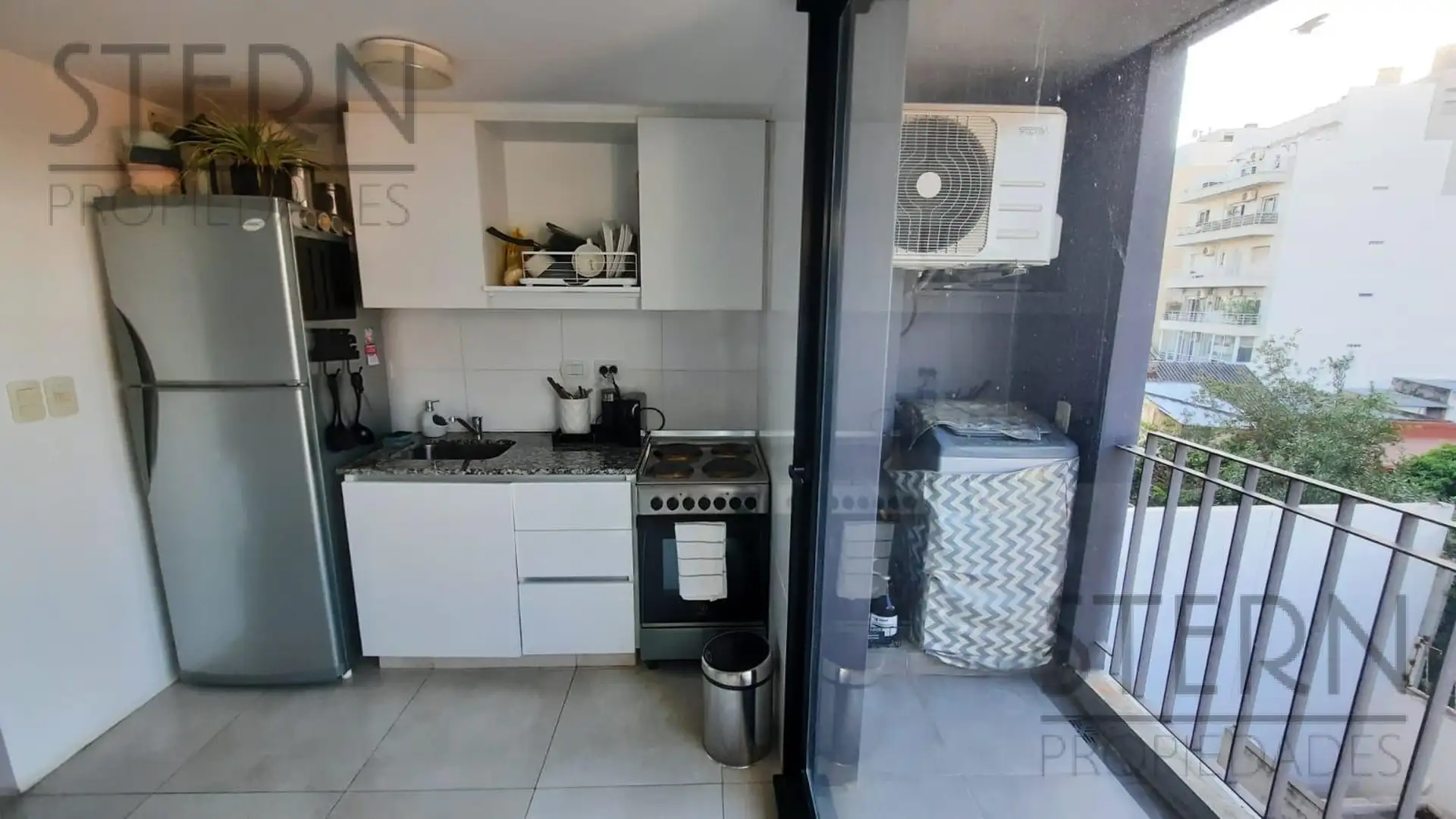 Studio apartment in Parque Chas, 36 m² total, on the 2nd floor, courtyard-facing (contrafrente), with a balcony. The unit includes storage space for bicycles and security cameras. Building fees are approximate and include AYSA and Metrogas for central hot water; ABL is approximately ARS 12,900.