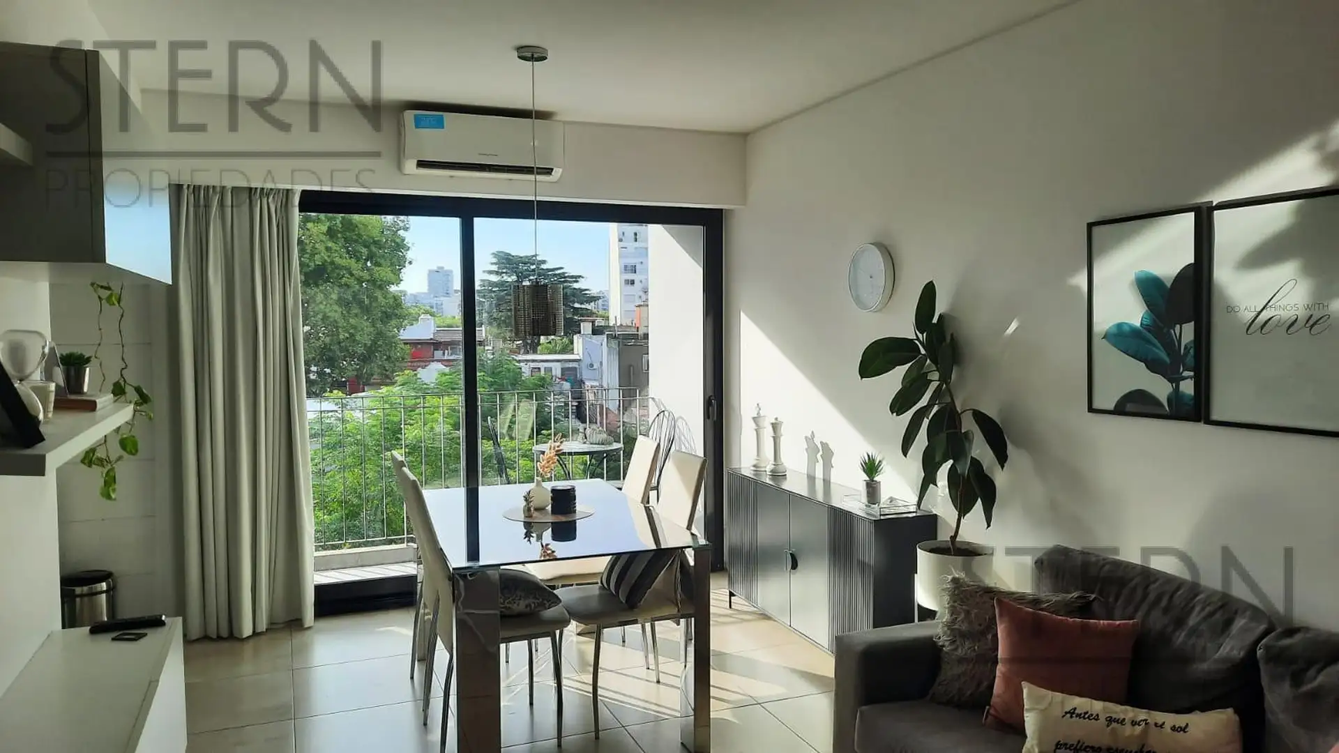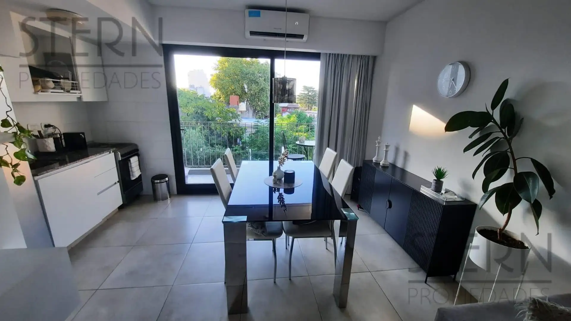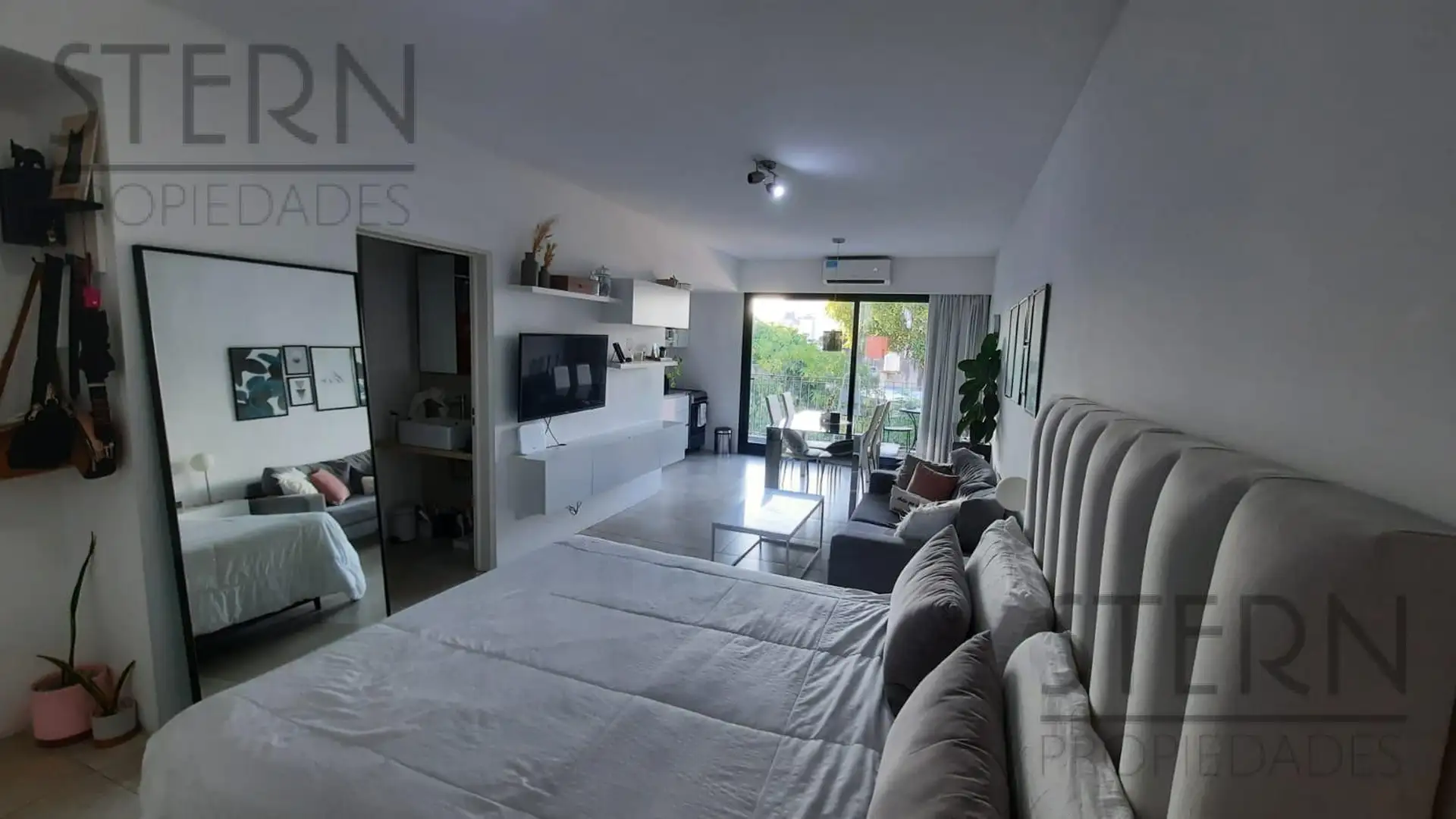 Studio apartment in Parque Chas, 36 m² total, on the 2nd floor, courtyard-facing (contrafrente), with a balcony. The unit includes storage space for bicycles and security cameras. Building fees are approximate and include AYSA and Metrogas for central hot water; ABL is approximately ARS 12,900.