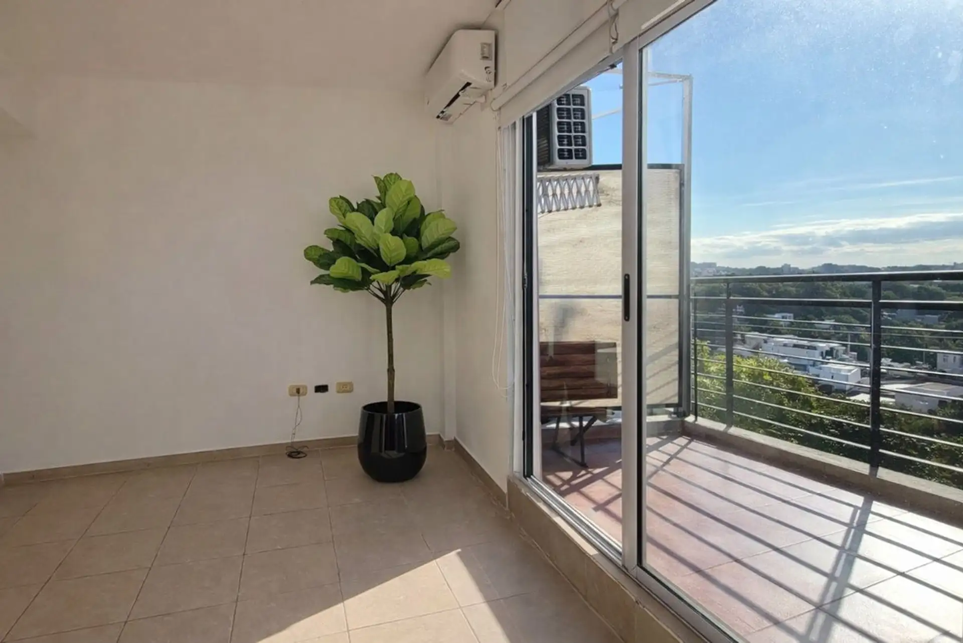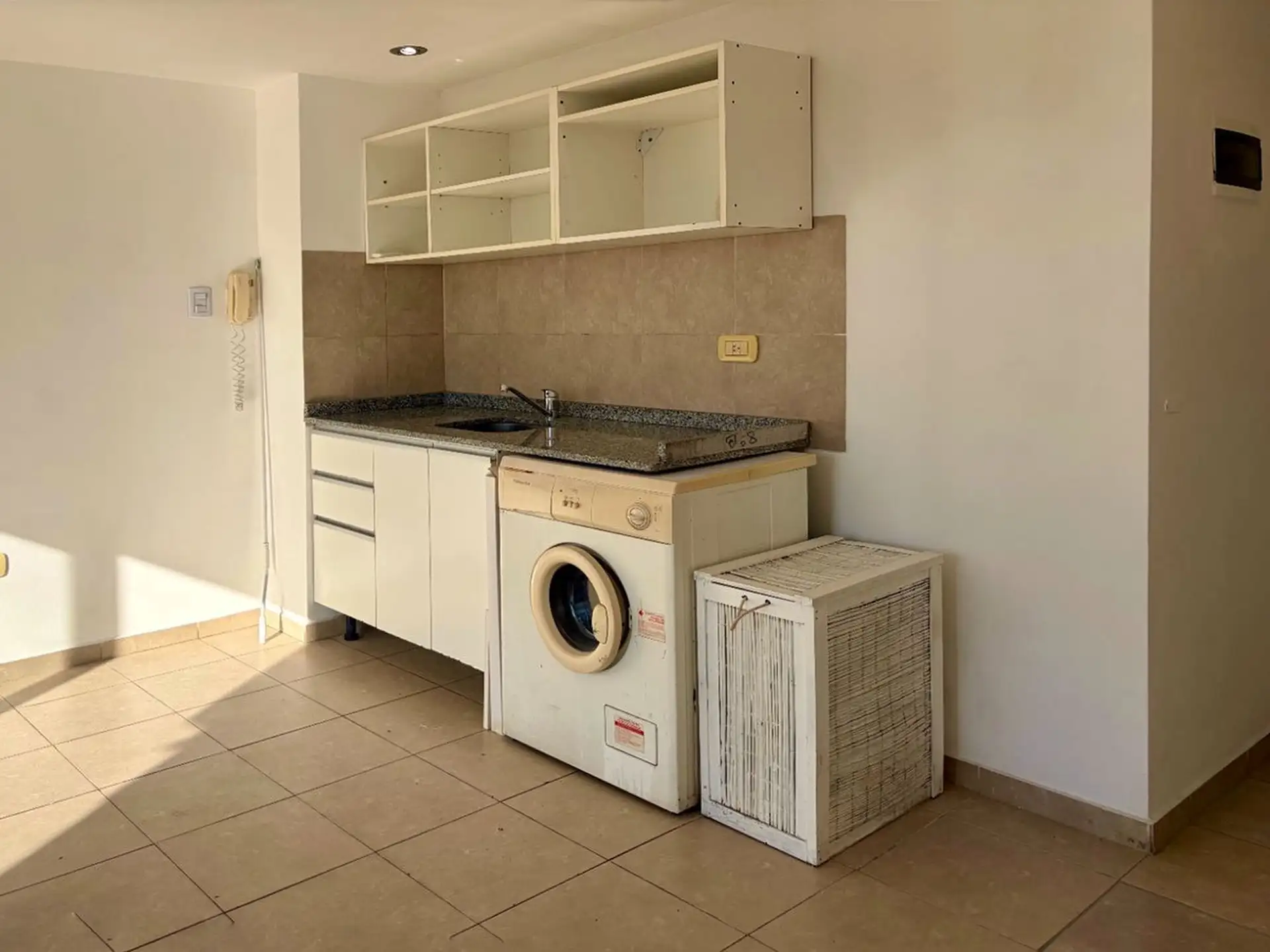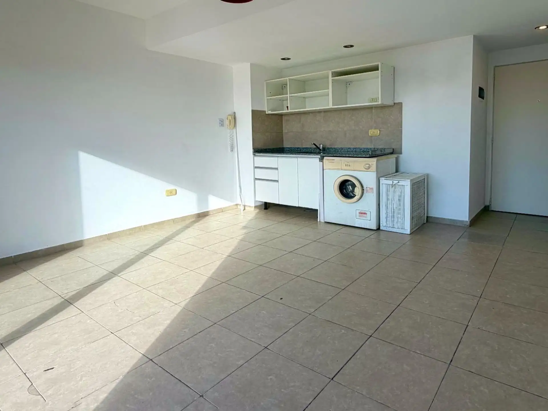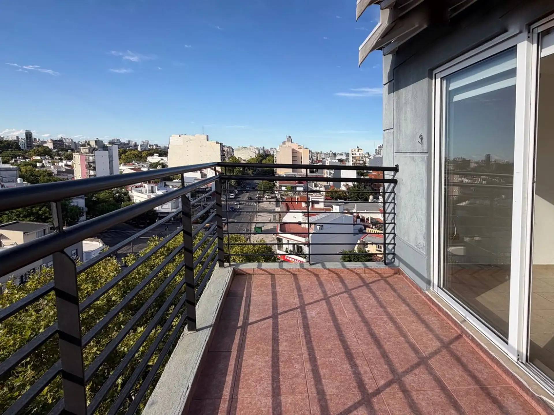 Studio apartment of 24 m² total on the 8th floor, street-facing in Parque Chas, Buenos Aires. Open-plan kitchen, full bathroom with bathtub, and a terrace-style balcony with a retractable vinyl awning. Air conditioning (hot/cold), roller curtains (blackout and sunscreen), and space for a washing machine and refrigerator. The building has low building fees and is about 5 blocks from the Subte. Lease: 2-year contract with quarterly rent increases tied to IPC.