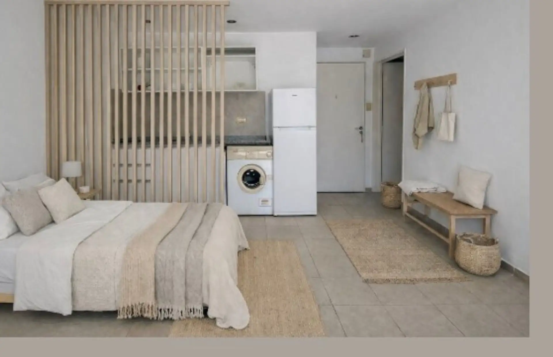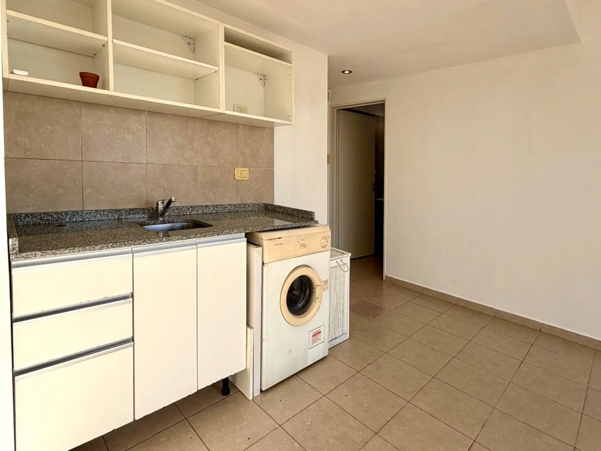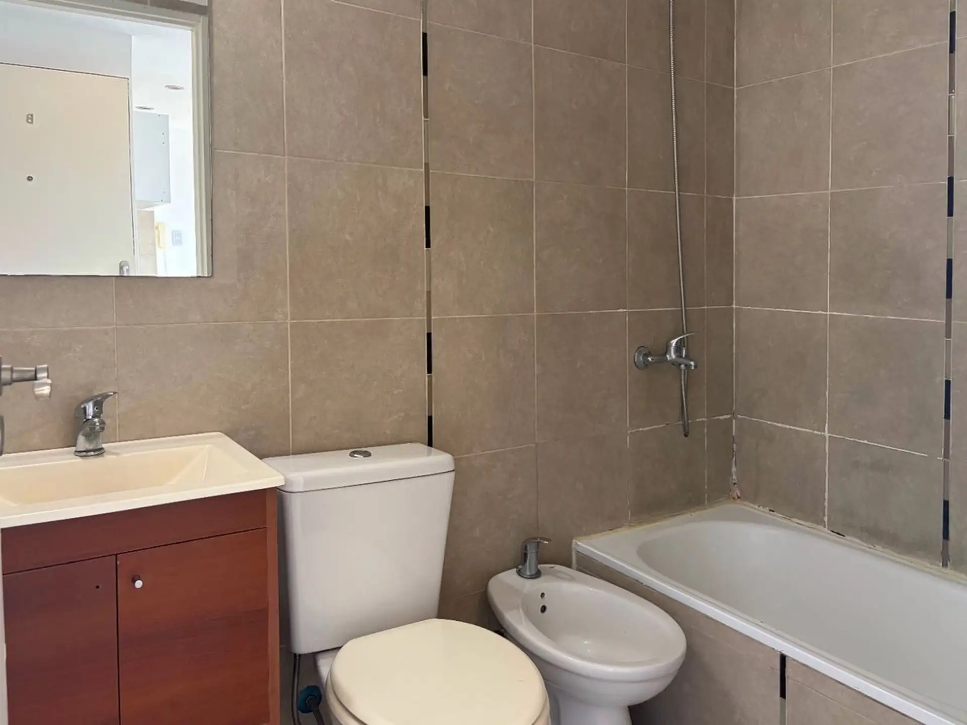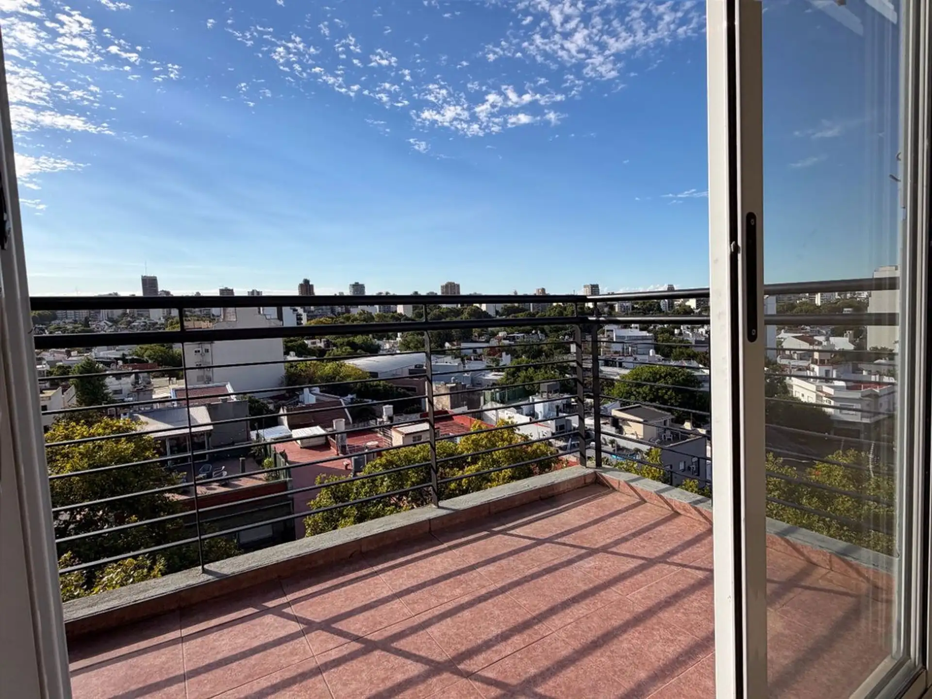Studio apartment of 24 m² total on the 8th floor, street-facing in Parque Chas, Buenos Aires. Open-plan kitchen, full bathroom with bathtub, and a terrace-style balcony with a retractable vinyl awning. Air conditioning (hot/cold), roller curtains (blackout and sunscreen), and space for a washing machine and refrigerator. The building has low building fees and is about 5 blocks from the Subte. Lease: 2-year contract with quarterly rent increases tied to IPC.