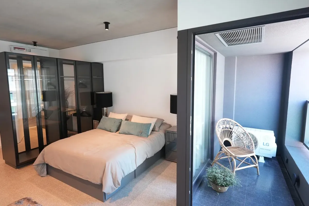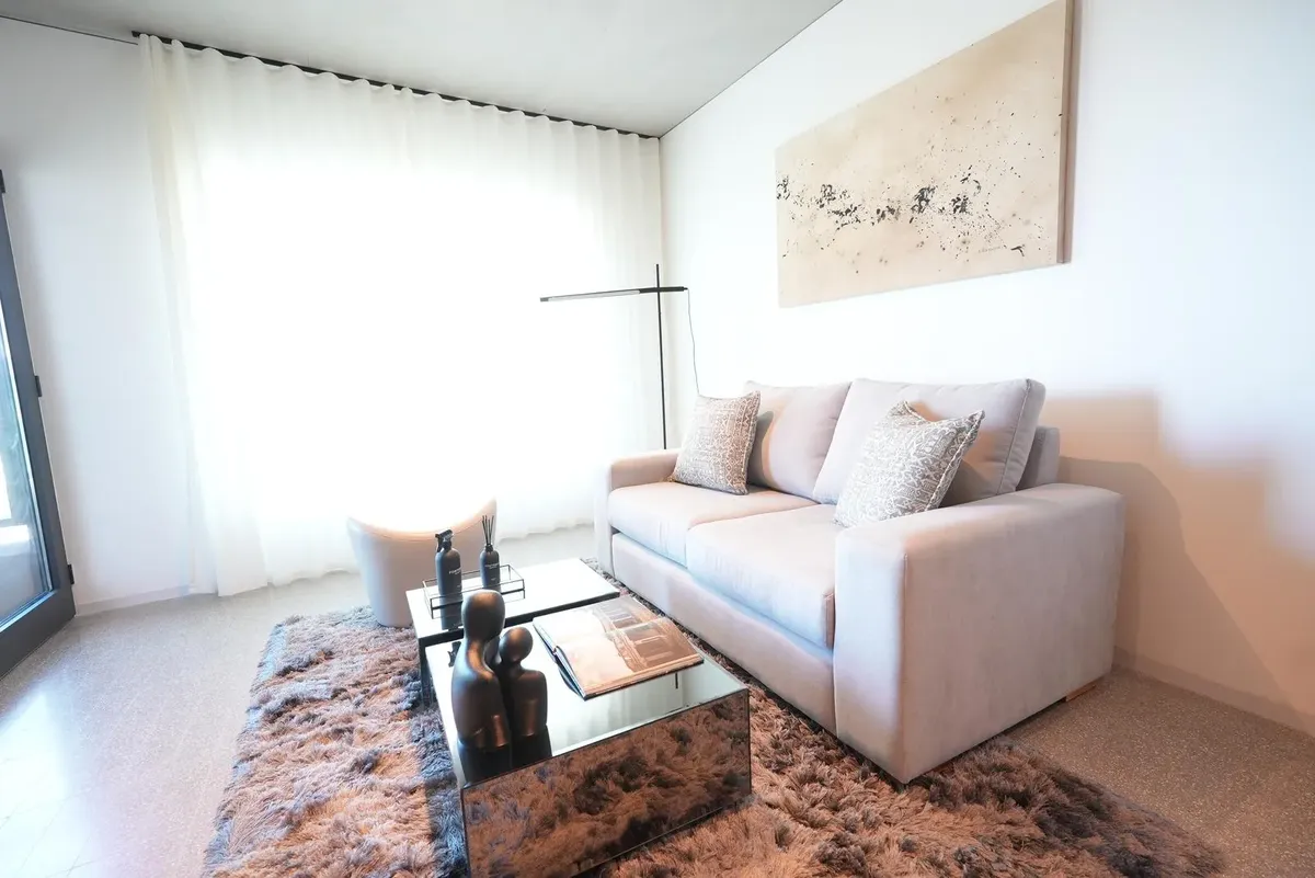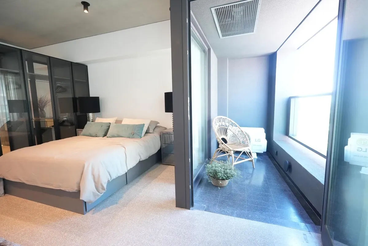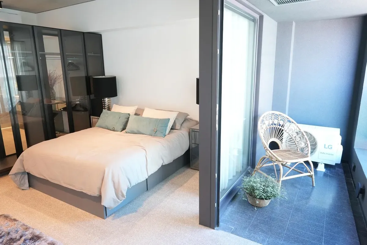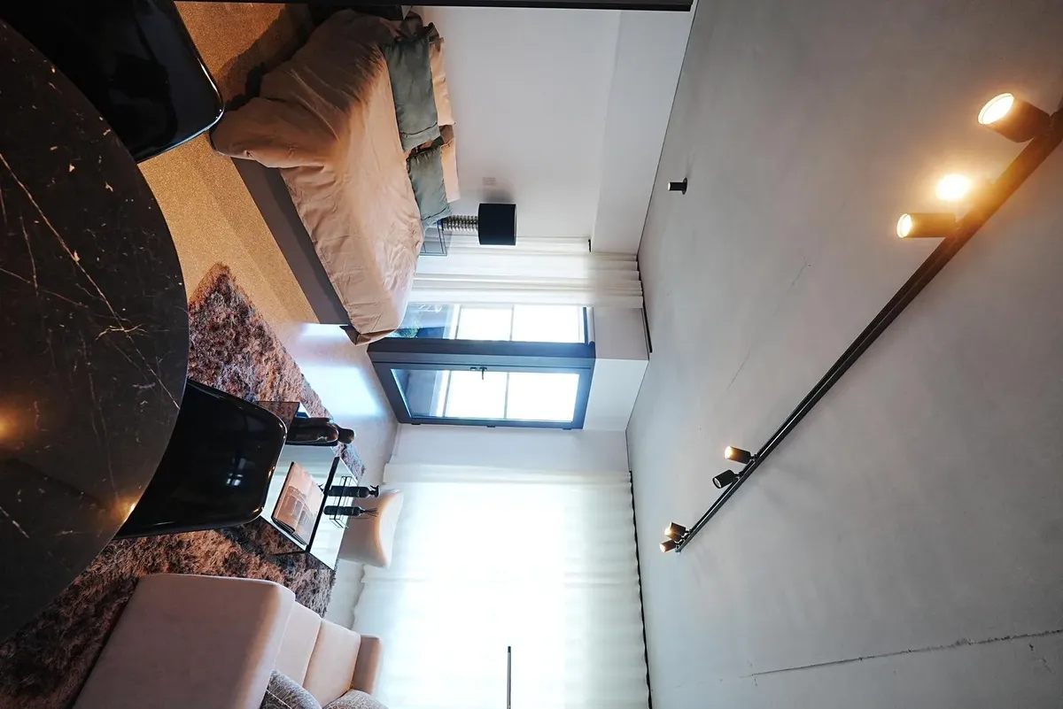 Furnished studio apartment for rent in Puerto Madero, with 42 m² total area. The layout separates the living, sleeping and dining areas. Located at Huergo 475, in an area with quick access to the city centre and nearby transport.