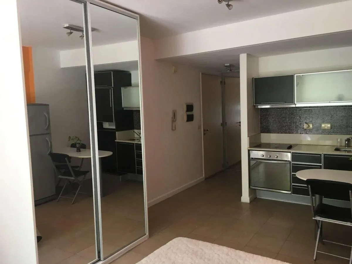 Studio apartment for rent in Puerto Madero on Olga Cossettini and Encarnación Ezcurra, on the 3rd floor. It is street-facing with east orientation and includes an equipped kitchen with upper and lower cabinets, a main room with built-in storage, and a full bathroom. Total area is approximately 33 m², with 28 m² covered, plus a balcony; building fees are approximately $350,000 as of 28/03/2026.