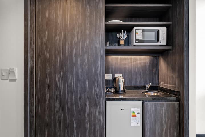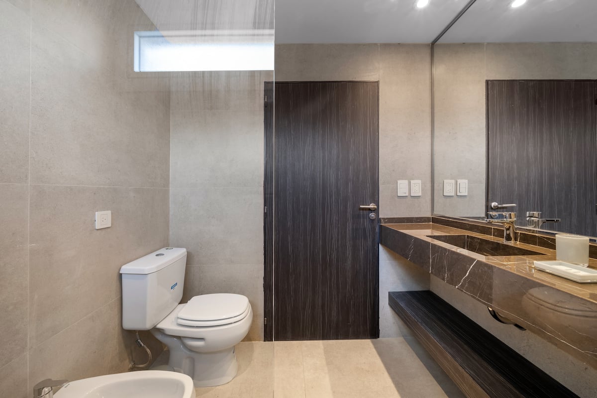 Studio apartment of 40 m² in Puerto Madero. The unit has a private bathroom with walk-in shower, bidet and free toiletries, and includes air conditioning, flat-screen TV, a microwave, refrigerator and an electric kettle. It includes bed linens and towels, Wi-Fi, a double bed, and kitchen utensils (no condiments or dressings). Private parking is not included, and available parking is offered nearby.