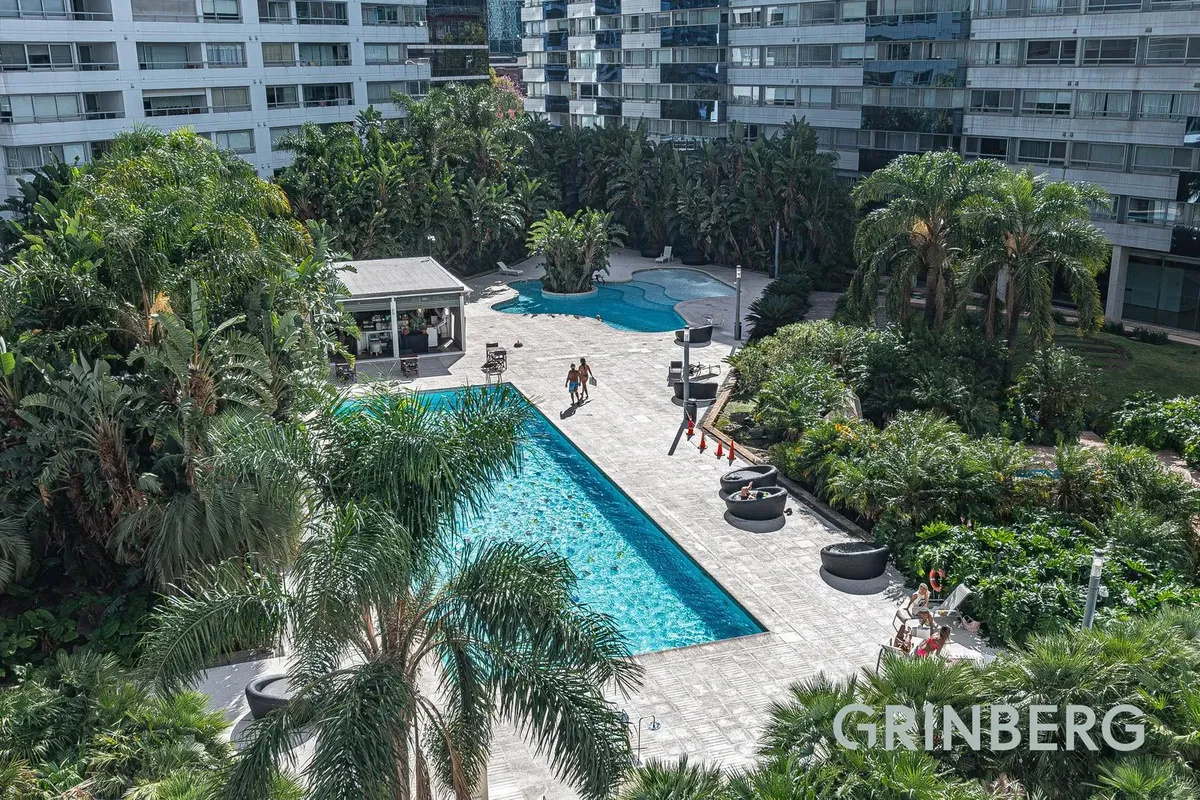 Studio apartment of 47 m² in Zencity Torre ónix, fully refurbished. Courtyard/pool-facing orientation with direct view of the pool. The unit includes assigned parking space. Building amenities include pools with hydromassage and water cascades, a solarium with a functioning bar, fully equipped gym, residents' communal room (SUM), a micro-cinema, 24-hour security and children’s recreation areas.