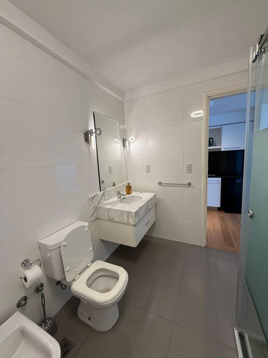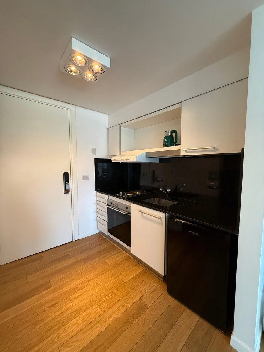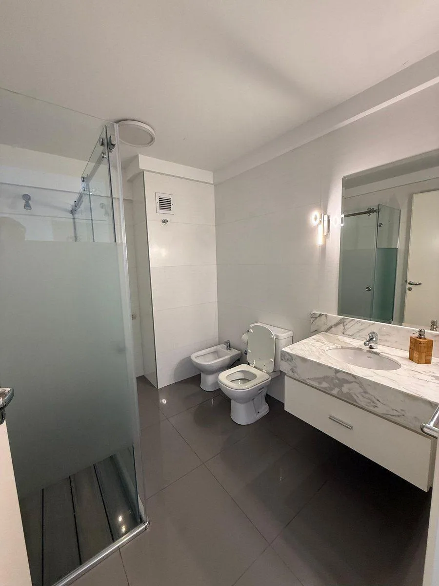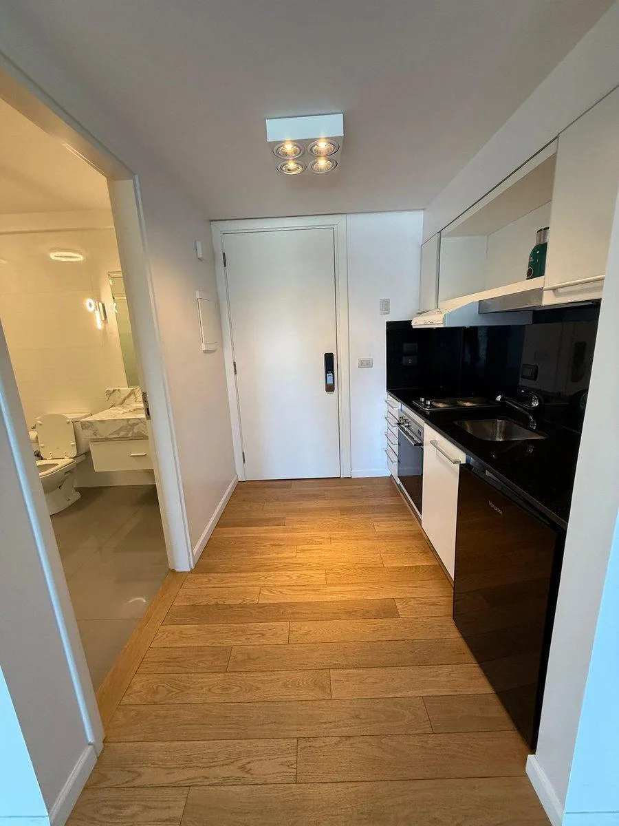 Studio apartment for rent in Puerto Madero with 46 m² total area, including 40 m² covered and 6 m² semi-covered. On the 5th floor of a building completed in 2020. Includes a full bathroom and an assigned parking space.