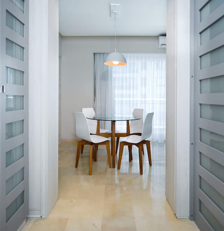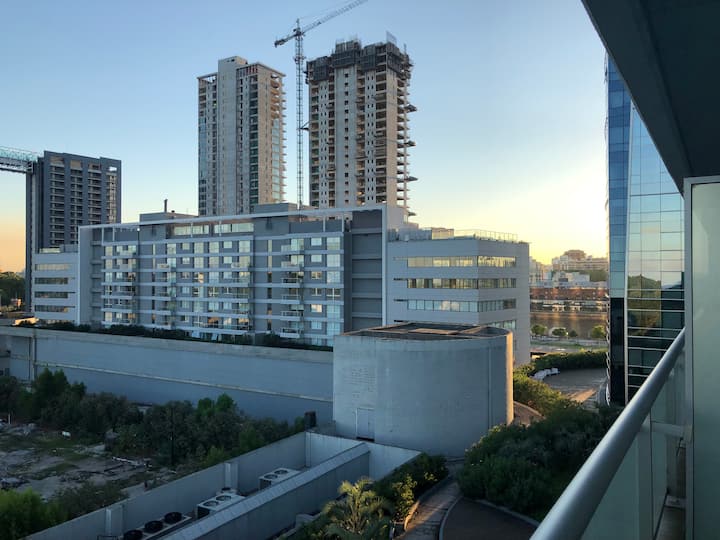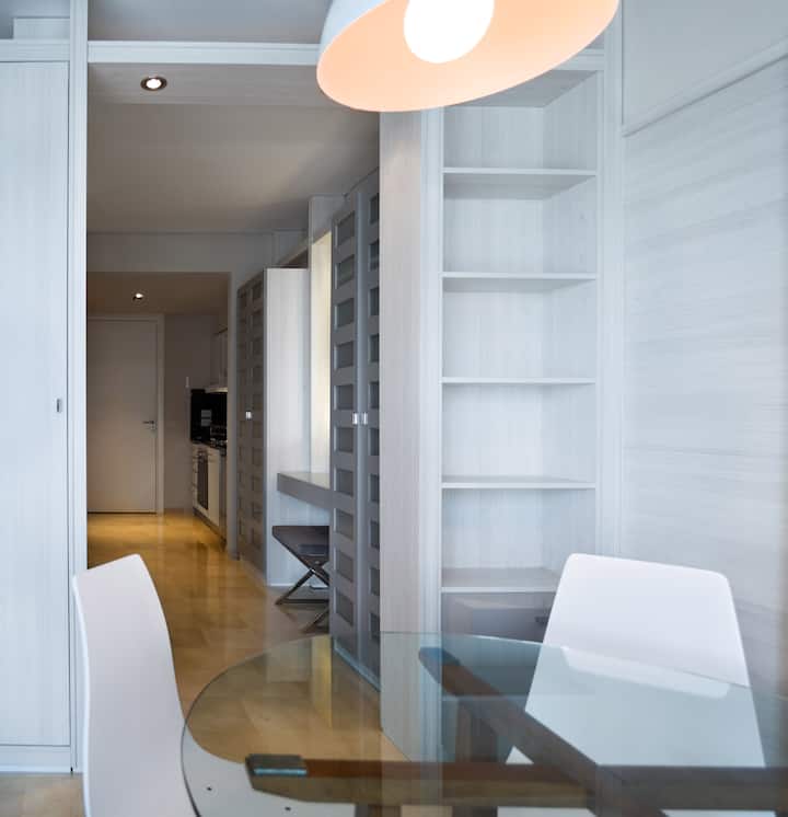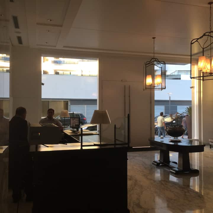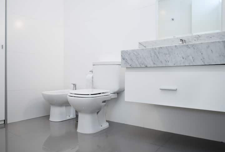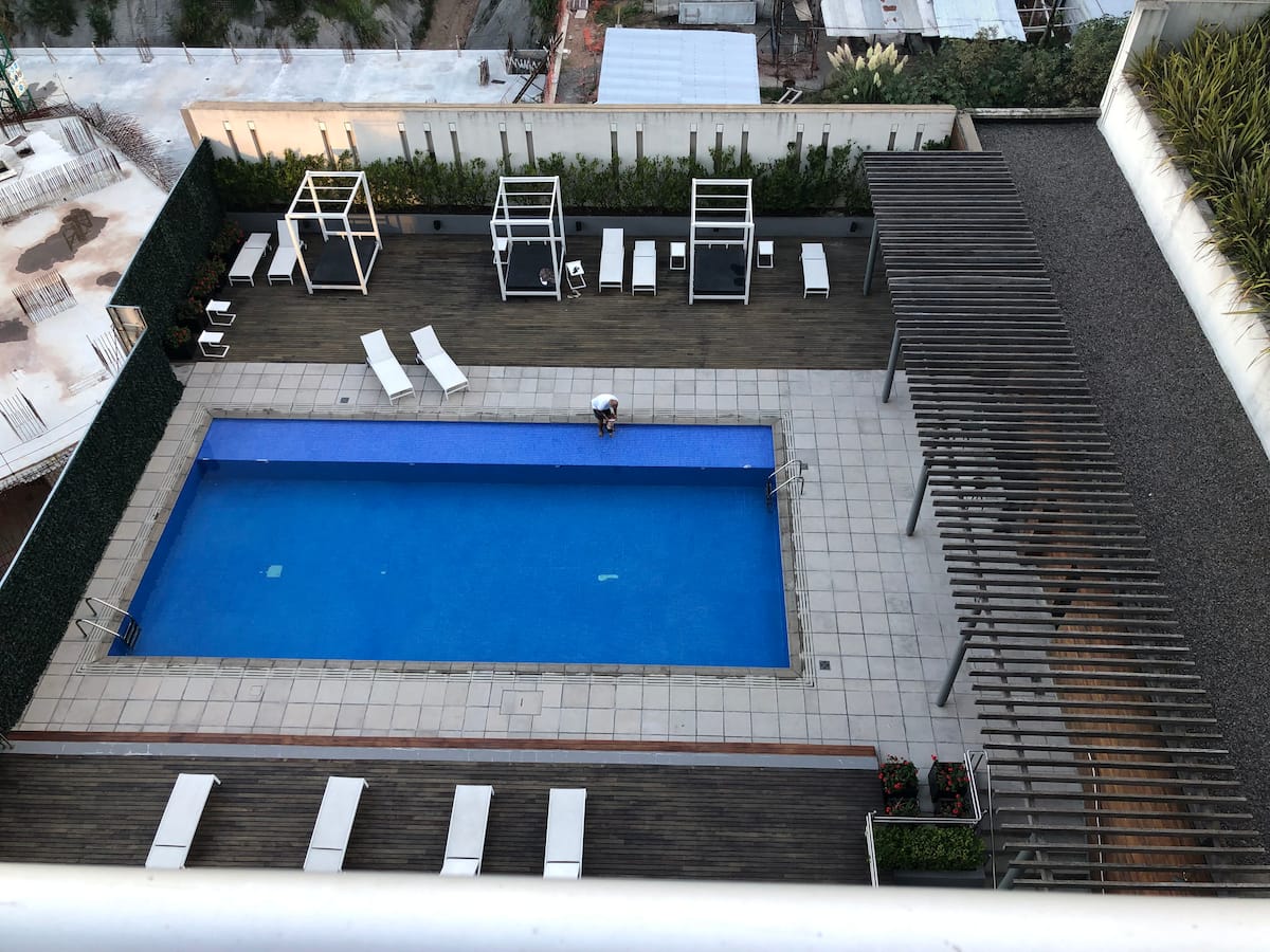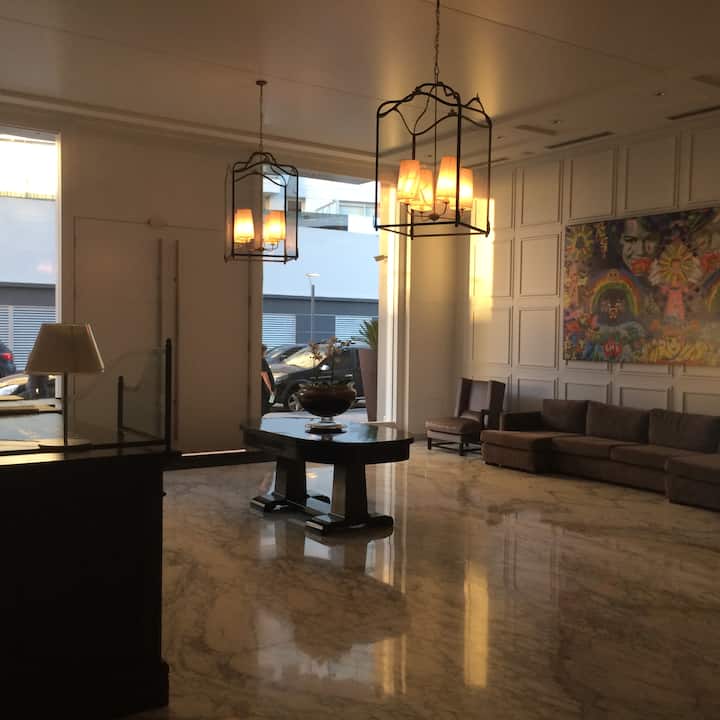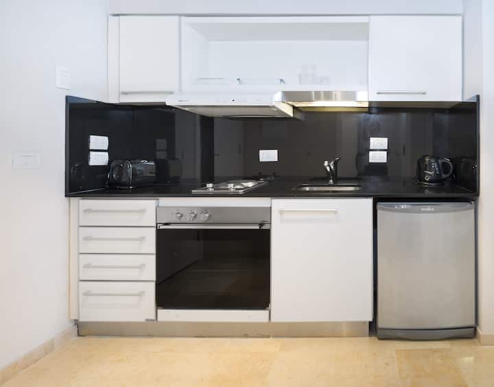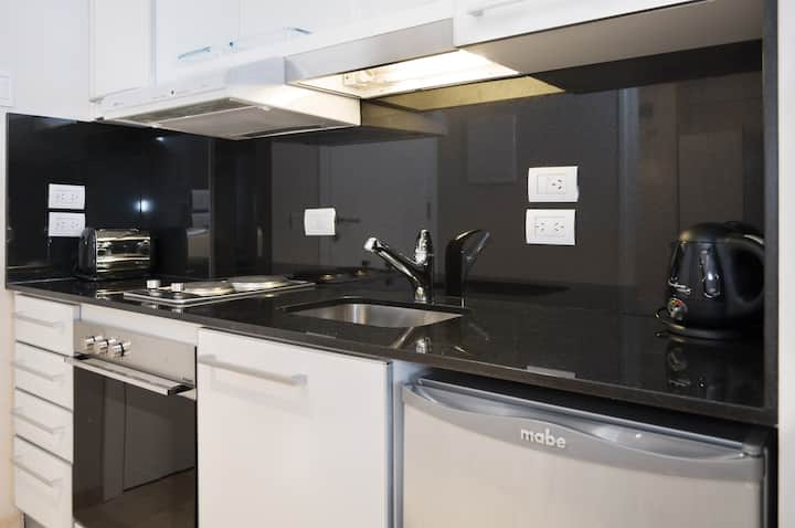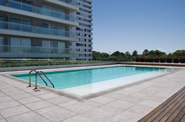 New studio apartment of 50 m² in Puerto Madero, fully furnished. The unit has a bed and a sofa bed, and a kitchen with a toaster, microwave and coffee machine. The building includes a laundry room, gym, pool, jacuzzi and a 24-hour doorman; guests can use the gym, jacuzzi, pool and laundry. A supermarket is within ten steps of the residence building.