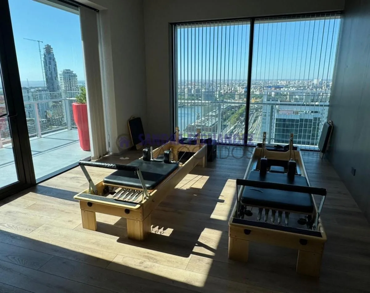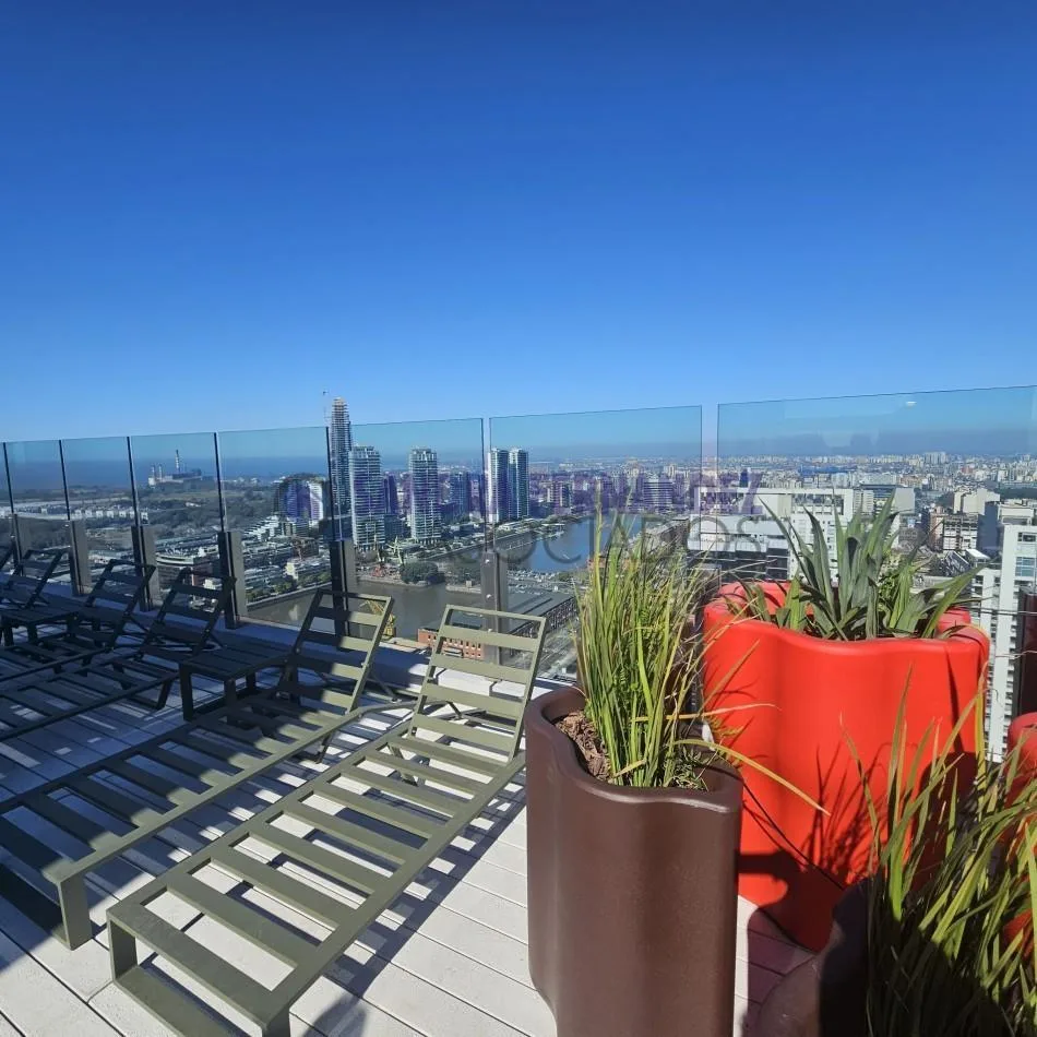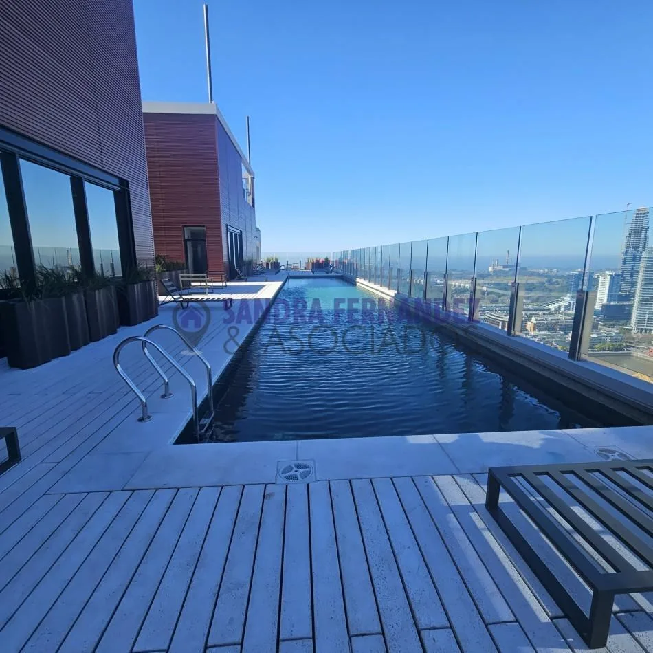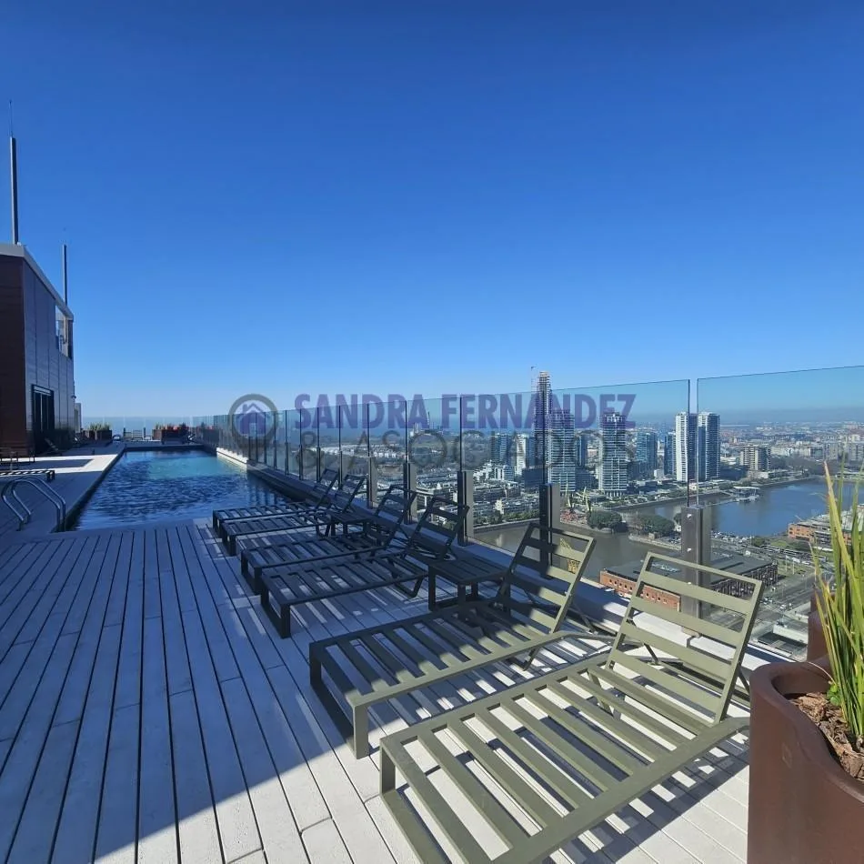 Studio apartments in Quartier del Bajo, Puerto Madero. Units are offered furnished or unfurnished, in buildings with 36 floors and views. Building amenities include pool, heated pool, communal room (SUM), grill area, gym, sauna, massage room, hot tub, laundry and 24-hour security, plus a backup generator. Rent starts at USD 900 plus building fees and other expenses.