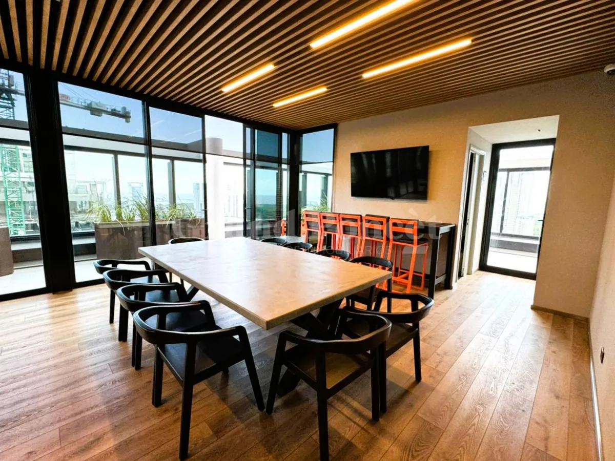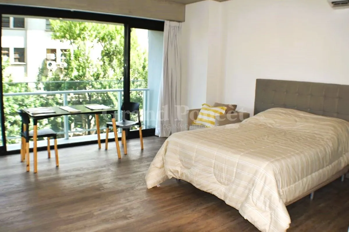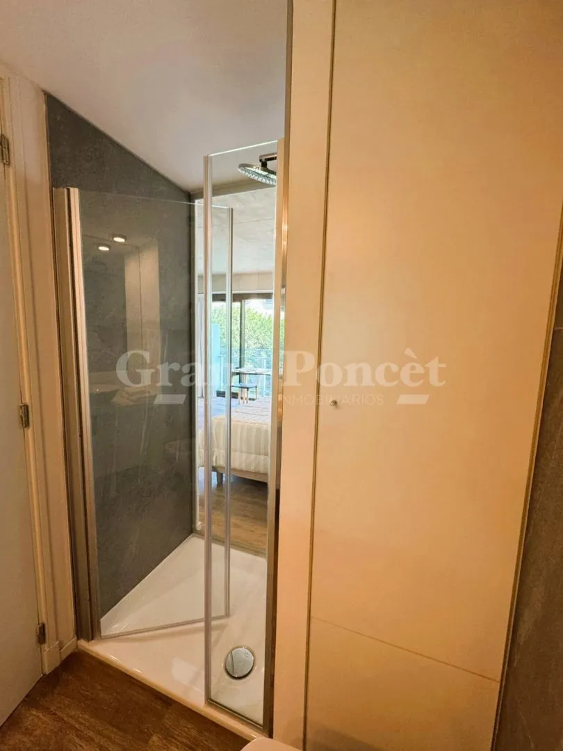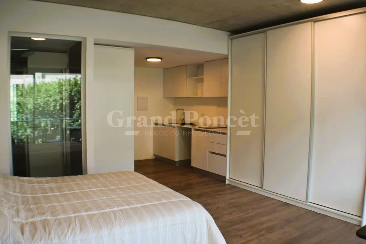 Studio apartment with a balcony in Quartier del Bajo, a complex on the new Paseo del Bajo. Located on the 4th floor of the Torre Rio, southeast-facing, with an open-plan layout including an integrated kitchen, a balcony with an open view, and a shower bathroom. Building amenities are set across the top floors, including a gym, changing rooms, spa with hydromassage, sauna and Finnish baths, an outdoor pool with solarium, and covered BBQ areas with a grill. The complex also includes commercial uni