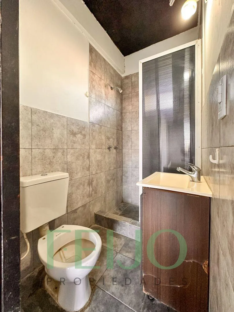 Studio apartment in Monteverde (Florencio Varela) located on Av. Gral Belgrano, a few metres from Av. Monteverde. It is on the first floor and accessed by stairs. The unit includes a combined kitchen-living-dining area and a full bathroom, street-facing. The listing notes good natural light, quick access to public transport, and that it borders Quilmes Oeste. Pets are not accepted.