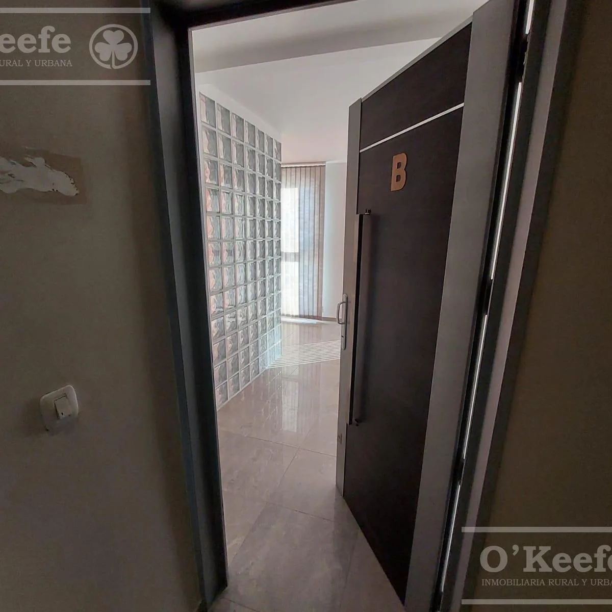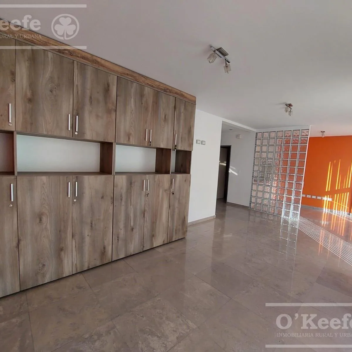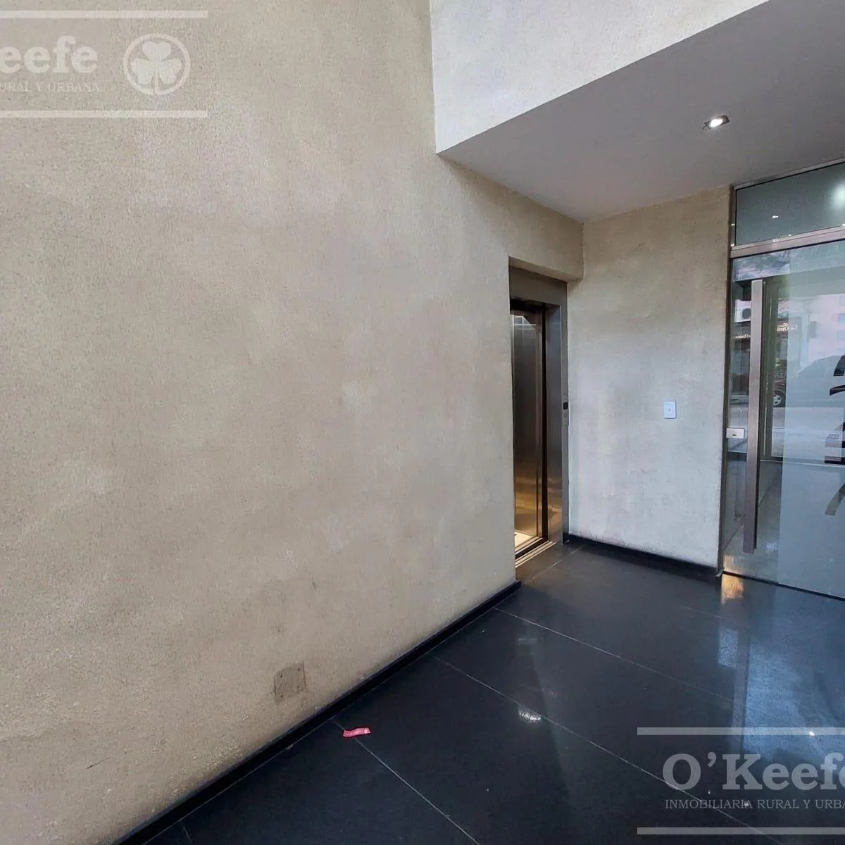 Studio apartment for rent in Quilmes Centro, furnished. Interior space includes built-in storage, a kitchen with base cabinets and wall cabinets, and a full bathroom. The room is separated by a glass-brick wall that lets light through, with air conditioning and a reinforced entry door. The contract is for 24 months with quarterly adjustments based on the IPC index. Requirements include a third-party property guarantee and three payslips, plus an all-risks fire insurance policy covering the rente