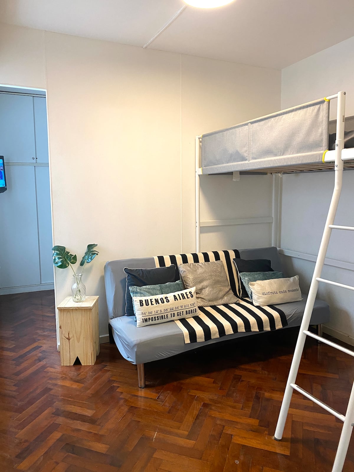 Studio apartment in Recoleta. Capacity is up to 3 adults and 1 child, or 2 adults and 2 children. Air conditioning provides cold only, and there is a portable heater. A set of keys is provided to the person responsible for the booking. Smoking and parties are not allowed; no visits or entry for people not included in the reservation.