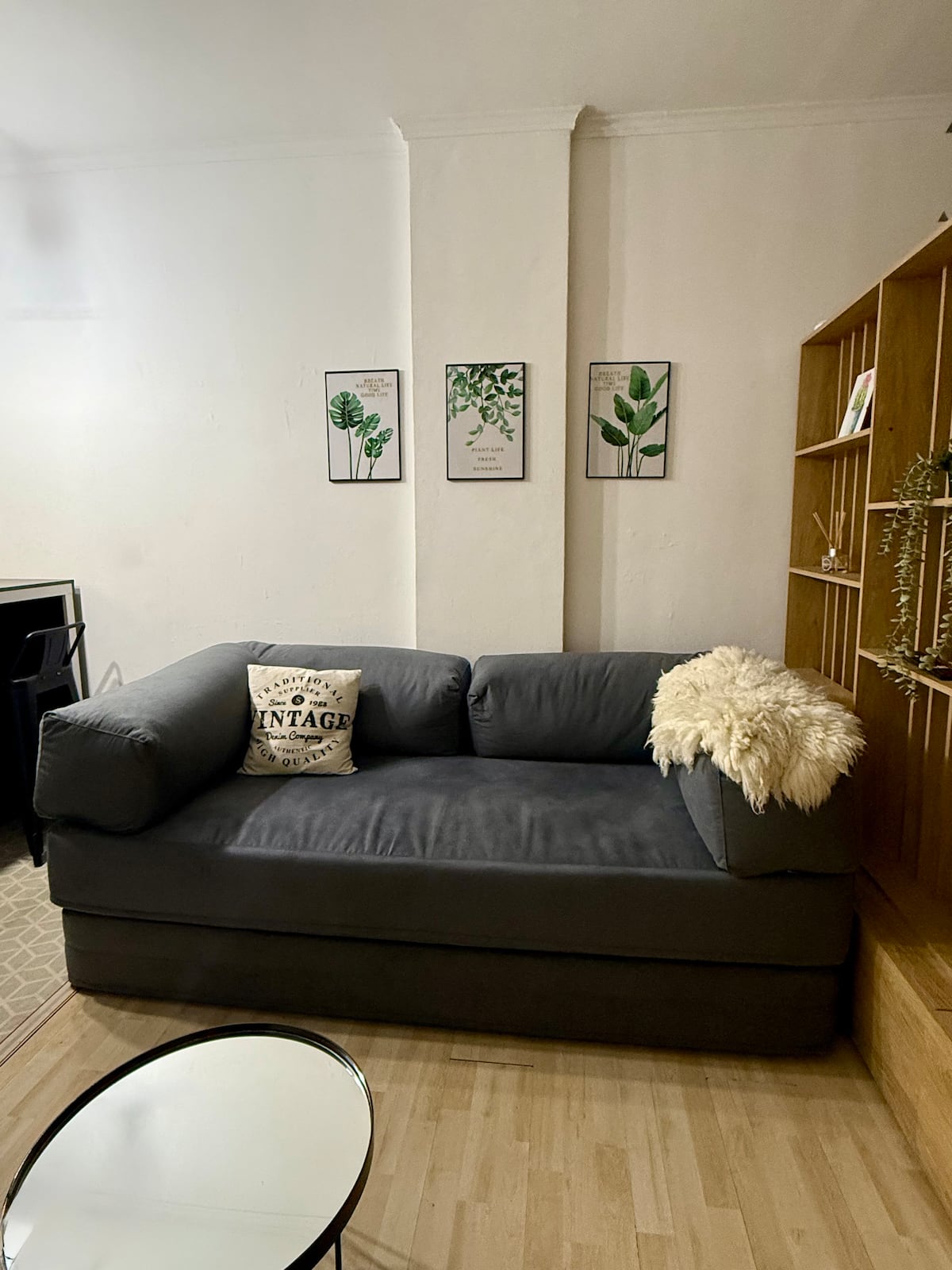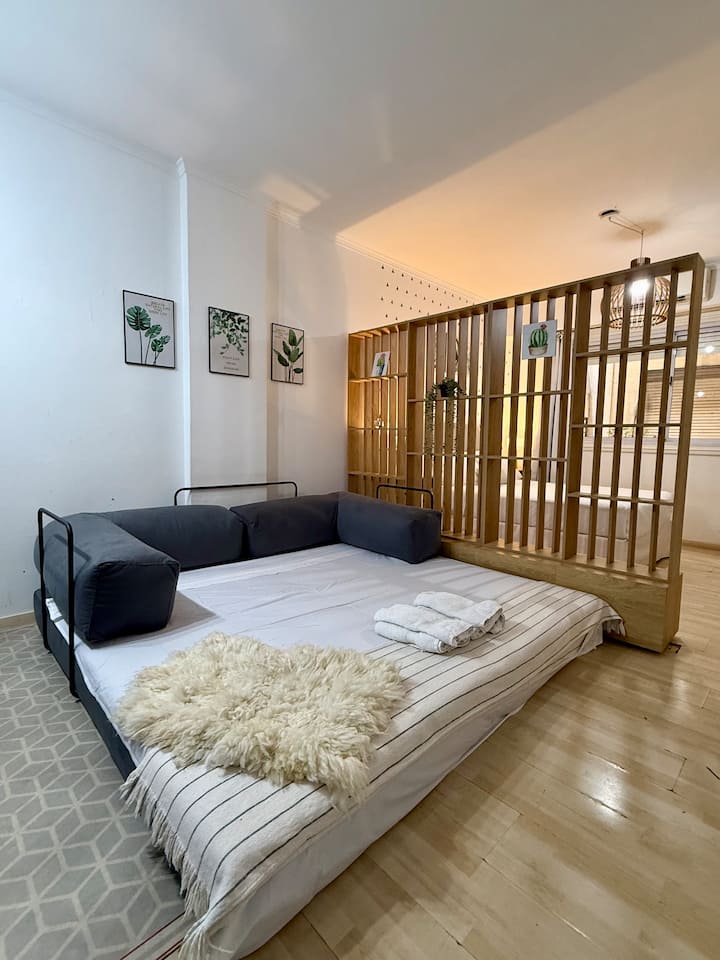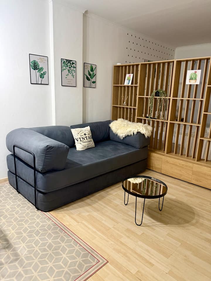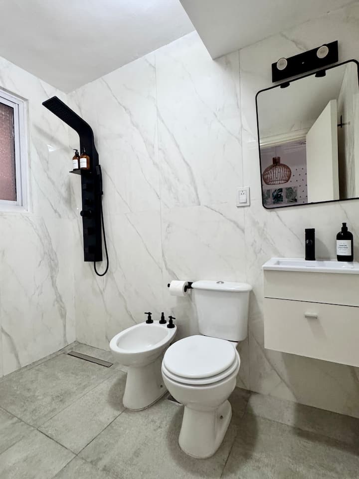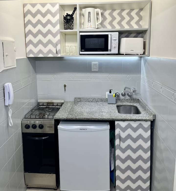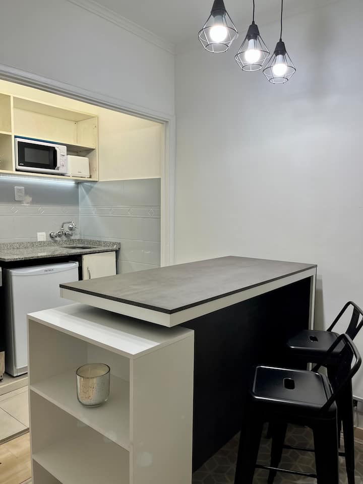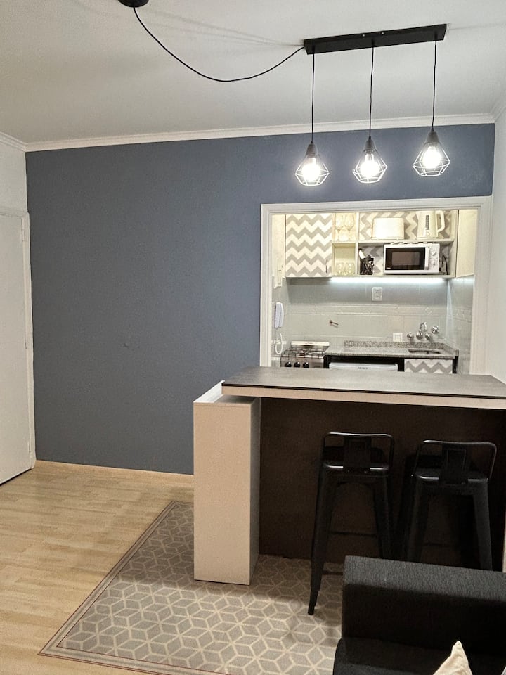 Renovated studio apartment in Recoleta in an older but well-maintained building. It includes a queen bed, a sofa bed, a fully equipped kitchen, air conditioning and WiFi, with a capacity for up to 3 guests. The bathroom was redone and features a Scottish shower.