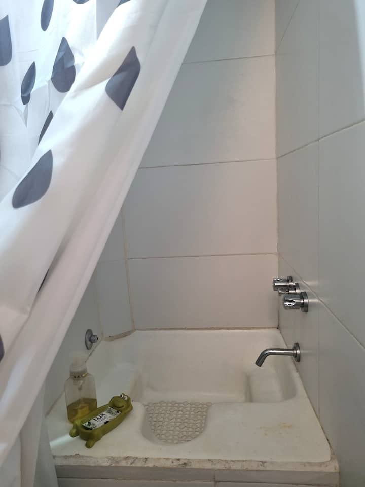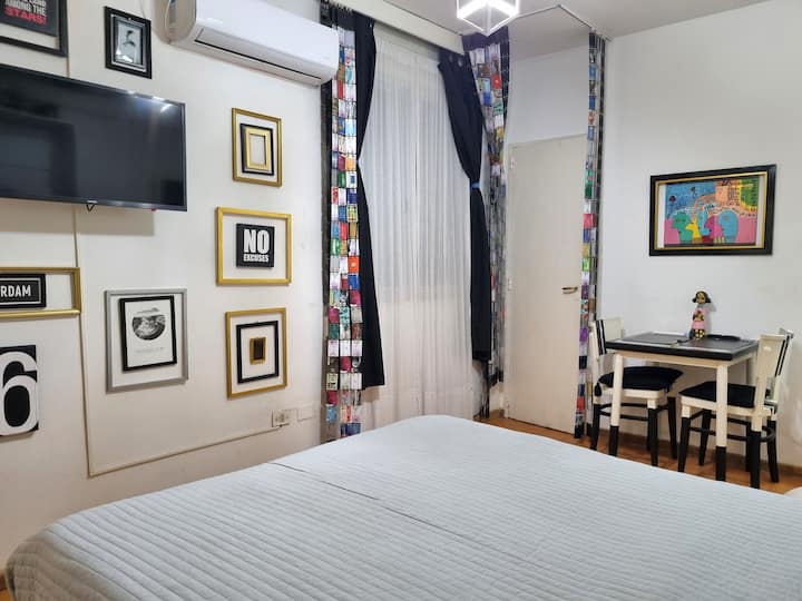 Studio apartment with 23 m² in Recoleta. One block from Av. Santa Fe and two blocks from Av. Pueyrredon, with Subway lines D and H about two blocks away and bus services nearby. The studio has a convertible (Revatiable) bed and a very small bathroom.