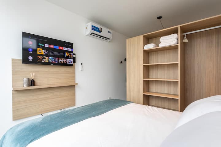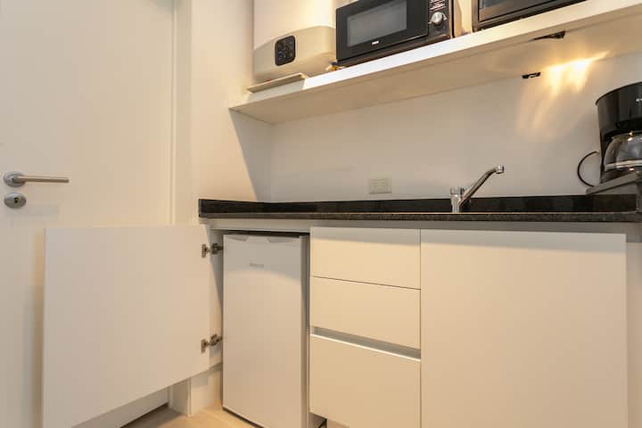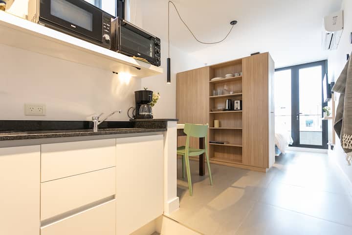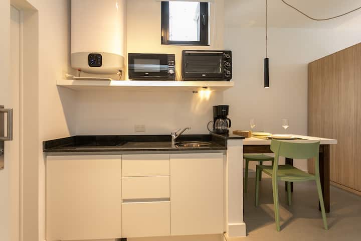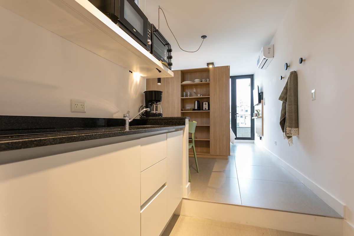 Studio apartment in Recoleta with Wi-Fi, air conditioning, and a kitchen stocked for a stay. The property is about 15 minutes on foot from Cementerio de la Recoleta and roughly 5 minutes from the subway.