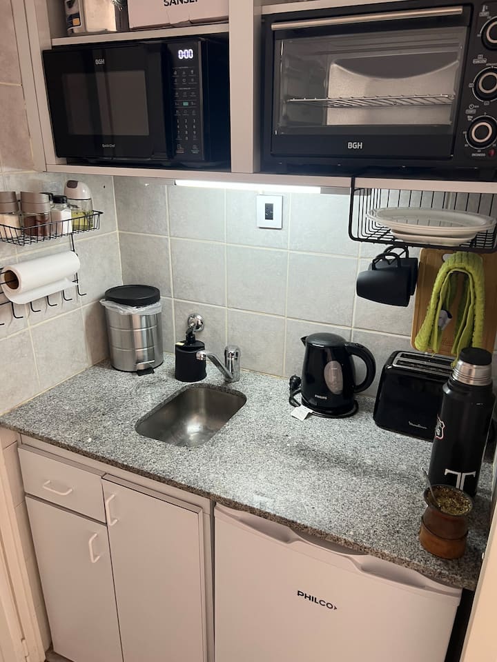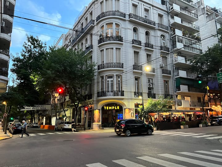 Studio apartment for 2 people in Recoleta. Located 4 blocks from Alto Palermo shopping and 1 block from Subte Line D, station Agüero, with a bike station in the building. One block from Av. Santa Fe, with access to multiple bus services and subway lines.