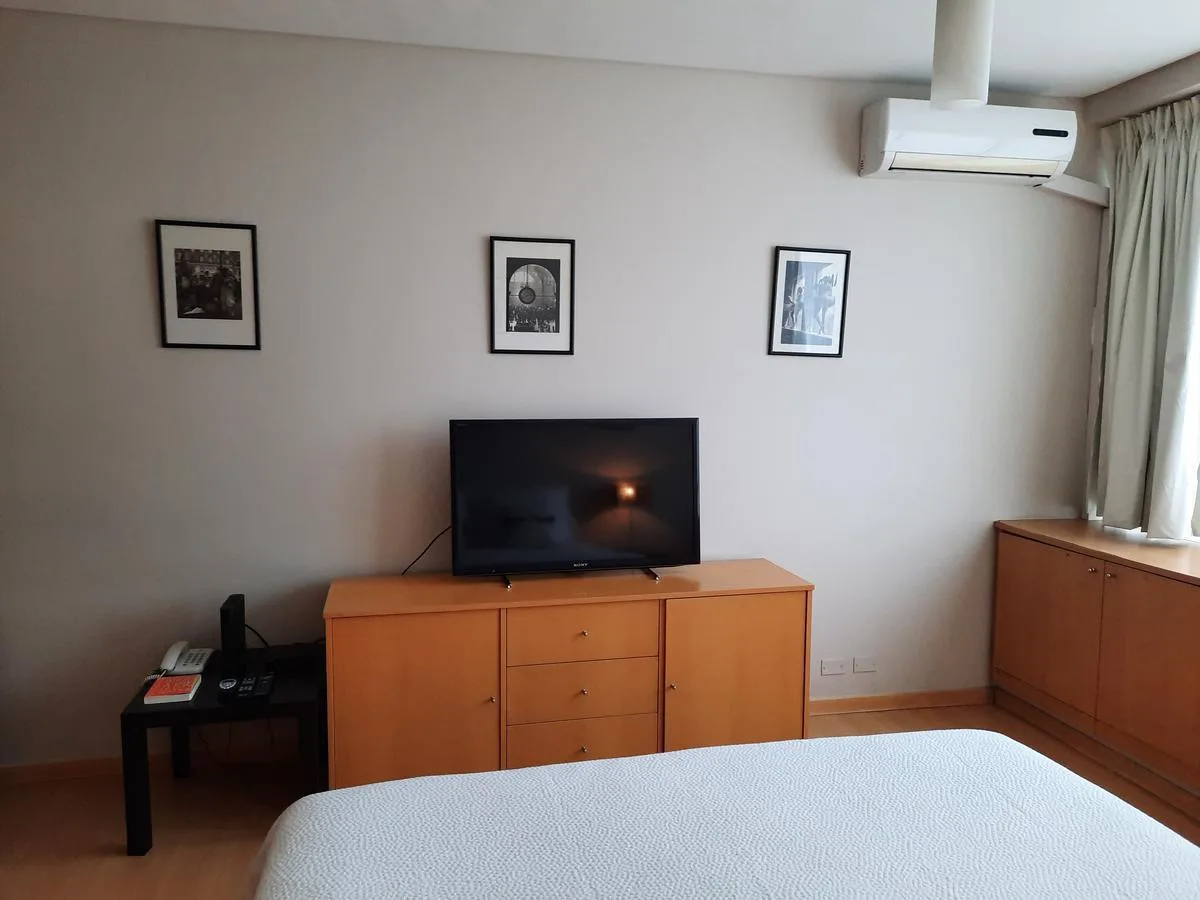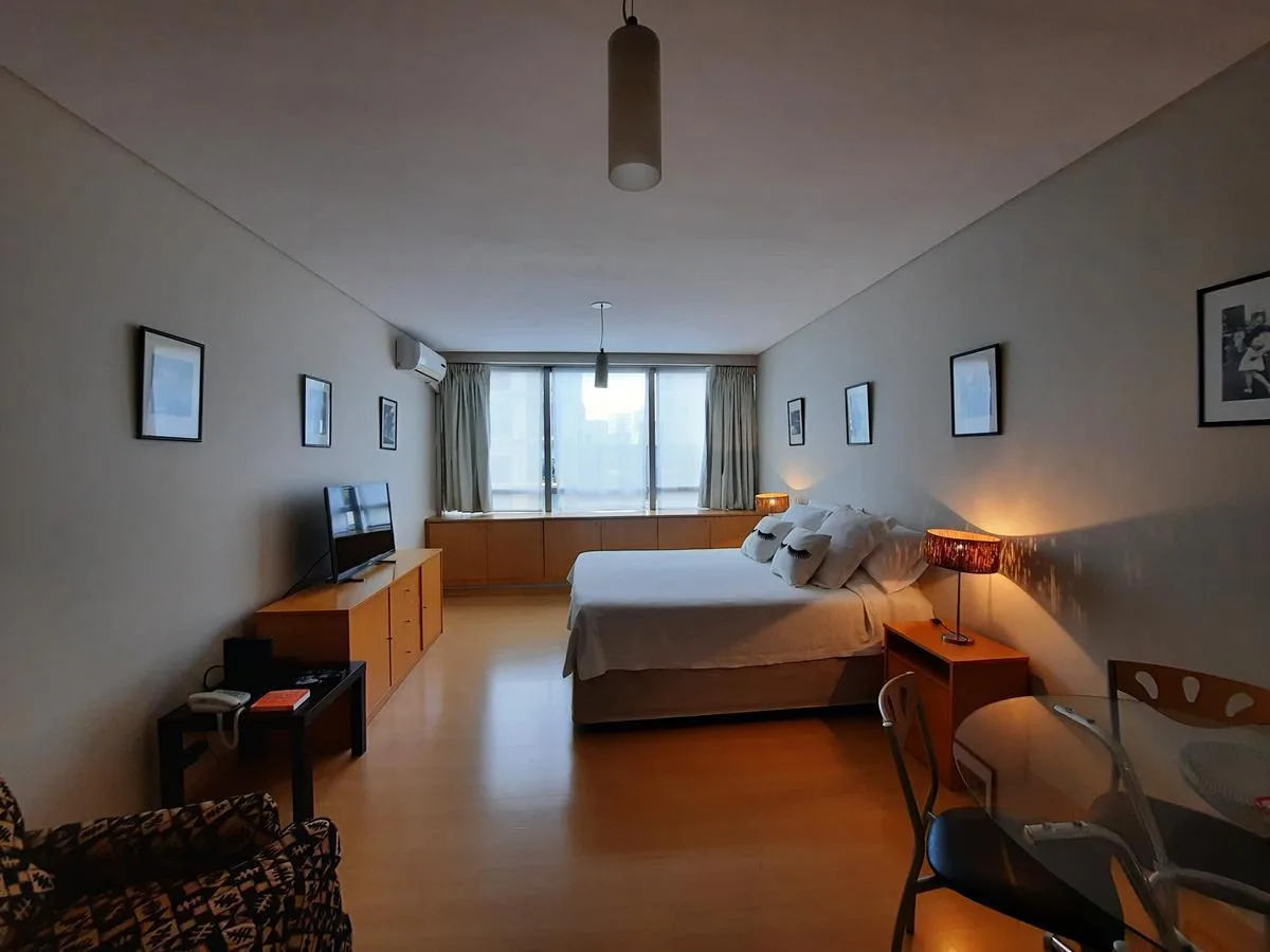 Studio apartment of 40 m², street-facing, with city views in Recoleta. Temporary rental for short or extended stays for 2 guests, available from July, with air conditioning (hot/cold), in-room safe, and cable TV and Wi-Fi. Building amenities include laundry, gym, sauna, jacuzzi, pool with solarium and garden, and 24-hour security. Private parking is available in the building for an additional charge. For extended stays: USD 700 per month, including taxes and water; building fees, electricity and