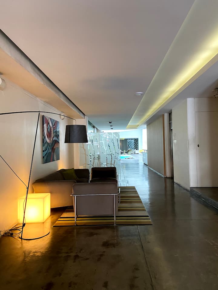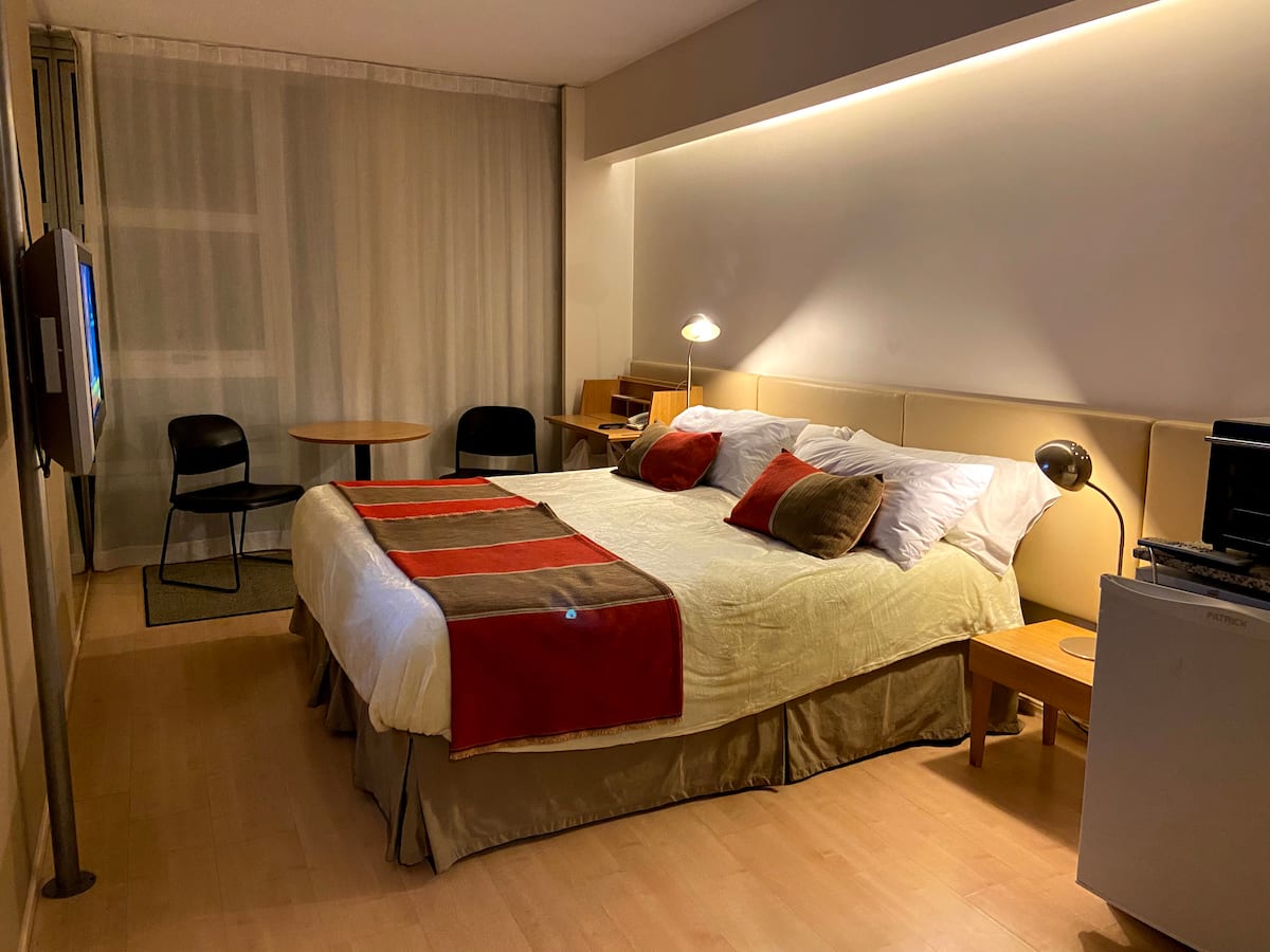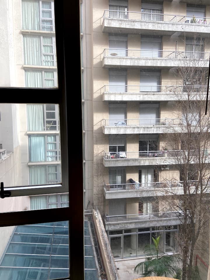 Studio apartment in Recoleta. It includes 1 king bed. The listing describes it as quiet, with easy access to public transport.