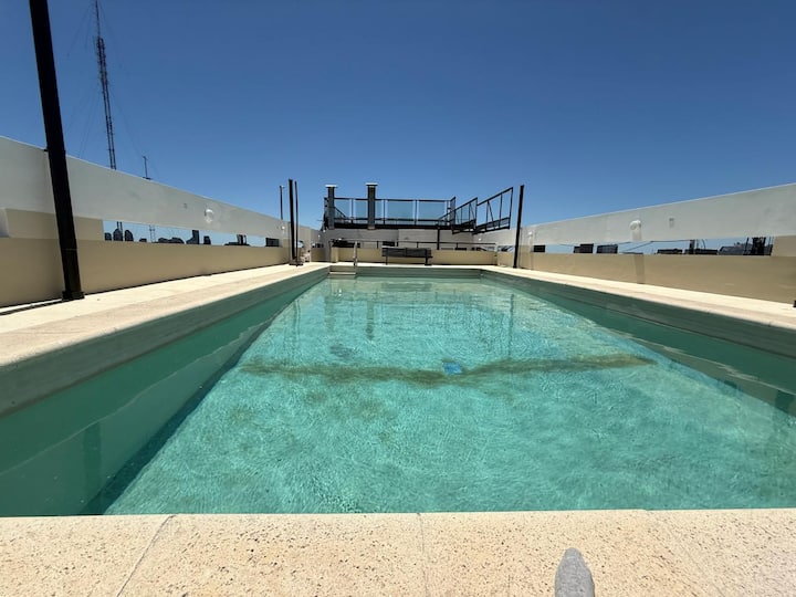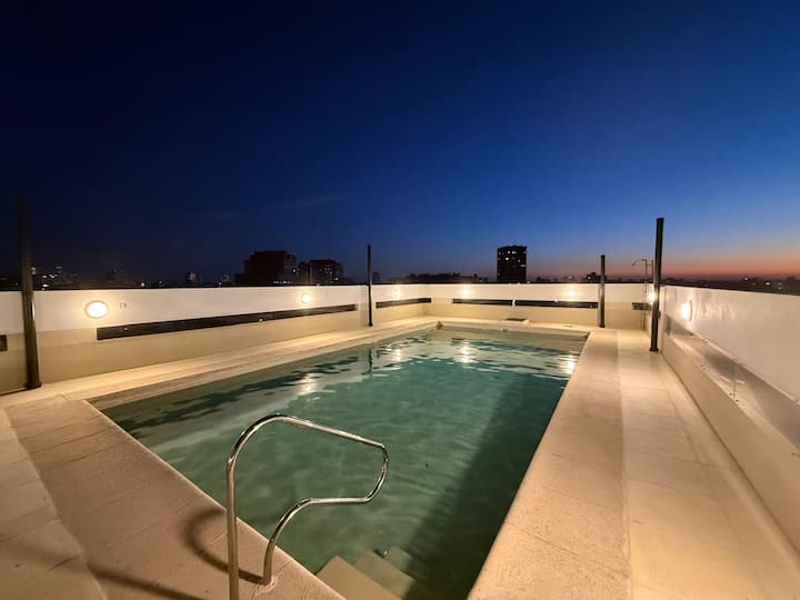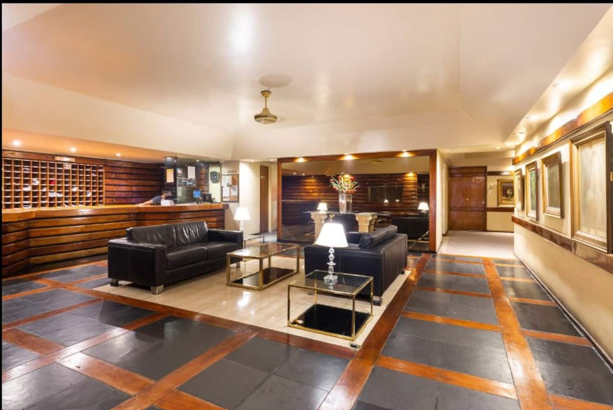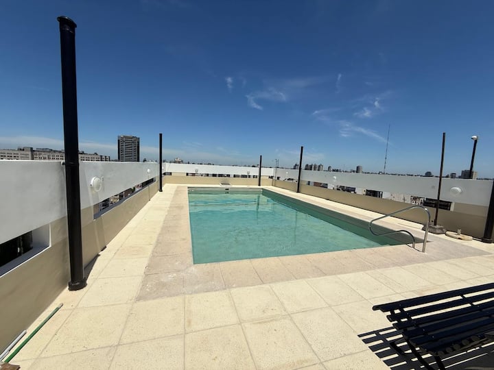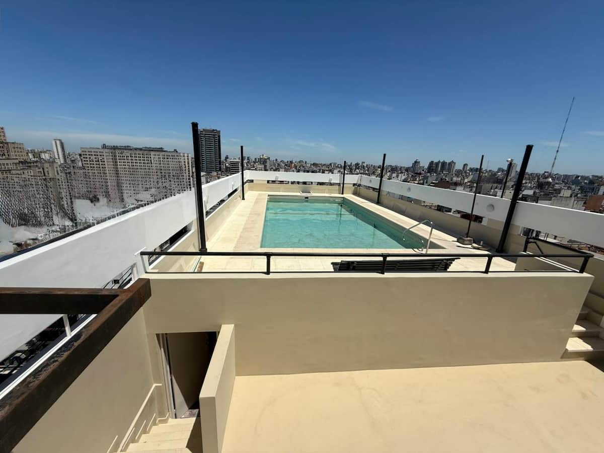 Studio apartment in Recoleta on Av. Santa Fe. Double-glazed windows and pool access on the 17th floor. Close to subway Line D (DyH) and multiple bus routes.