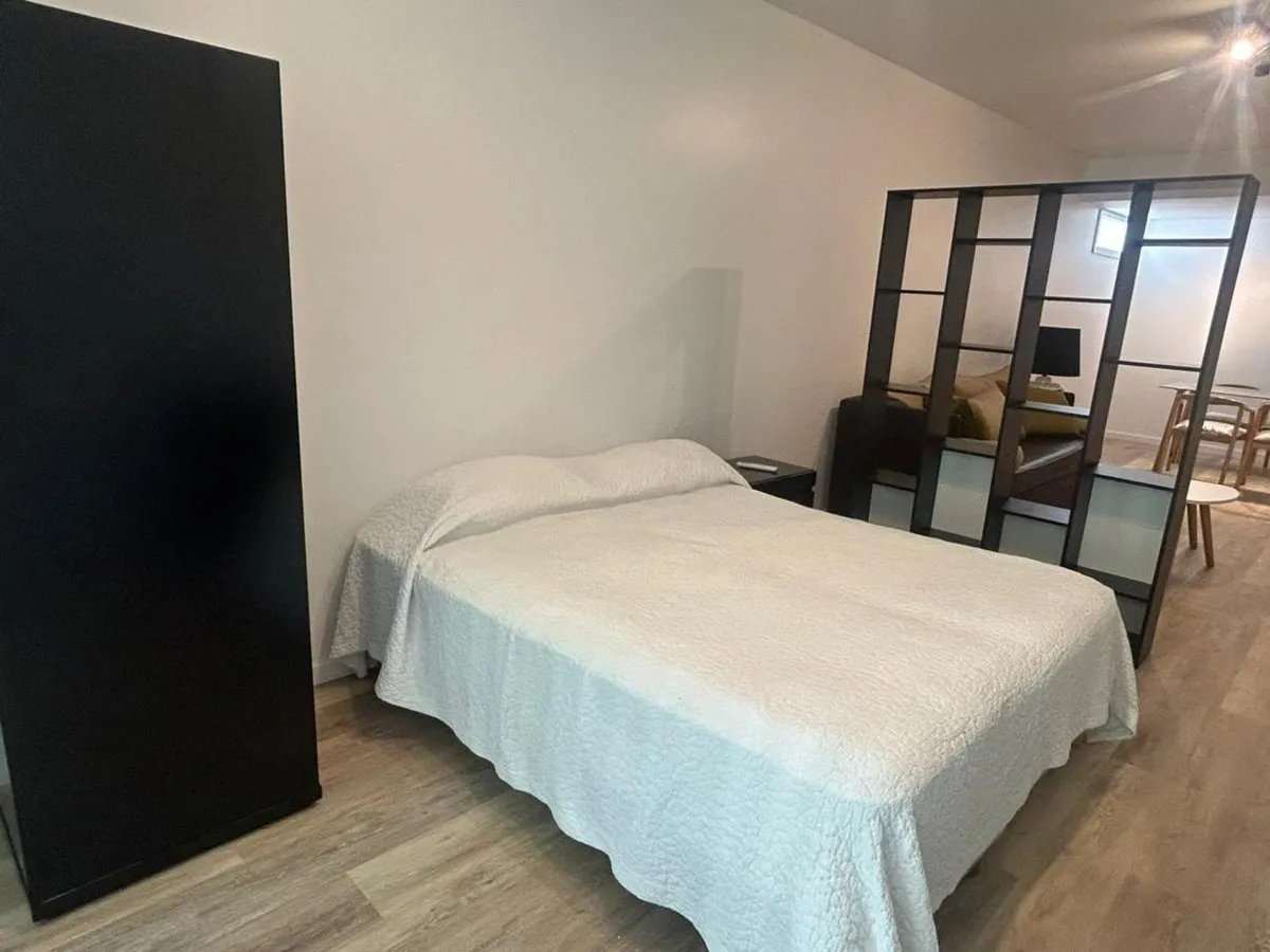Furnished studio apartment in Recoleta in a modern building. 43 m² total, on the 8th floor, street-facing with an east orientation and a balcony of approximately 3 m². The main space includes living and dining areas, separated by furniture, with the private sleeping area by the balcony and window (inverted layout). The building has a pool and a communal SUM with a grill. The apartment is delivered without internet or cable.