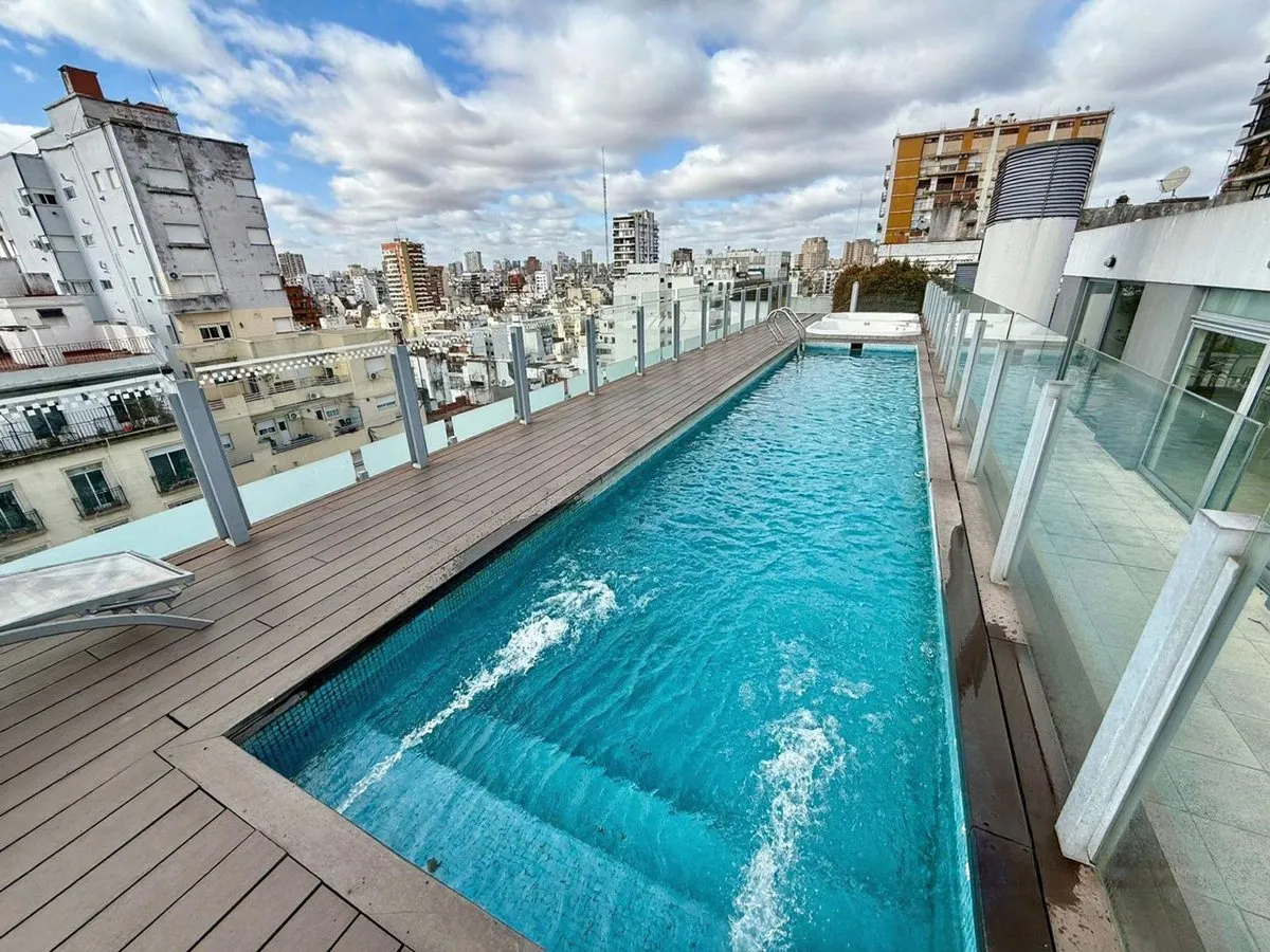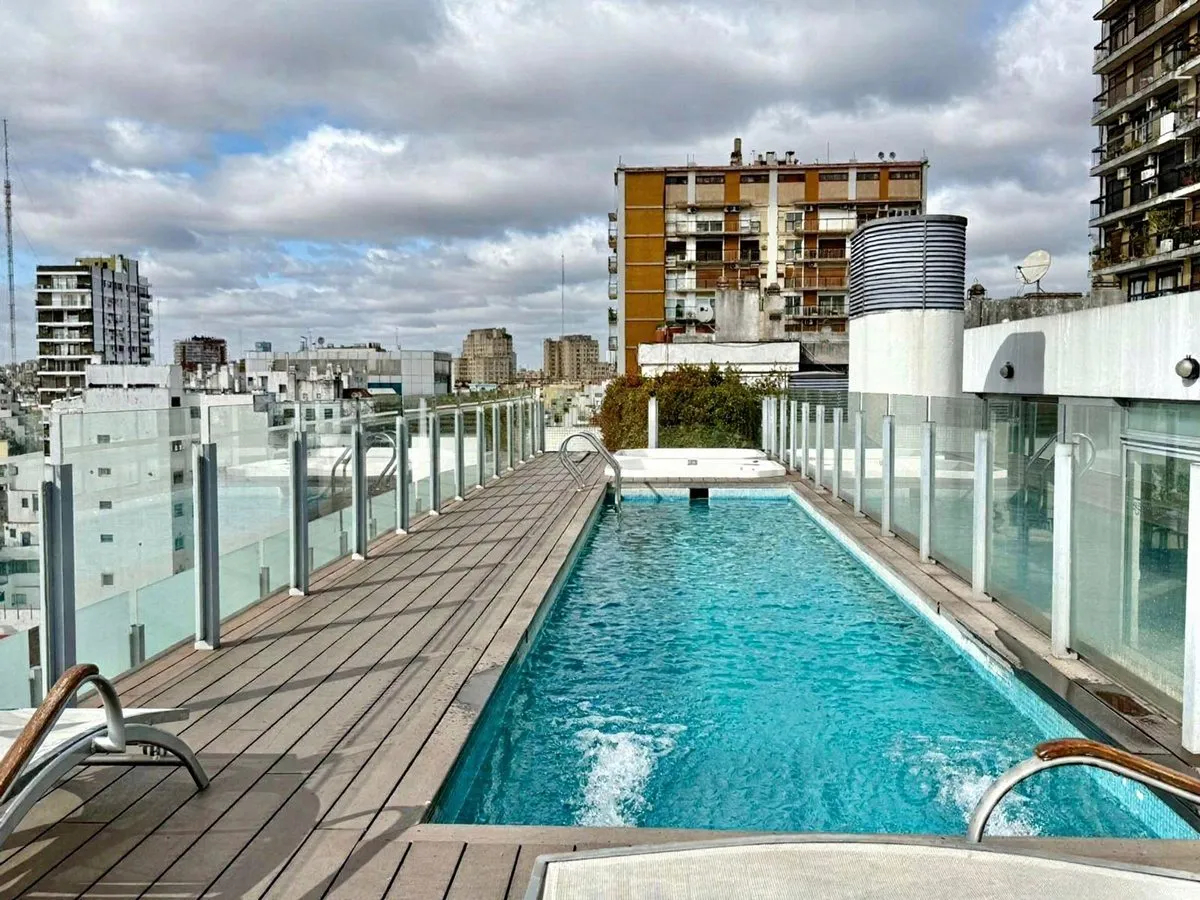 Studio apartment of 40 m² total area (35 m² covered, 6 m² uncovered) on the 8th floor of a 13-storey building. Construction dates to 2018 and the unit has 1 room with a full bathroom, suitable for professional use (apto profesional). Building amenities include outdoor pool, fully equipped gym, residents’ communal room (SUM), and a terrace with solarium, plus pool and jacuzzi. There is 24/7 on-site security with facial recognition and turnstile access; the property is located a short distance fro