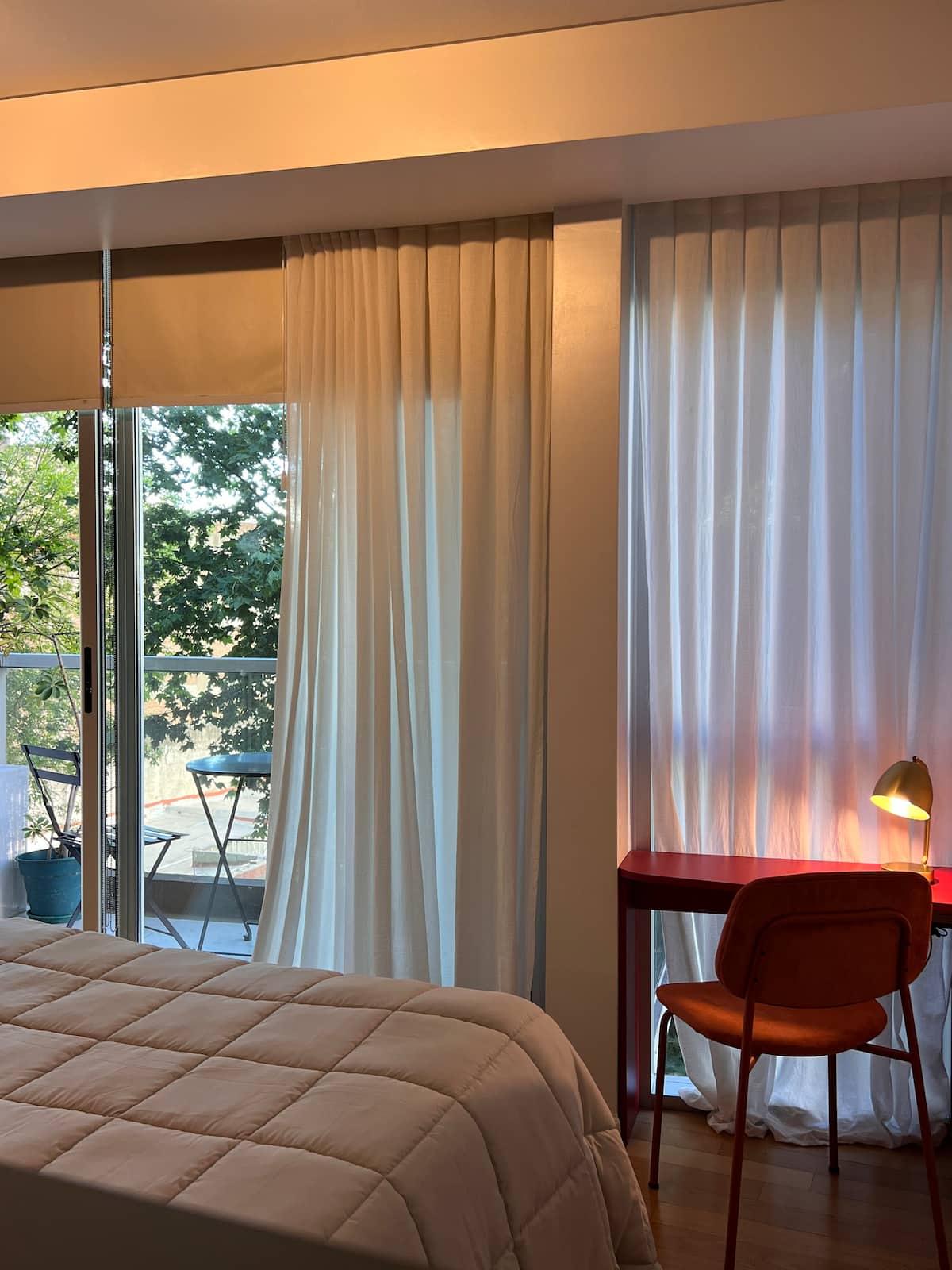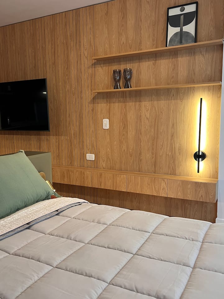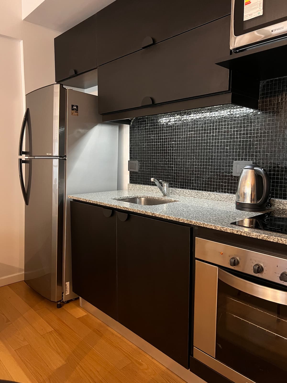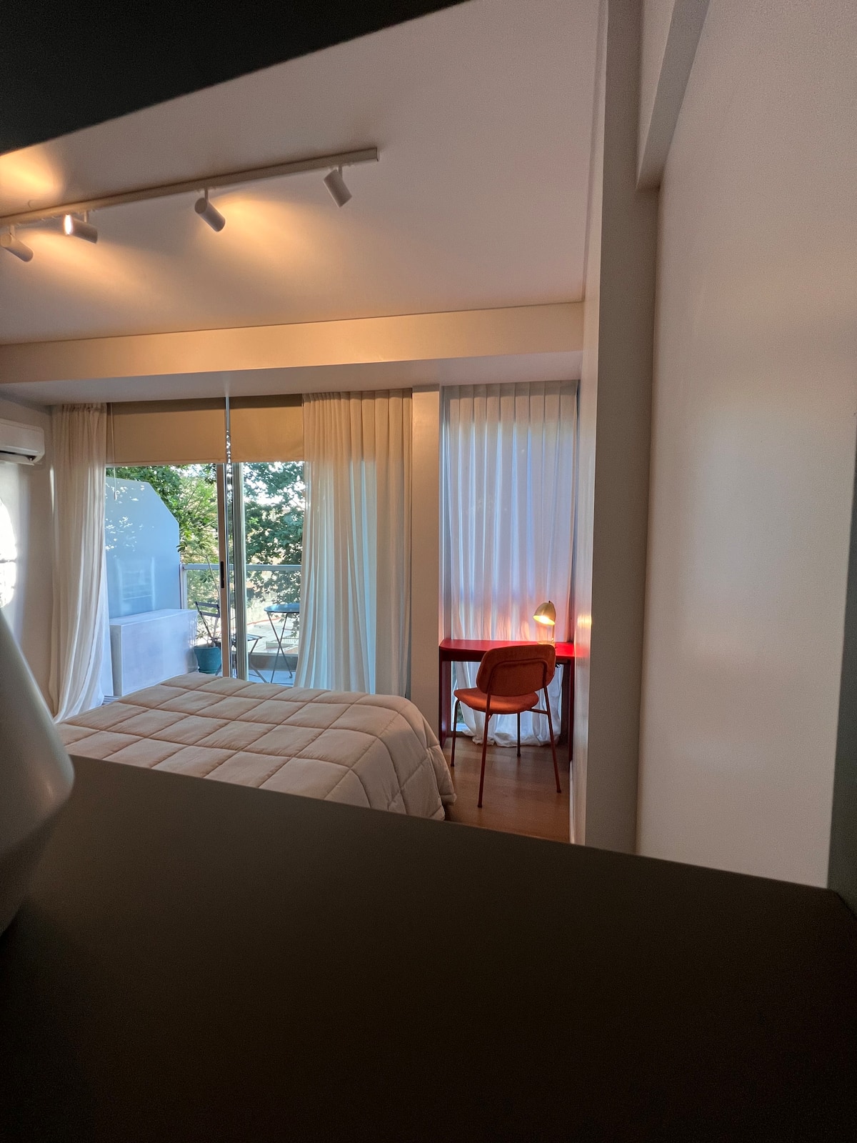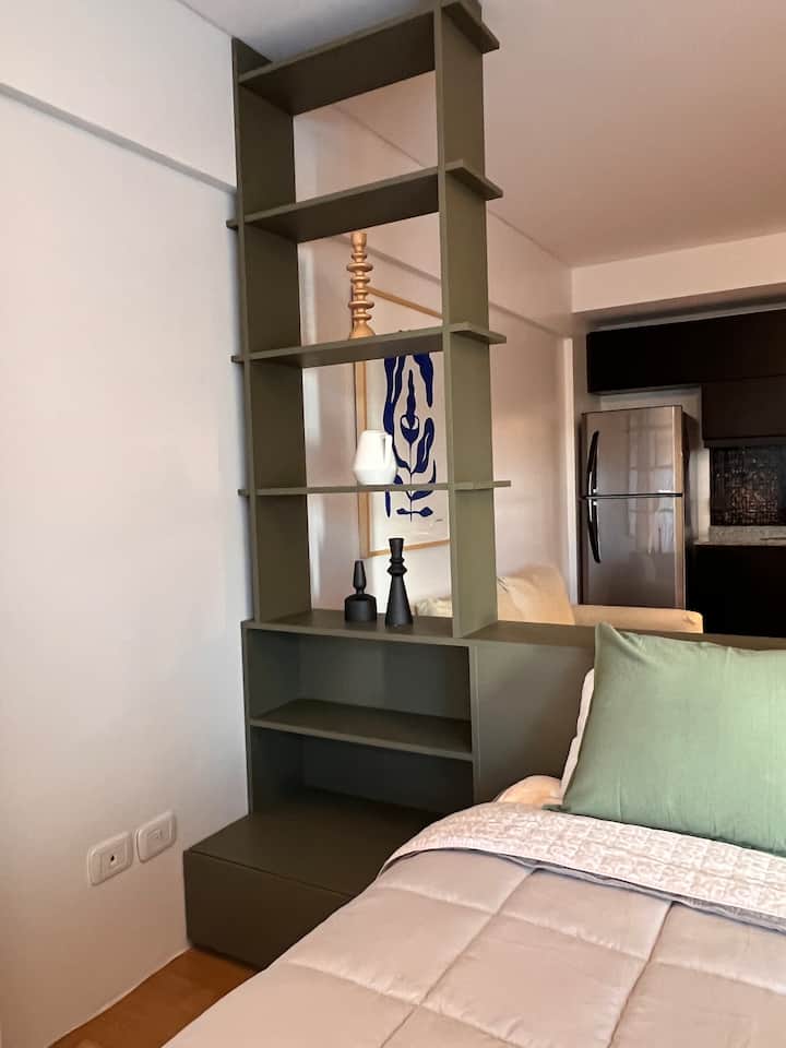 Studio apartment with a balcony and double-glazed windows. The building offers a pool. New unit.