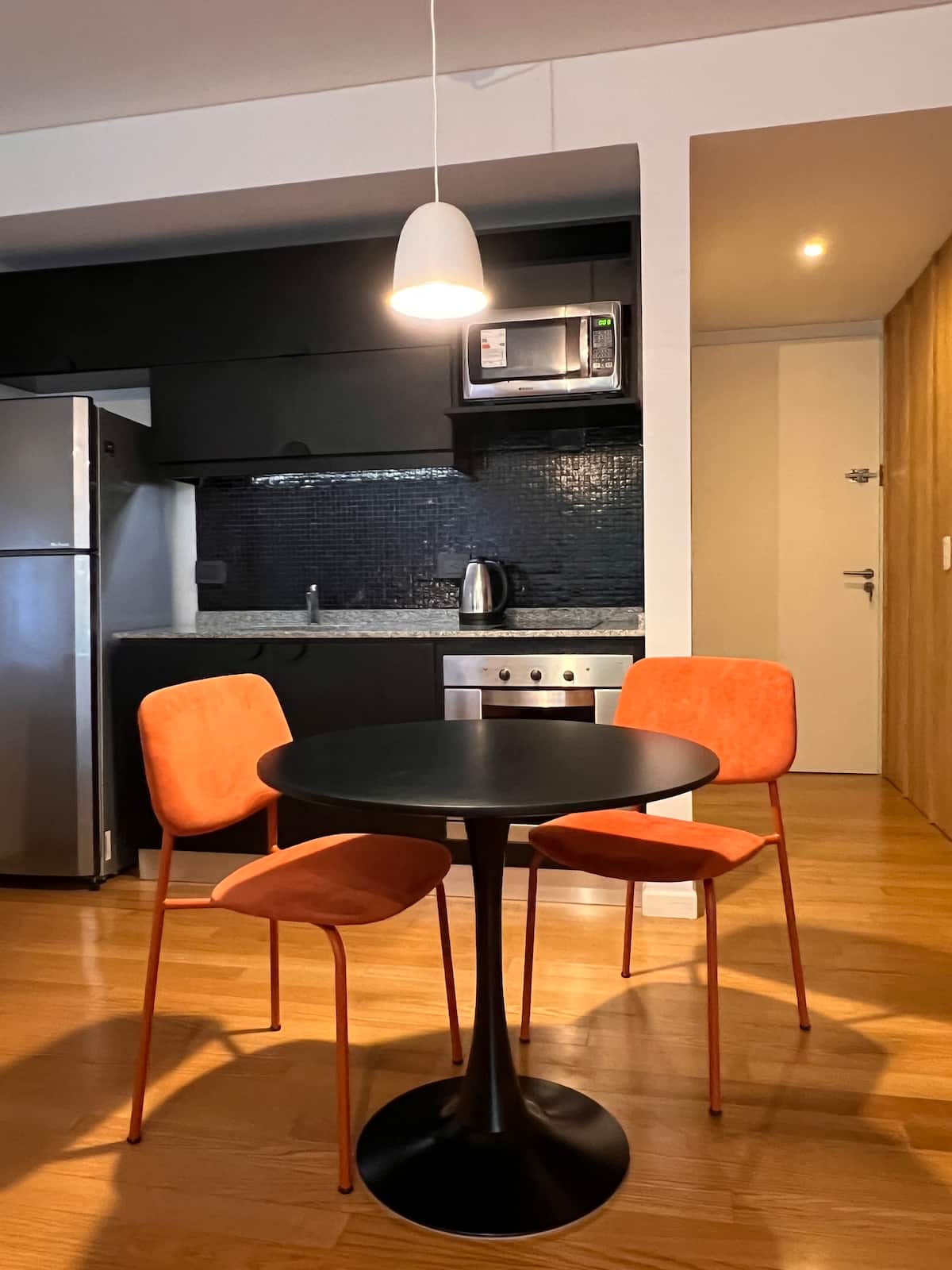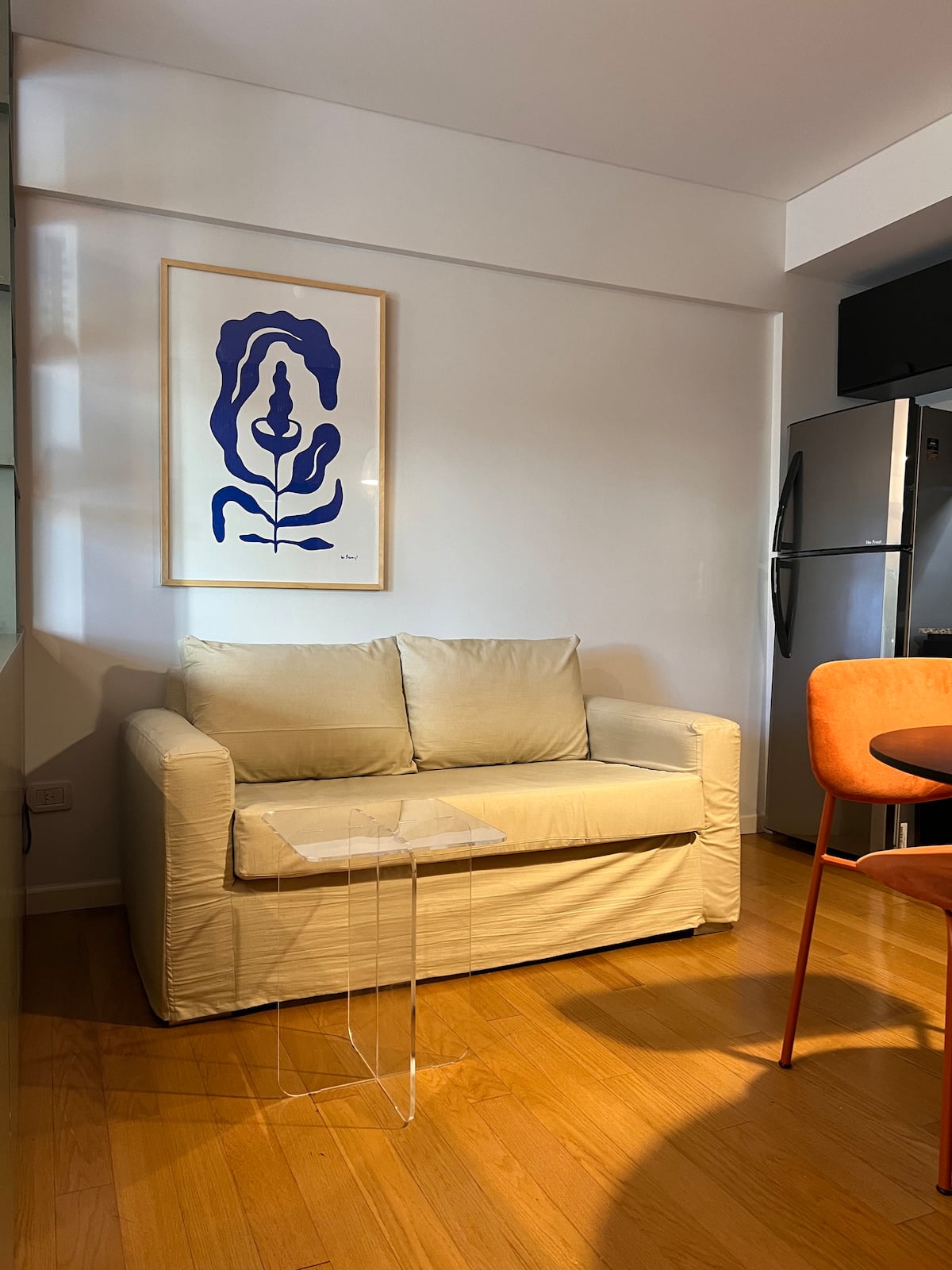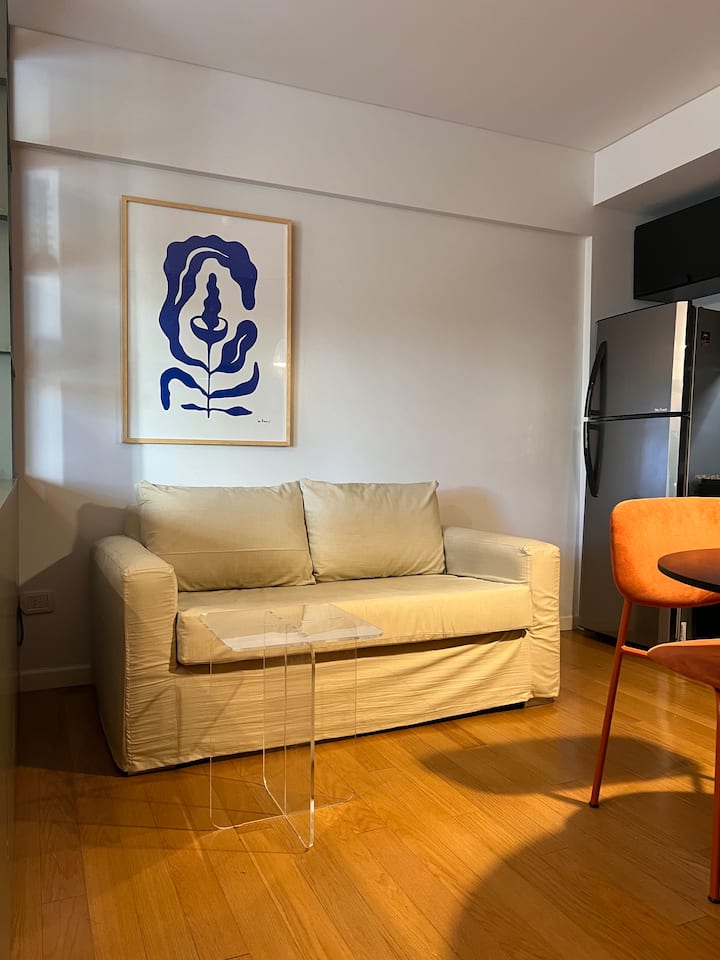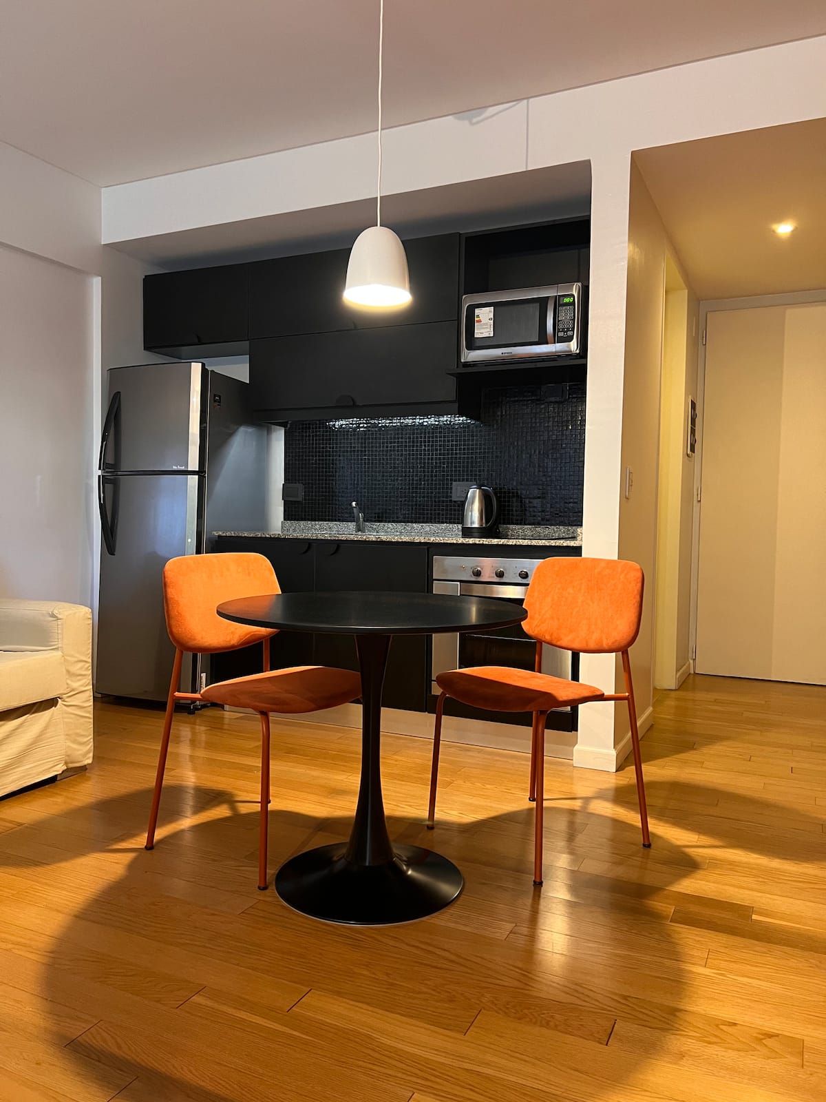 Studio apartment with a balcony and double-glazed windows. The building offers a pool. New unit.