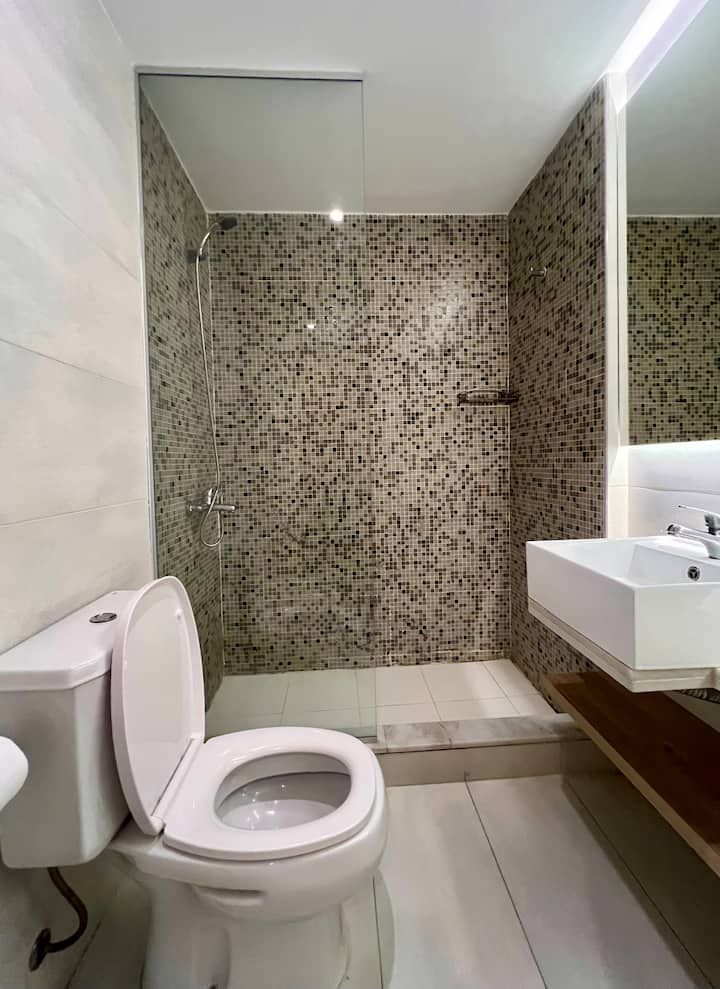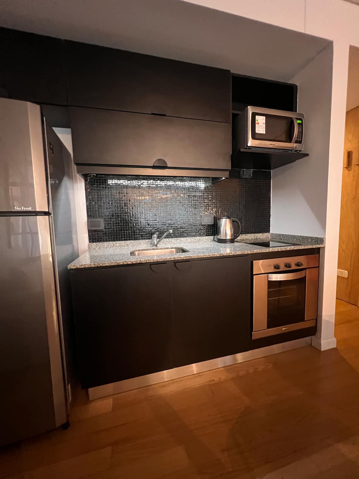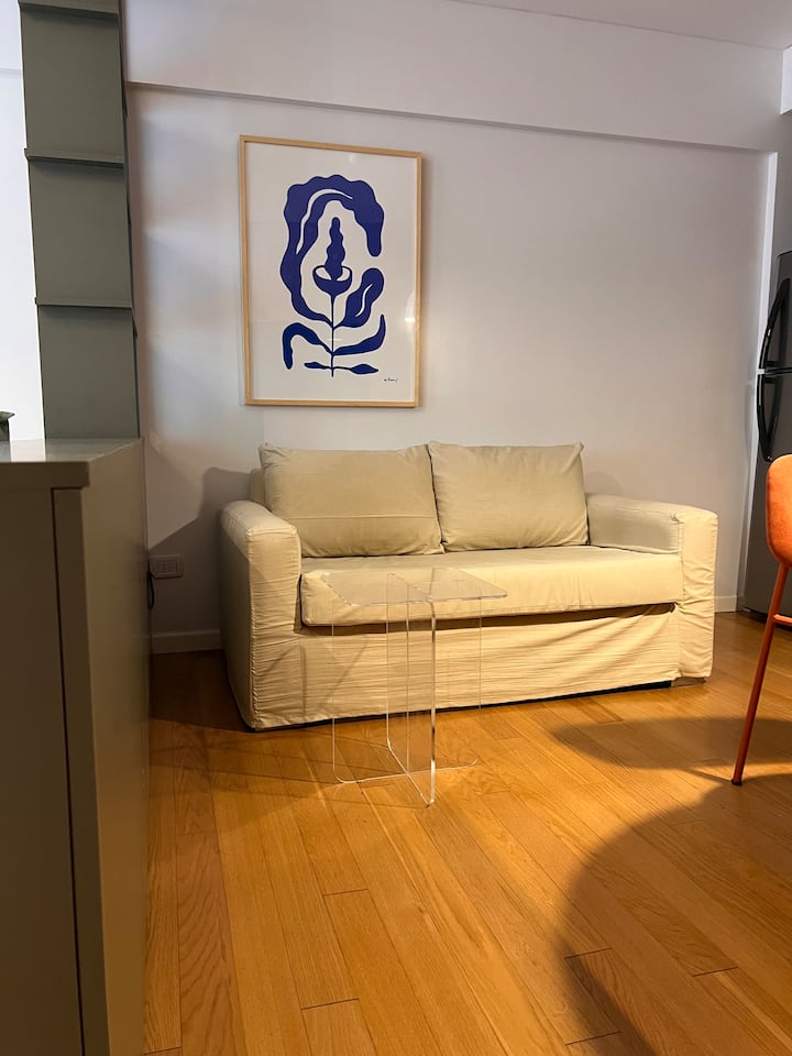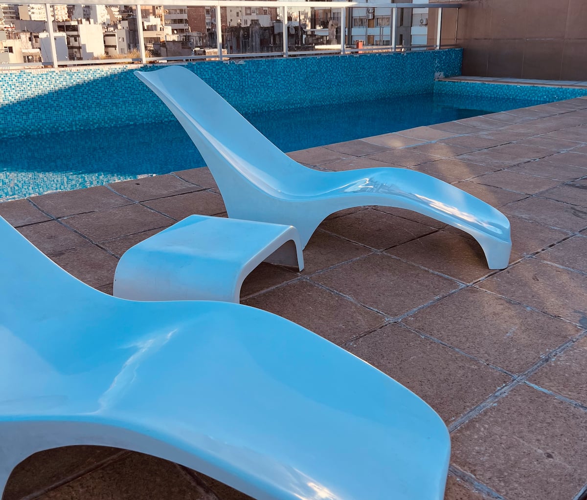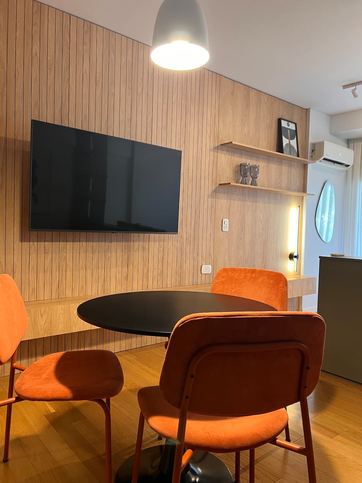 Studio apartment with a balcony and double-glazed windows. The building offers a pool. New unit.