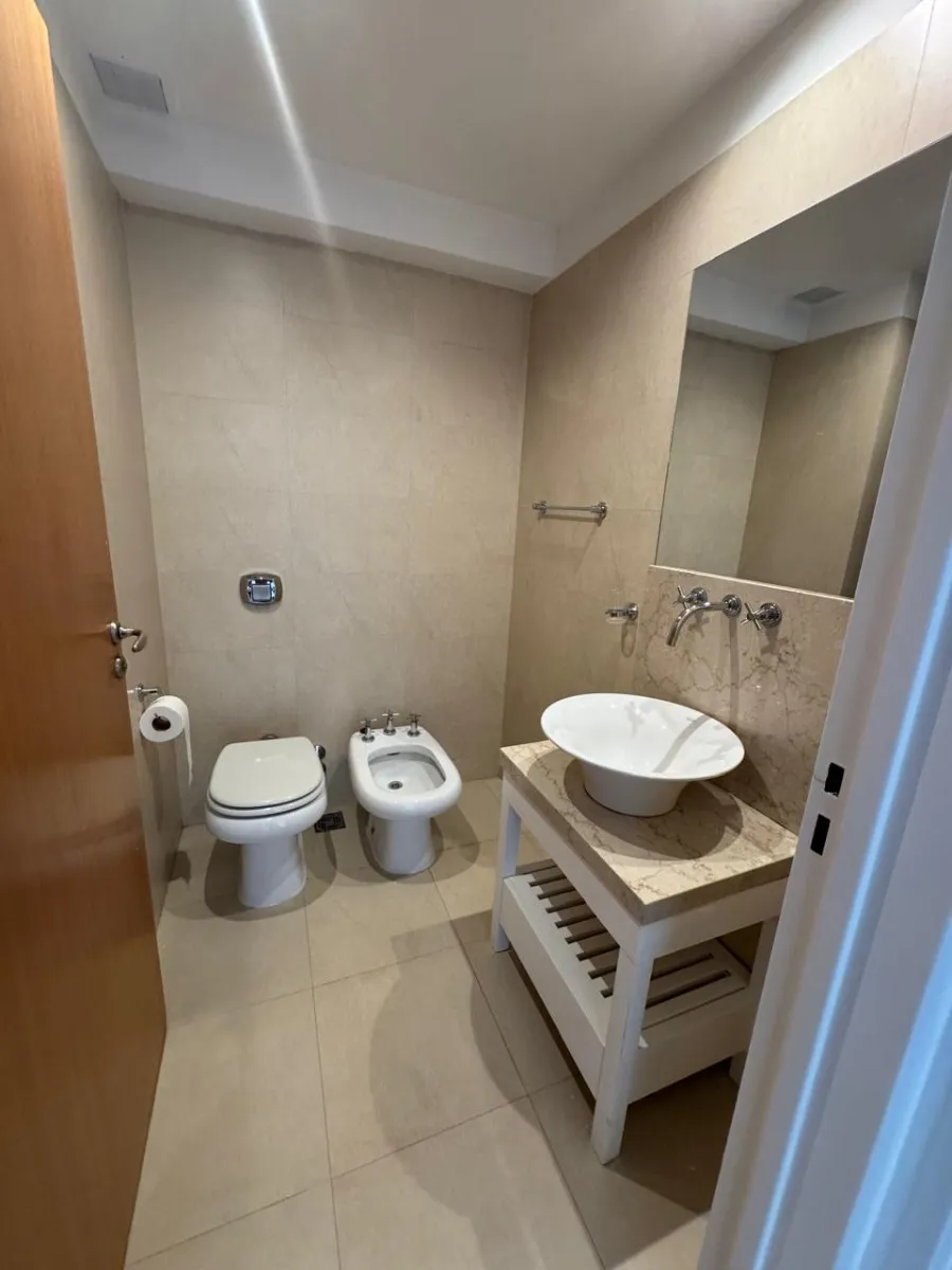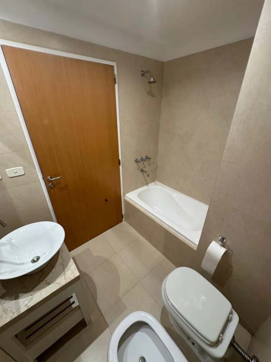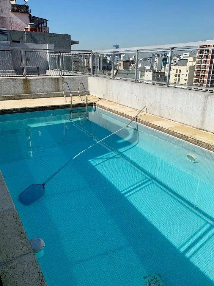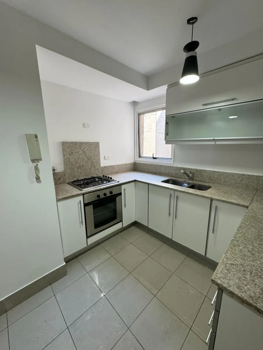 Three-room apartment in Recoleta with 2 bedrooms and 1 full bathroom. Includes a gas cooktop and Indesit electric oven, a continuous balcony, porcelain tile flooring, aluminium roller blinds for blackout, and air-conditioning units in all rooms. Central services include underfloor radiant heating and hot water. The building has 24-hour security and amenities including a pool, solarium, grill, and a residents’ SUM. Pets are not allowed, and an optional parking space may be available.