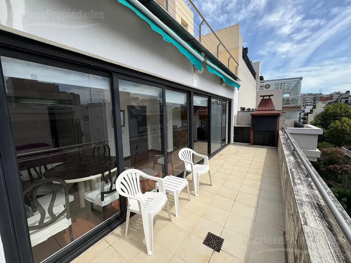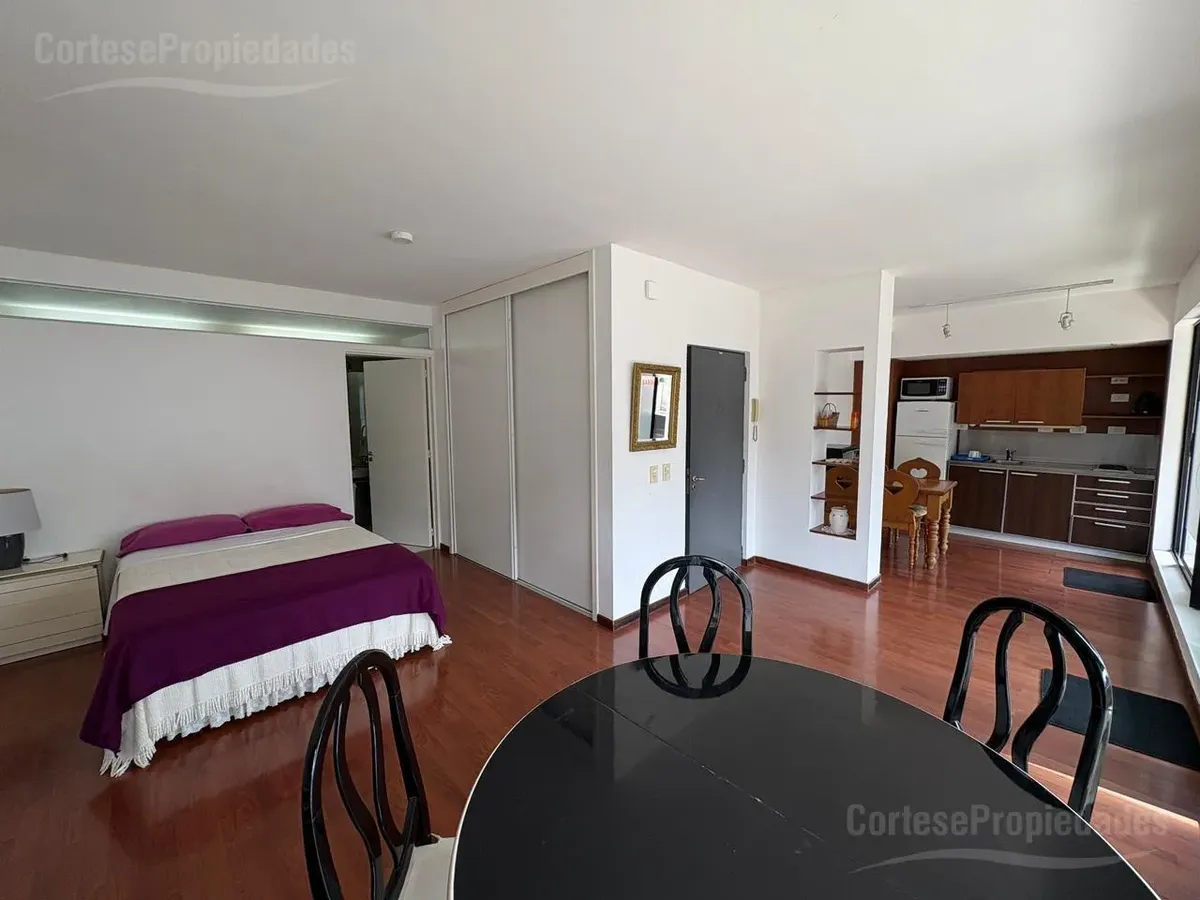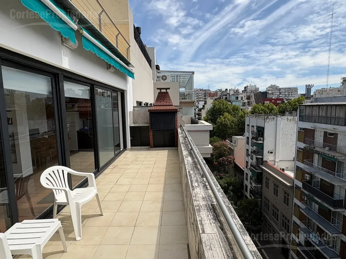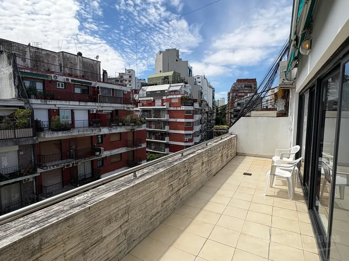 Furnished studio apartment for rent on a high floor in Recoleta. Includes a complete kitchen, living-dining area, bedroom with built-in wardrobe and a full bathroom with ventilation. The front terrace balcony has a private grill. All building and utility expenses are included in the rent, with weekly cleaning service; near Hospital Alemán, Hospital de Niños, and Subte Línea D and H.