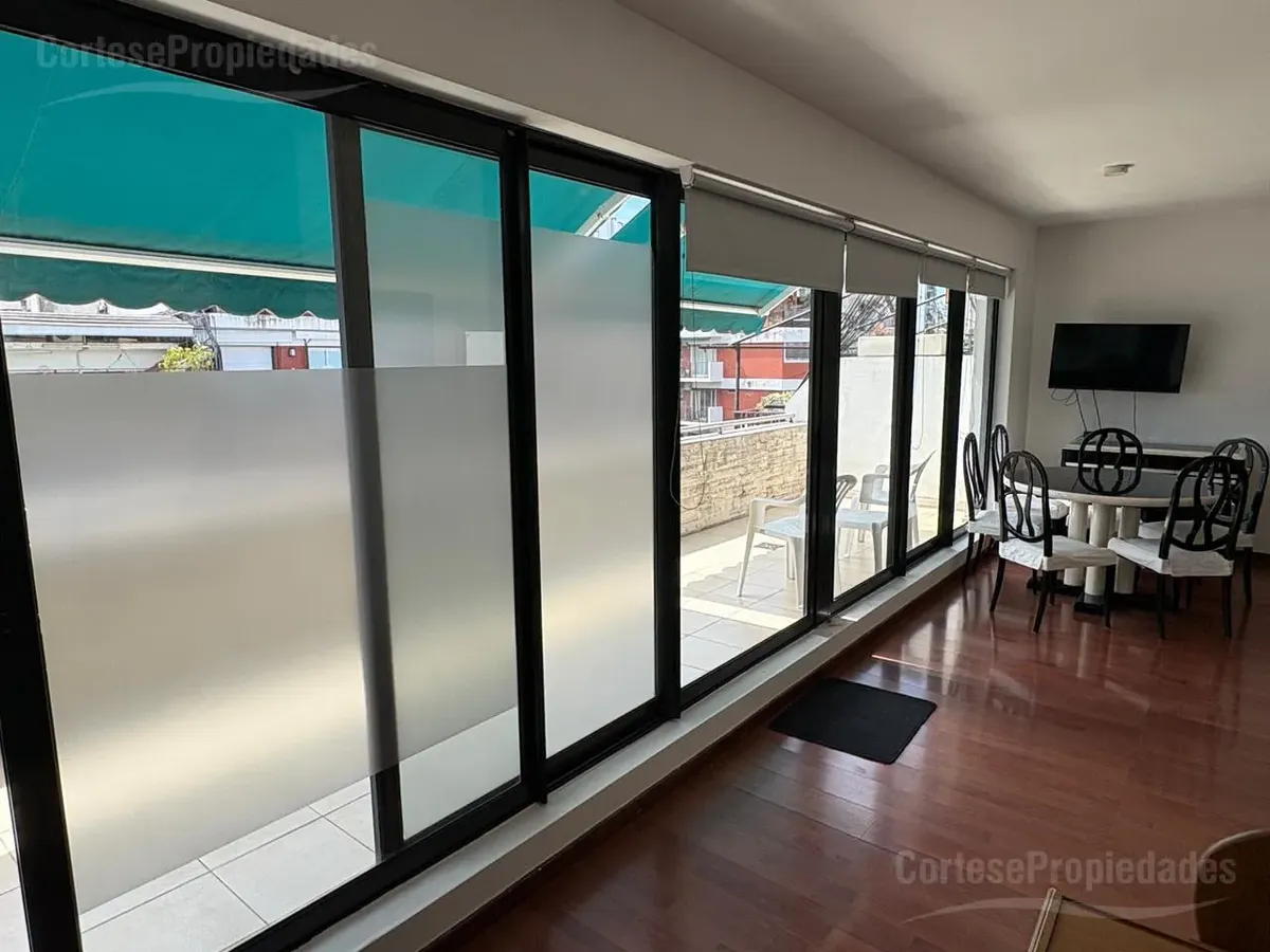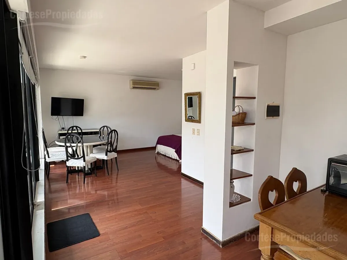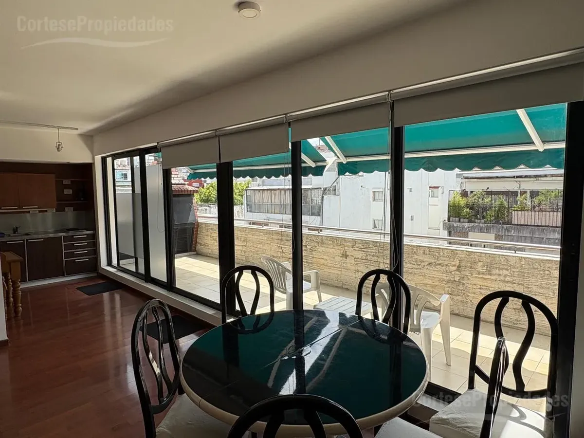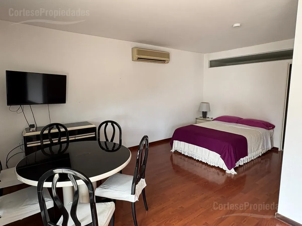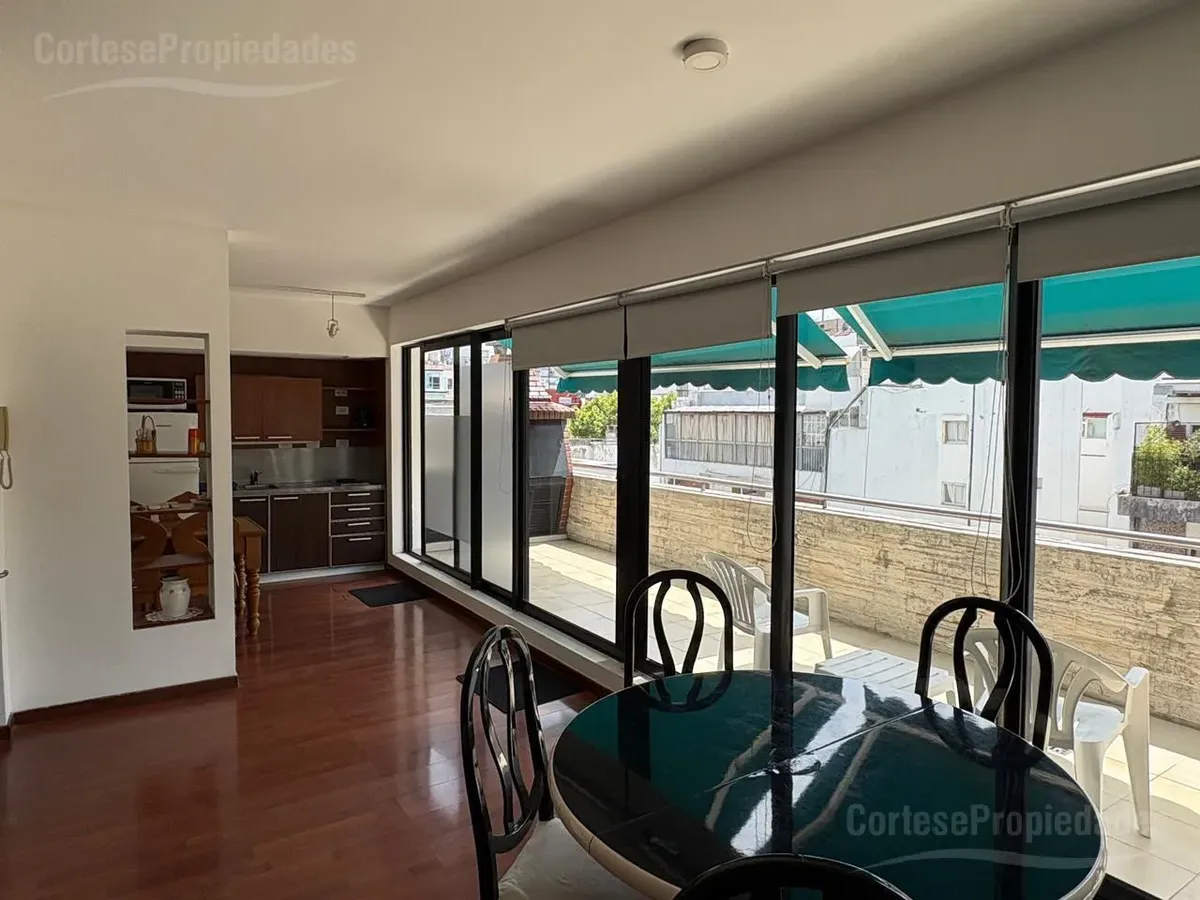 Furnished studio apartment for rent on a high floor in Recoleta. Includes a complete kitchen, living-dining area, bedroom with built-in wardrobe and a full bathroom with ventilation. The front terrace balcony has a private grill. All building and utility expenses are included in the rent, with weekly cleaning service; near Hospital Alemán, Hospital de Niños, and Subte Línea D and H.