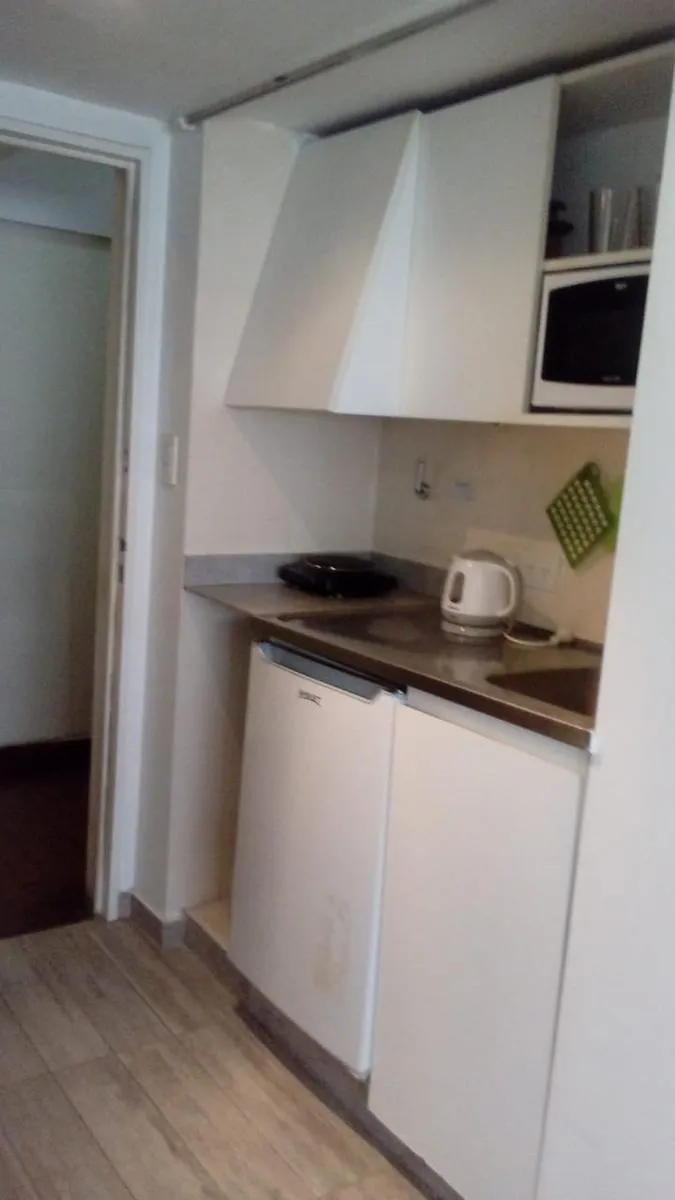 Furnished studio apartment in the Recoleta and Retiro area, available from 8 April 2026. Full bathroom with bathtub, hot water and central heating. Kitchenette includes an electric oven and microwave. Building has a basement laundry room with washing and drying machines, a rooftop solarium with open views and seating, and 24-hour security. Building fees, ABL, utilities and final cleaning are paid by the tenant; parking is available nearby for rent and is not included. The building is accessible