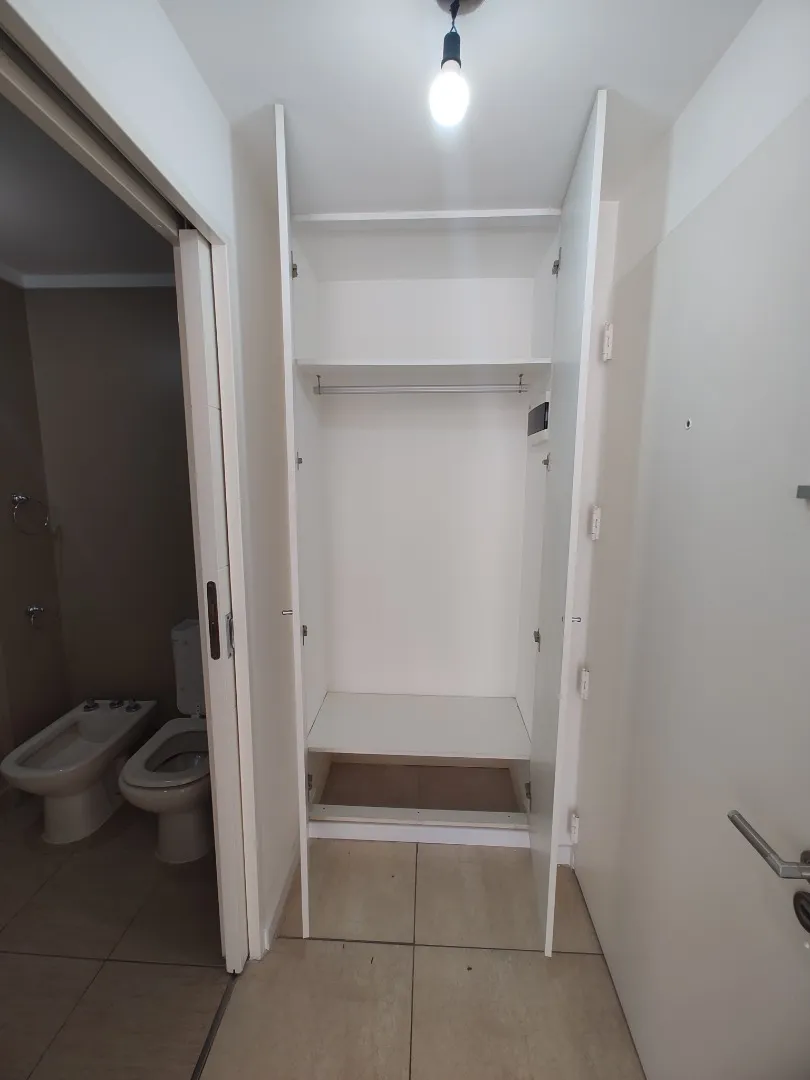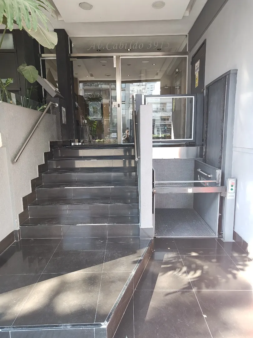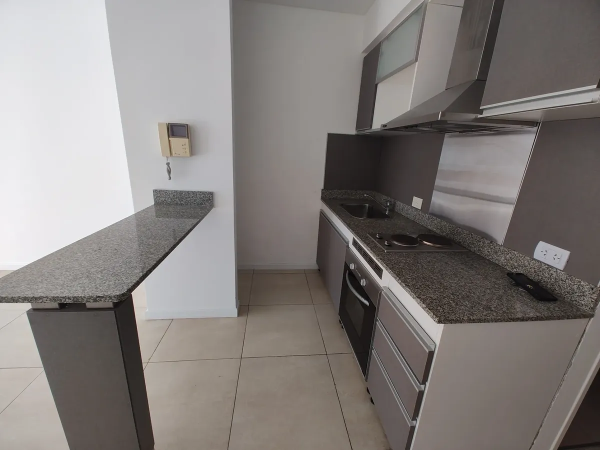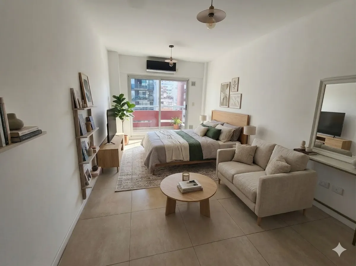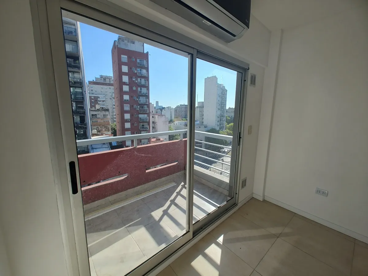 Street-facing studio apartment on a high floor in Saavedra. Includes an integrated kitchen with a breakfast bar, a full bathroom with a bathtub, a wardrobe, and air conditioning (hot and cold). Building fees include ordinary expensas plus ABL, electricity, and gas; AYSA and the fire and civil liability insurance for the unit are paid by the tenant. Rental terms specify a 2-year contract with a four-month adjustment by IPC, a rental guarantee from Capital Federal, 1 month paid in advance and 2 mo