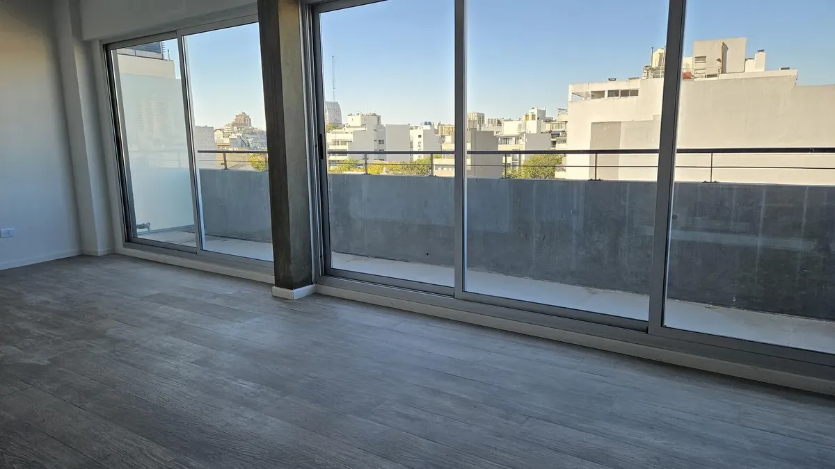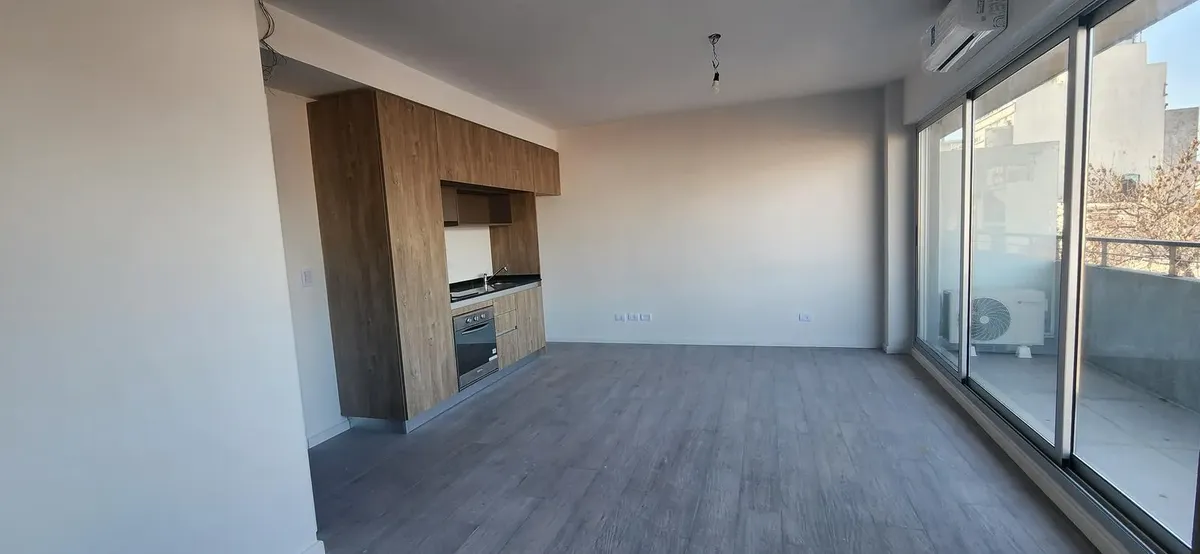 Brand new studio apartment in Saavedra, with the option to be divided into 2 rooms. The kitchen includes a marble countertop, cooktop with vitroceramic and an electric oven, plus overhead cabinets and base units. A full bathroom with mirror, split hot-and-cold inverter air conditioning in all rooms, and a long layout with a large window overlooking the balcony. The building offers a grill area, laundry, hot tub, and solarium. Located a few blocks from Parque Saavedra and opposite the neighbourho