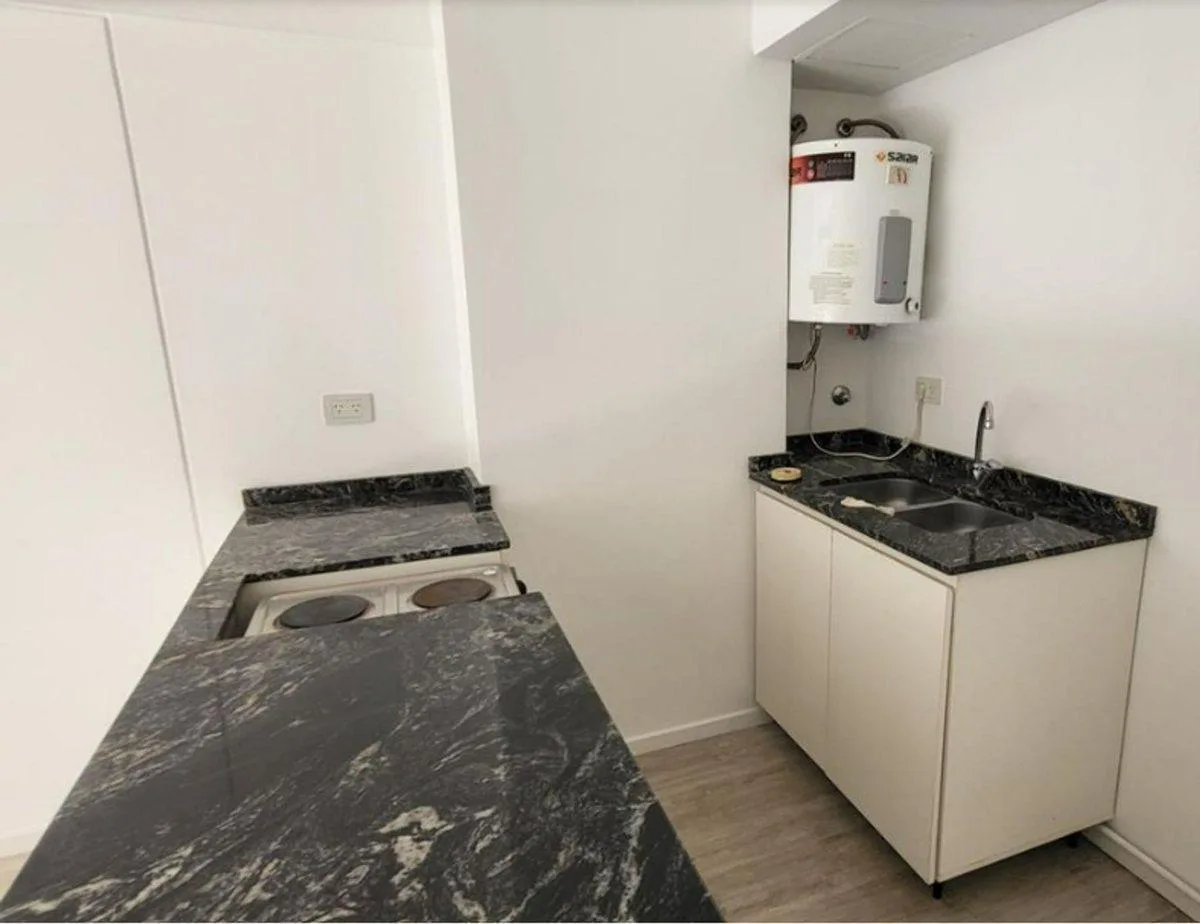 Studio apartment for rent with 25.47 m² covered and 4.66 m² semi-covered, for a total of 30 m², street-facing on Arias, Saavedra. It is arranged as an integrated living/sleeping area with a kitchen section and direct access to a balcony. Full bathroom with exterior ventilation and heating and hot water via an individual hot-water tank, plus split system air conditioning and radiant floor heating. The building has a lift, equipped gym, communal room and landscaped green areas. Building fees, util